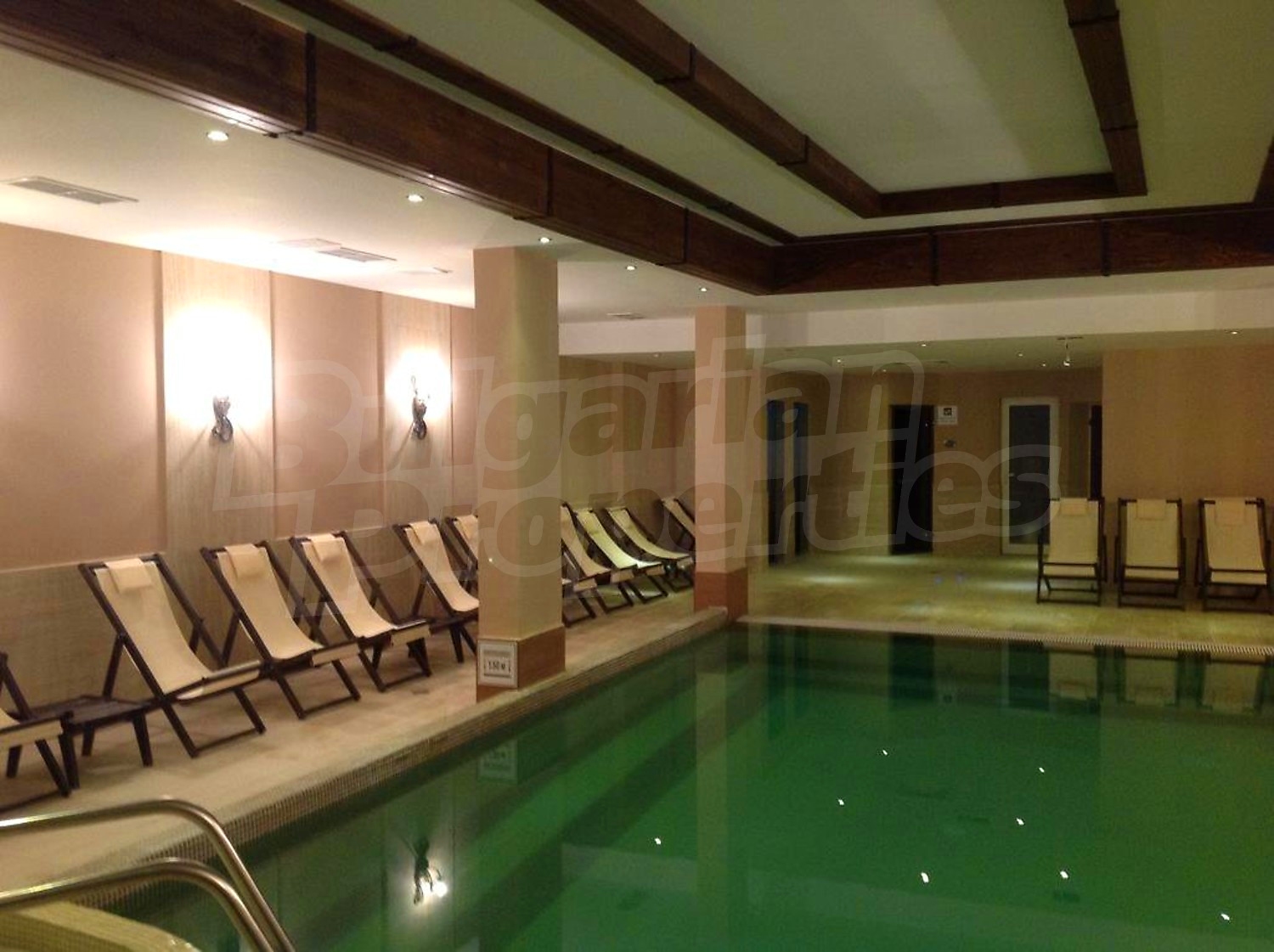 Трехкомнатная квартира площадью 100.77 кв.м. Предлагаемая недвижимость построена в 2008. Камин, отопление на электрических радиаторах и отопление на электроконвекторах. Ковровый настил, ламинированный пол, межкомнатные двери, окна пвх, стены покрашенные латексной краской и терракотовый пол имеются в предлагаемой недвижимости. Недвижимость включает следующую меблировку и оборудование: бойлер электрический, ванна, встроенная кухня, вытяжка, душевая, меблировку, оборудованная ванная комната, телевизор и холодильник. Из основных коммуникаций обеспечены электричество, вода и центральная канализация. Гараж, обозначенная стоянка, парковка вне дороги, стоянка, терраса, бассейн, джакузи, комплекс закрытого типа, лифт, общие части с отделкой люкс, сауна, тренажерный зал, заасфальтированная дорога, интернет и кабельное телевидение имеются в наличии среди прочих обозначенных характеристик предлагаемого объекта, что обеспечит дополнительные удобства для пользования. Виды на город и виды на горы открываются с недвижимости, раскрывая часть красот живописной Болгарии.
