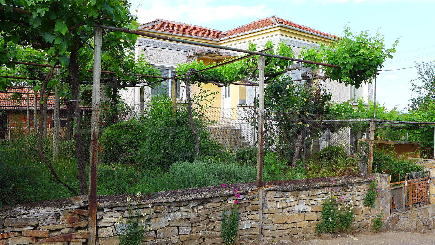 Предлагаем вашему вниманию этот дом общей площадью 125 кв. подвал - 16 кв. и большой сад общей площадью 3463 кв. Есть также две большие хозяйственные постройки. Жилая площадь на первом этаже распределена между входом, коридором, 2 комнатами, туалетом, ванной комнатой и кладовая. На верхнем этаже Вы можете найти коридор и 3 спальни. Массивные стены из камня и кирпича, деревянные полы и деревянные оконные рамы имеются в собственности. Недвижимость подключена к электричеству и коммунальному водоснабжению. Около 200 метров проходит небольшая река, которая является приятным местом для прогулок и рыбалки!