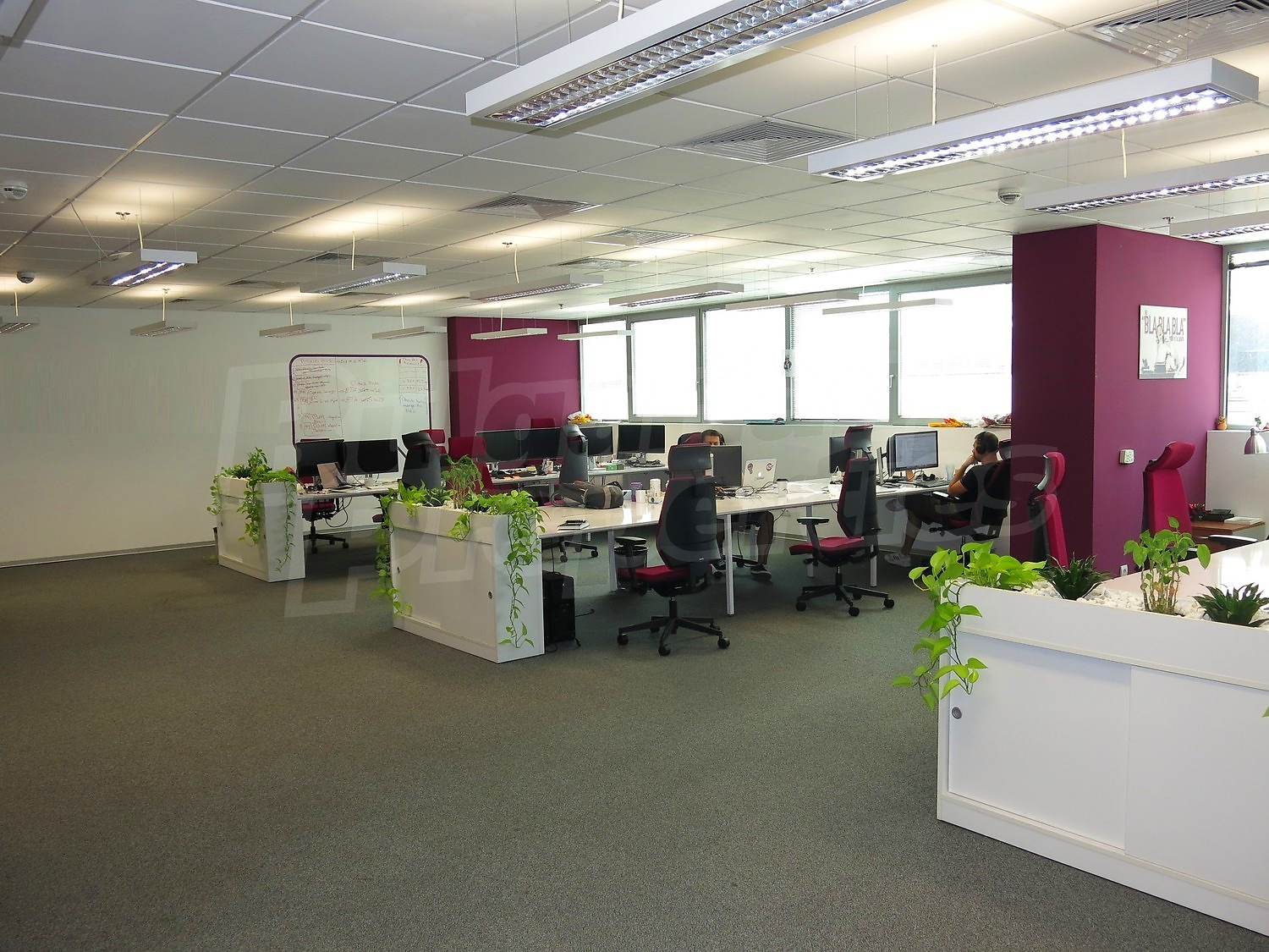 Офис площадью 174 м2. Предлагаемая недвижимость построена в 2006. Отопление кондиционером. Обеспечено кондиционирование следующего типа: центральная система кондиционеров. Ковровый настил, окна пвх и стены покрашенные латексной краской имеются в предлагаемой недвижимости. Из основных коммуникаций обеспечены электричество, вода и центральная канализация. Лифт, общие части с отделкой люкс, заасфальтированная дорога, интернет и телефон имеются в наличии среди прочих обозначенных характеристик предлагаемого объекта, что обеспечит дополнительный комфорт для пользования. Виды на город открываются с недвижимости, раскрывая часть красот живописной Болгарии.