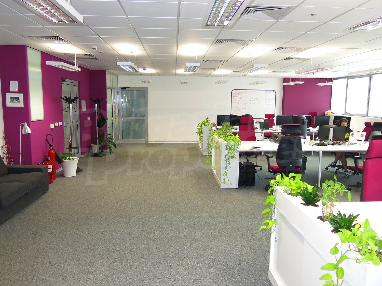 Офис площадью 174 м2. Предлагаемая недвижимость построена в 2006. Отопление кондиционером. Обеспечено кондиционирование следующего типа: центральная система кондиционеров. Ковровый настил, окна пвх и стены покрашенные латексной краской имеются в предлагаемой недвижимости. Из основных коммуникаций обеспечены электричество, вода и центральная канализация. Лифт, общие части с отделкой люкс, заасфальтированная дорога, интернет и телефон имеются в наличии среди прочих обозначенных характеристик предлагаемого объекта, что обеспечит дополнительный комфорт для пользования. Виды на город открываются с недвижимости, раскрывая часть красот живописной Болгарии.