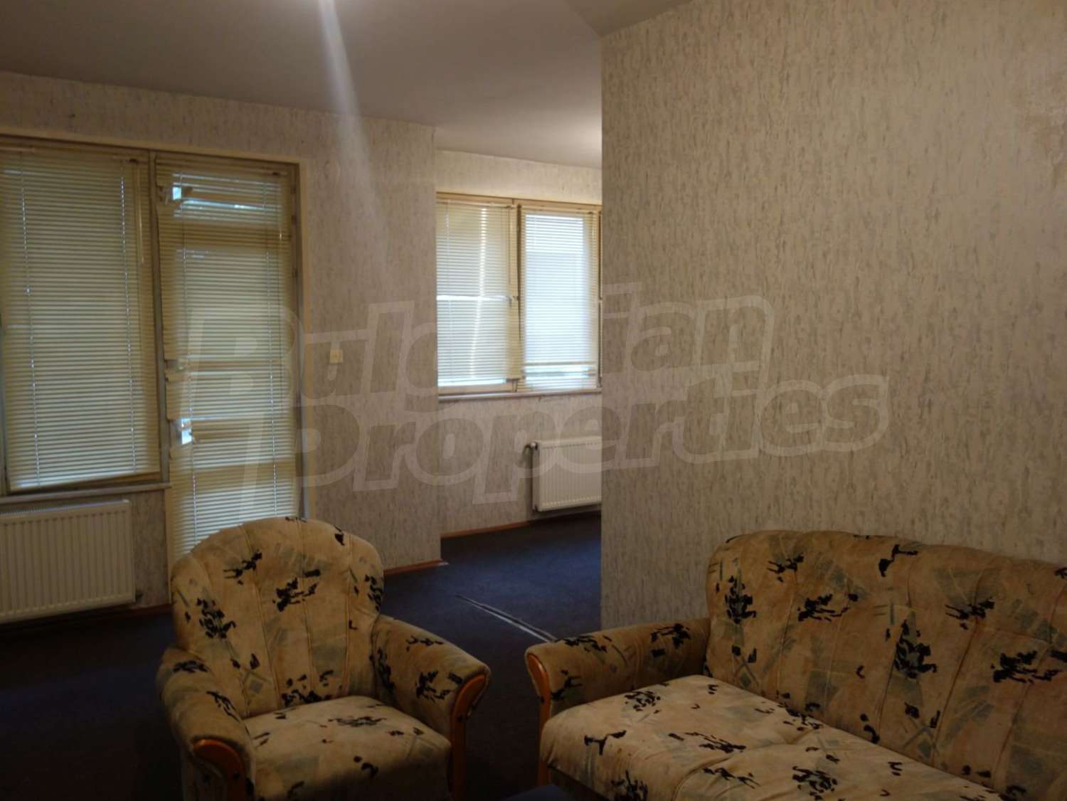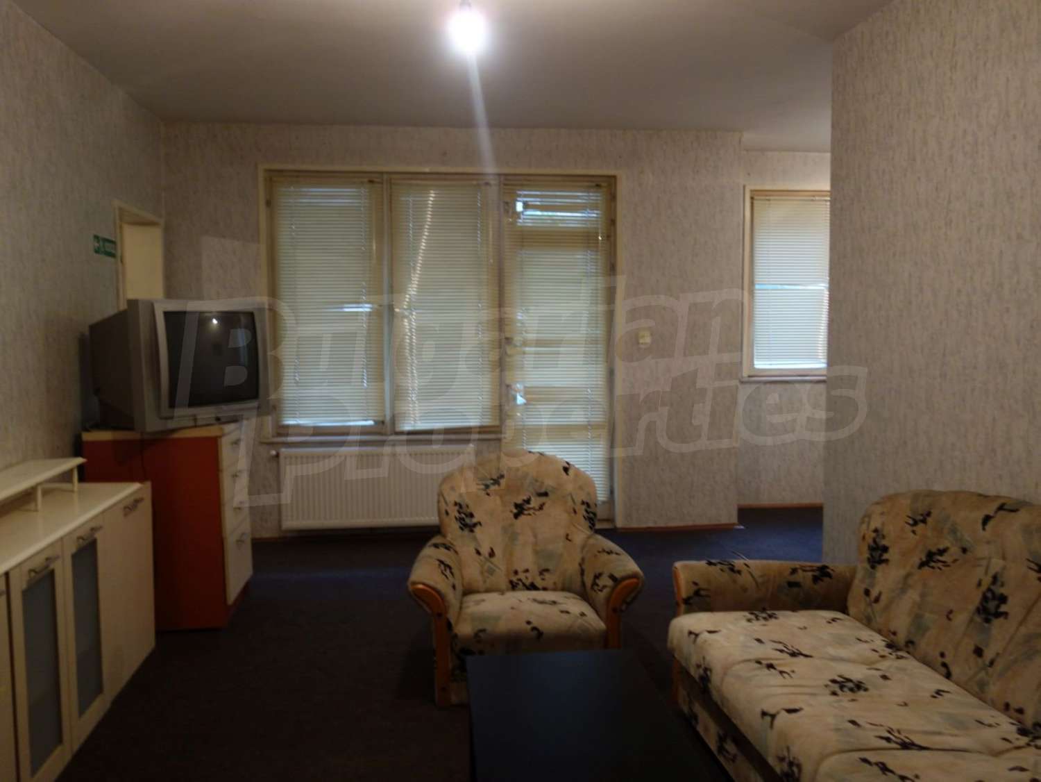 Трехкомнатная квартира площадью 98.14 кв. метров. Предлагаемая недвижимость построена в 1995. Отопление на электрических радиаторах и центральное отопление. Деревянные оконные рамы, ковровый настил, линолеумный пол, межкомнатные двери и обои на стенах имеются в предлагаемой недвижимости. Недвижимость включает следующую меблировку и оборудование: бойлер электрический, духовка, меблировку, оборудованная ванная комната, стиральная машина, телевизор и холодильник. Из основных коммуникаций обеспечены электричество, вода и центральная канализация. Балконы, парковка вне дороги, подвал, стоянка, чердачное помещение, заасфальтированная дорога, интернет и кабельное телевидение имеются в наличии среди прочих отличительных характеристик предлагаемого объекта, что обеспечит дополнительные удобства для пользования. Виды на населенный пункт открываются с недвижимости, раскрывая часть красот живописной Болгарии.