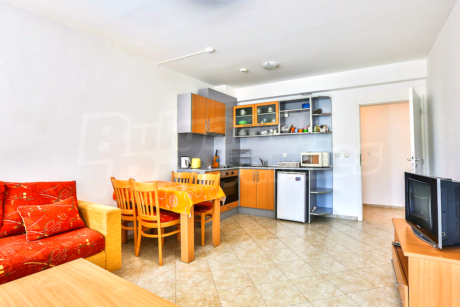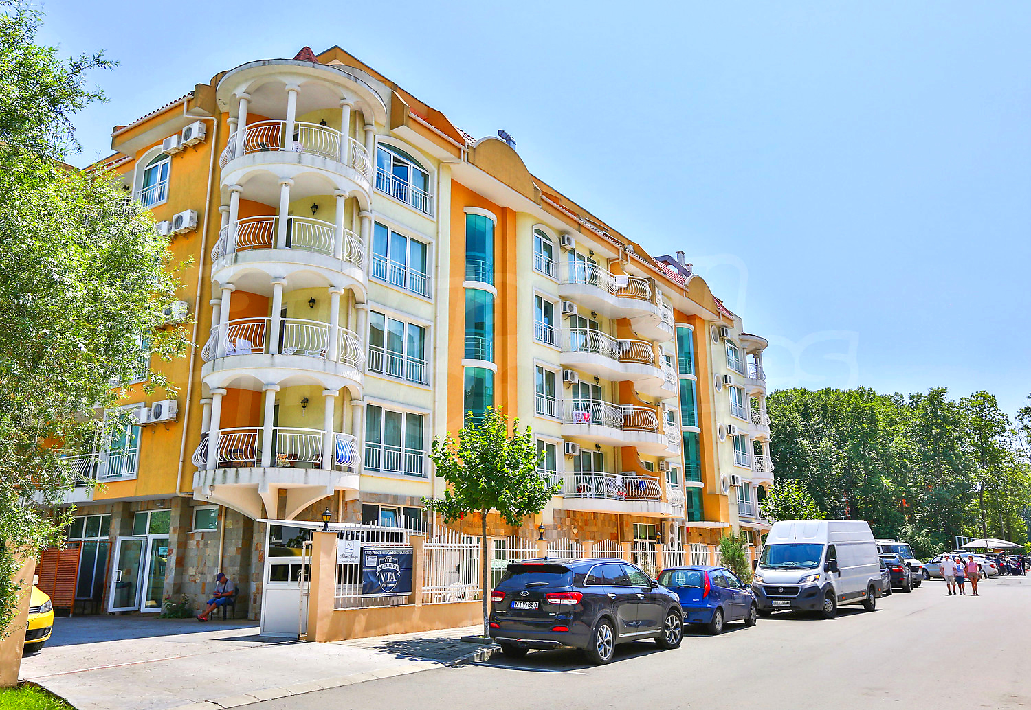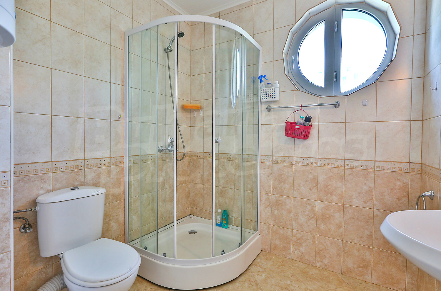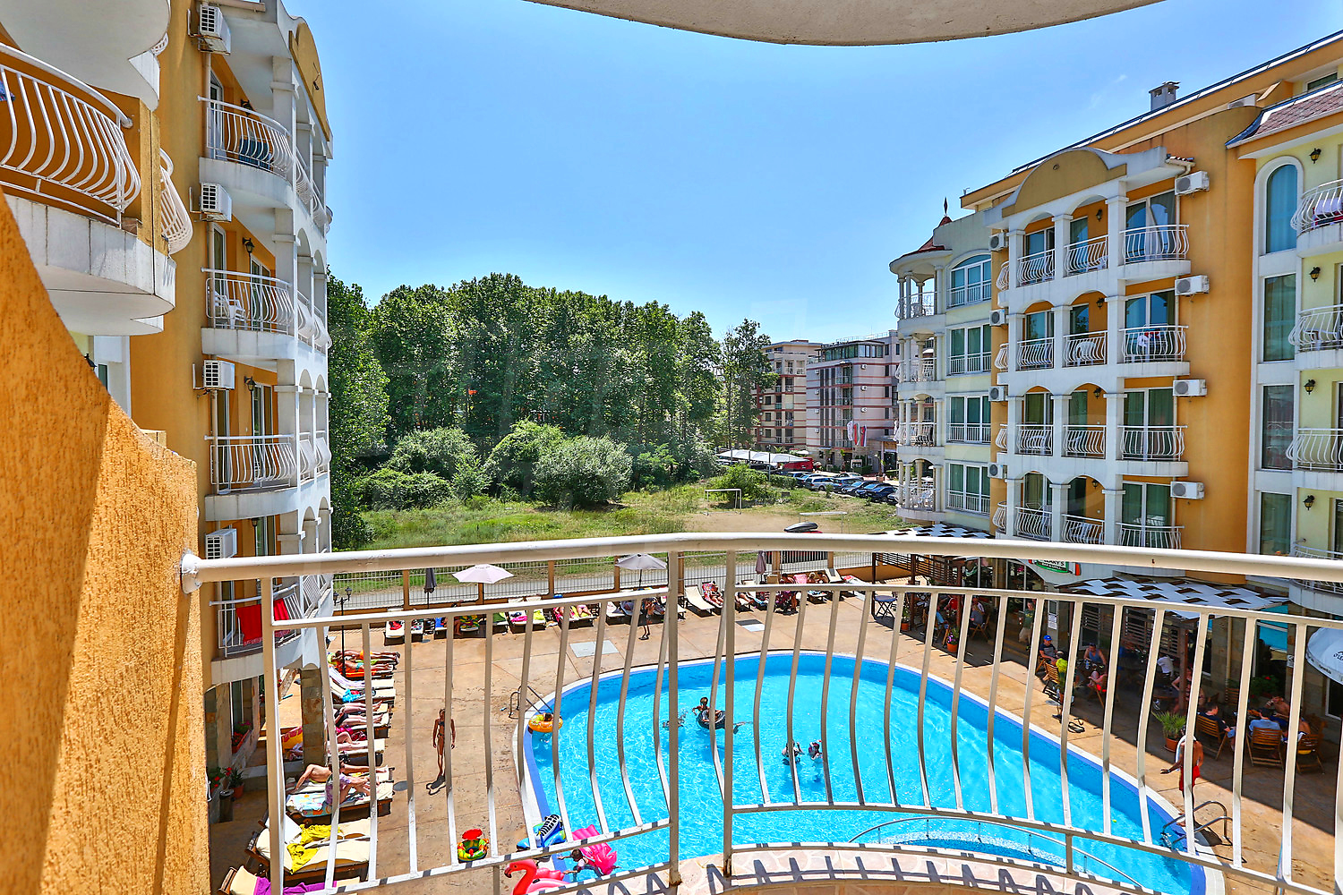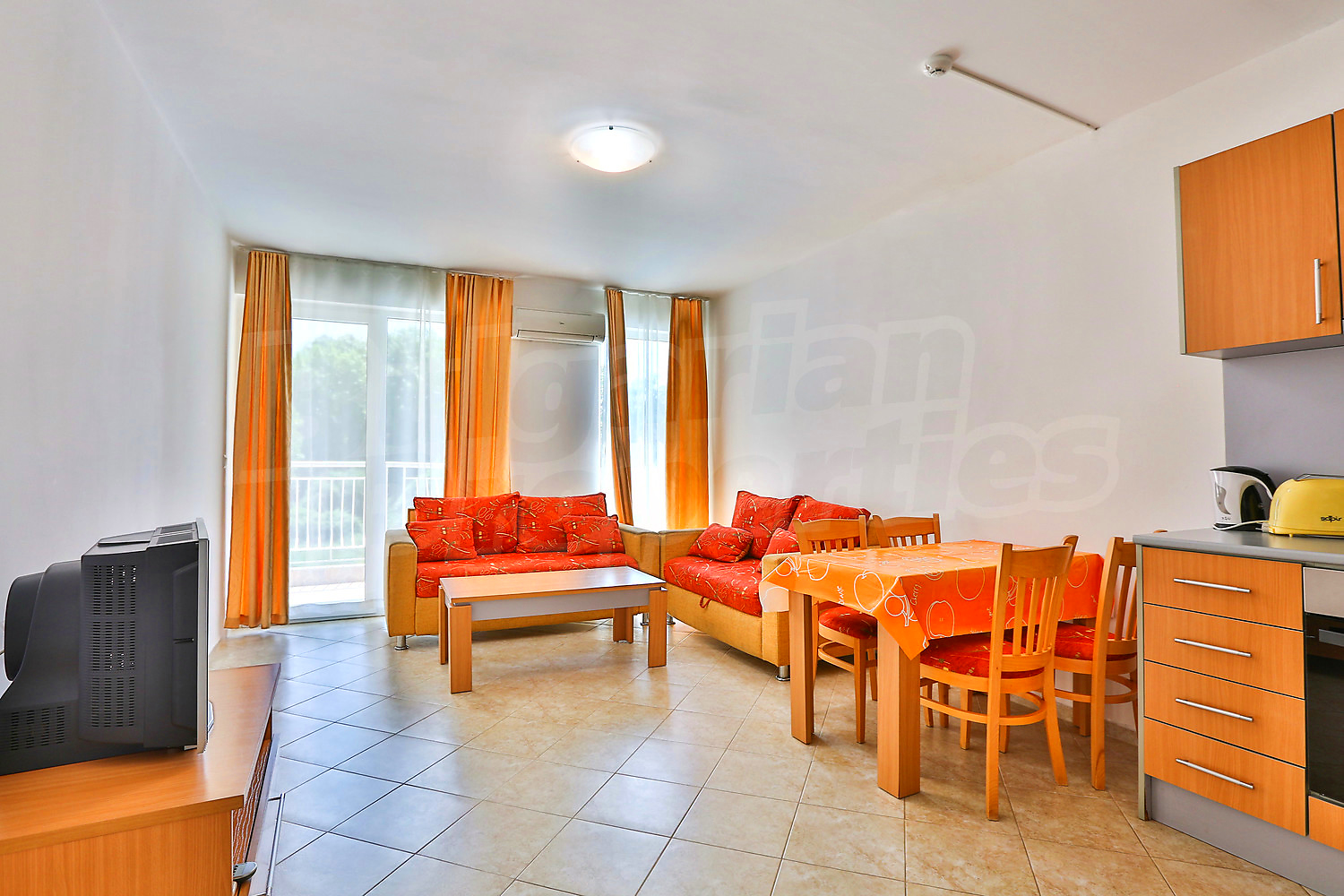 Трехкомнатная квартира площадью 88.44 кв.м. Предлагаемая недвижимость построена в 2008. Отопление кондиционером. Обеспечено кондиционирование следующего типа: стандартные кондиционеры. Внешняя изоляция, межкомнатные двери, окна пвх, стены покрашенные латексной краской и терракотовый пол имеются в предлагаемой недвижимости. Недвижимость включает следующую меблировку и оборудование: бойлер электрический, вытяжка, душевая, кондиционер, меблировку, оборудованная ванная комната, стиральная машина, телевизор и холодильник. Из основных коммуникаций обеспечены электричество, вода и центральная канализация. Балконы, ванная комната с туалетом, внутренний туалет, внутренняя ванная, парковка вне дороги, стоянка, бассейн, консьерж, лифт, заасфальтированная дорога, интернет, кабельное телевидение и телефон имеются в наличии среди прочих упомянутых характеристик предлагаемого объекта, что обеспечит дополнительный комфорт для пользования. Виды на бассейн открываются с недвижимости, раскрывая часть красот живописной Болгарии.