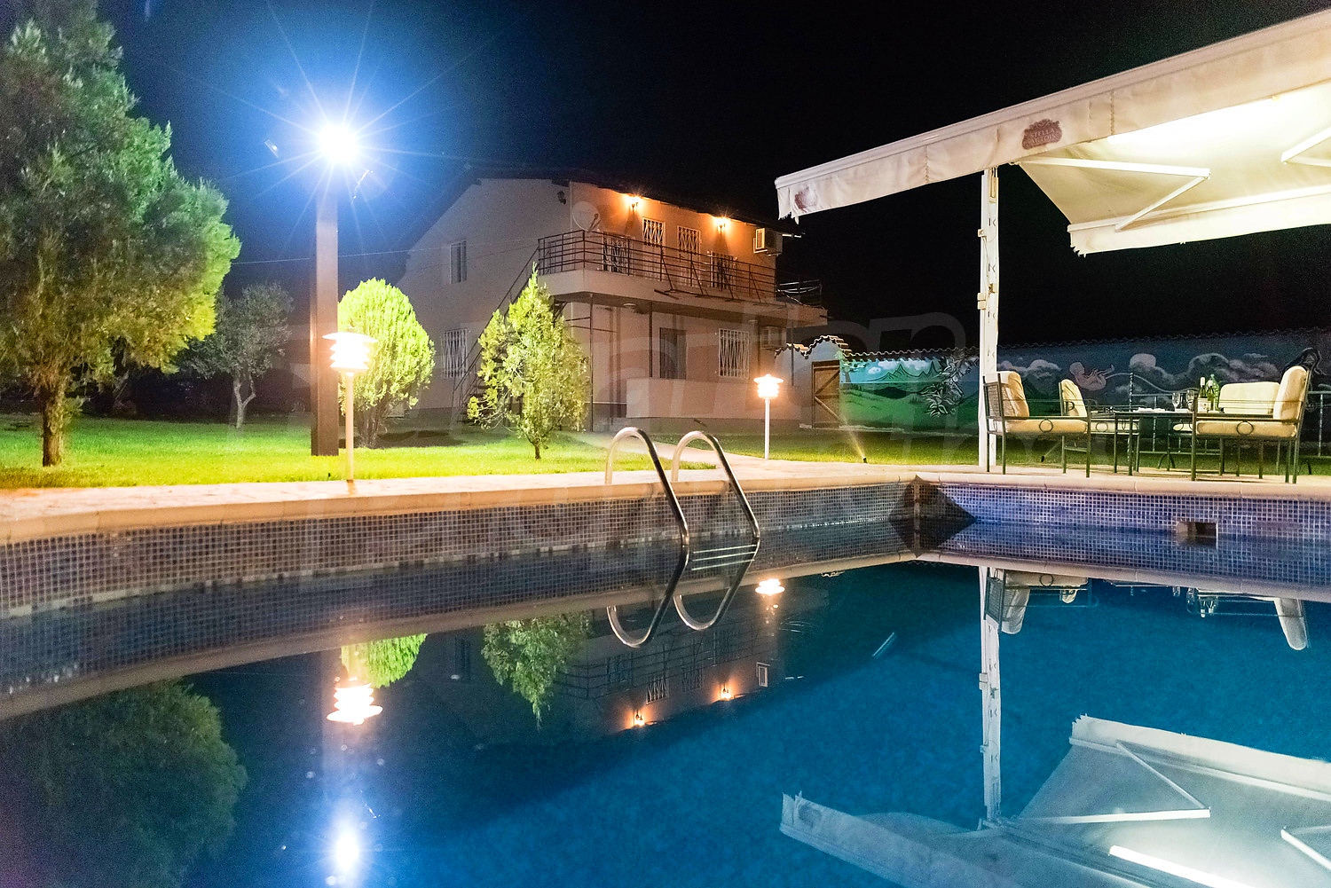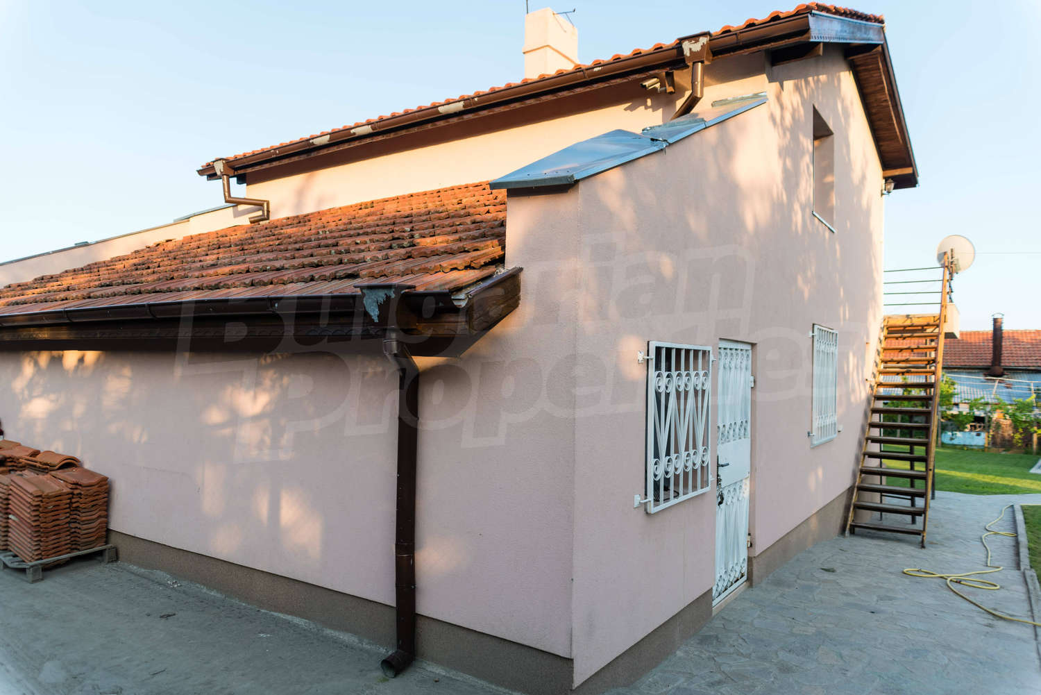 Недавно отреставрированный (2017) двухэтажный дом (115 квадратных метров - етаж 1 - 65 квадратных метров и 2 этаж - 50 квадратных метров) с гаражом и большим двором площадью 1000 кв. м., оборудованный открытым бассейном с установленной тентовой и садовой мебелью, а также летняя кухня с барбекю.