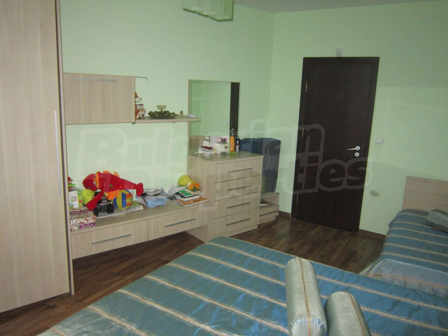 Двухкомнатная квартира площадью 65 кв. метров. Предлагаемая недвижимость построена в 2010. Отопление кондиционером. Обеспечено кондиционирование следующего типа: стандартные кондиционеры. Керамогранитный пол, ламинированный пол, межкомнатные двери, окна пвх и стены покрашенные латексной краской имеются в предлагаемой недвижимости. Недвижимость включает следующую мебель и оснащение: бойлер электрический, вытяжка, духовка, душевая, кондиционер, мебель, оборудованная ванная комната, телевизор и холодильник. Из основных коммуникаций обеспечены электричество, вода, центральное водоснабжение и центральная канализация. Парковка вне дороги, парковочное место, терраса, заасфальтированная дорога, интернет, кабельное телевидение и система охранной сигнализации имеются в наличии среди прочих обозначенных характеристик предлагаемого объекта, что обеспечит дополнительные удобства для пользования. Виды на лес и виды на море открываются с недвижимости, раскрывая часть красот живописной Болгарии.