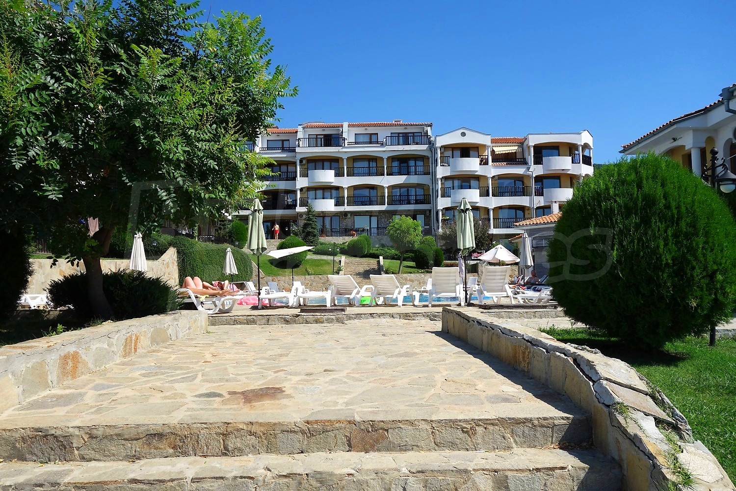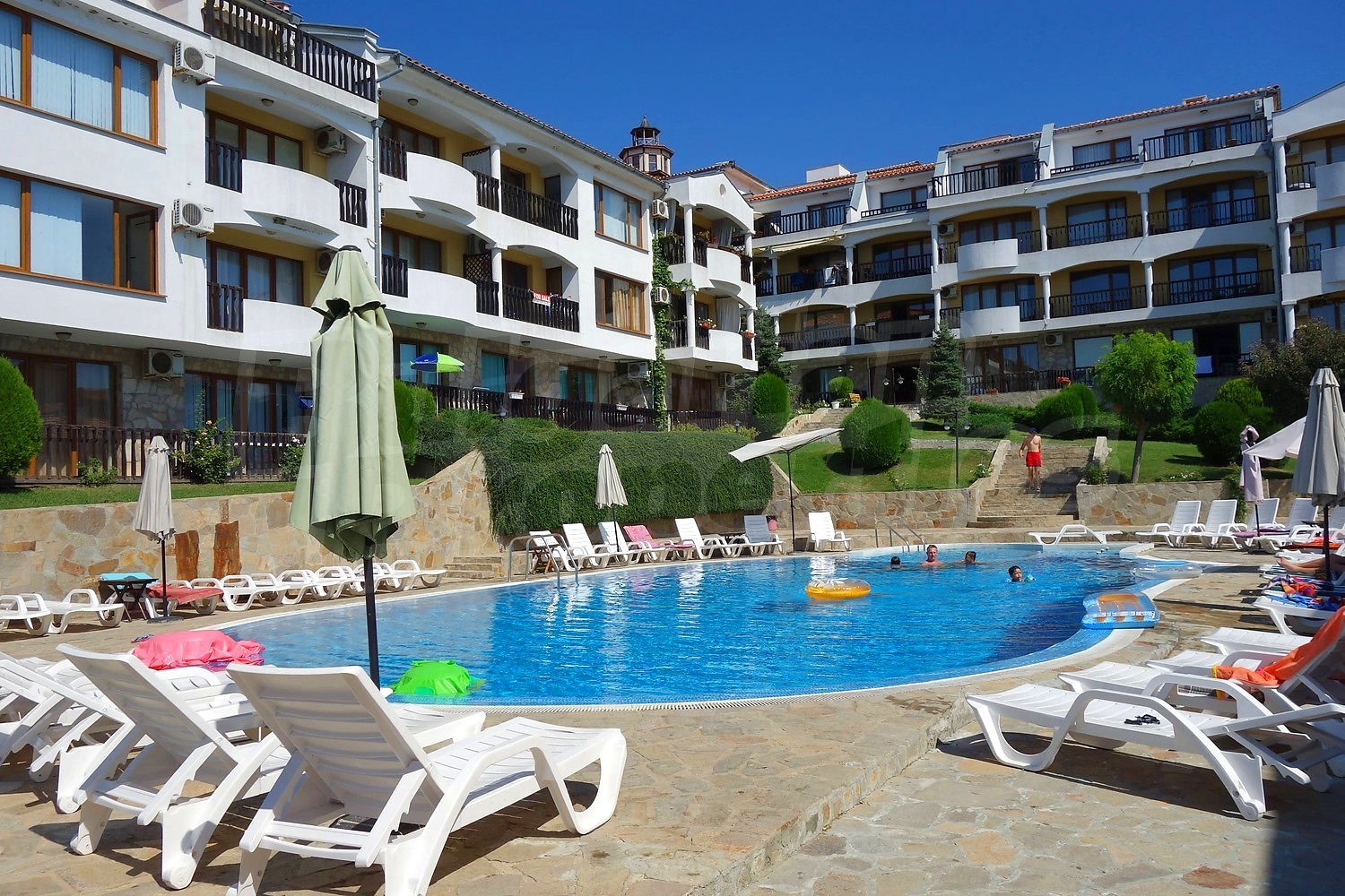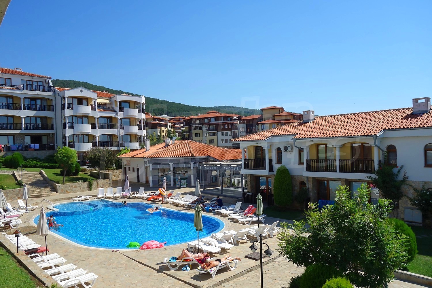 В отеле есть кондиционер, кабельное телевидение и интернет. Ежегодная плата за обслуживание комплекса составляет 9 евро за кв.м.