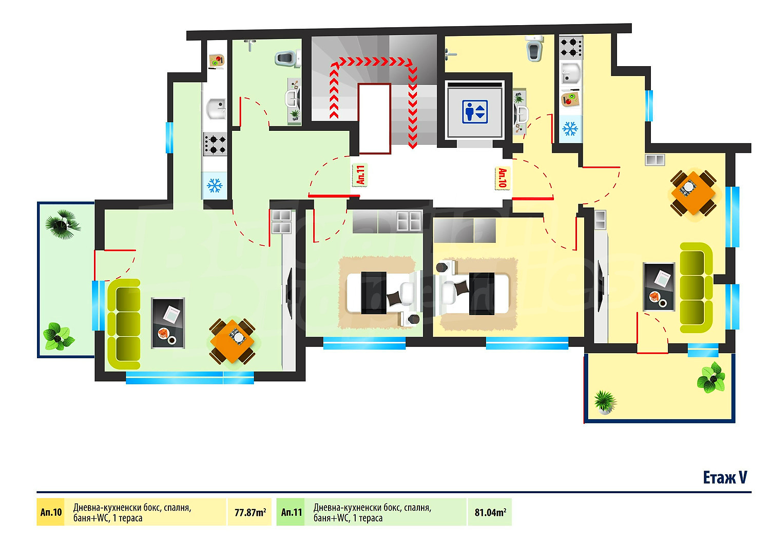 Квартира площадью 78 м2. Предлагаемая недвижимость построена в 2019. Отопление кондиционером. Обеспечено кондиционирование следующего типа: стандартные кондиционеры. Внешняя изоляция и окна пвх имеются в предлагаемой недвижимости. Из основных коммуникаций обеспечены электричество, центральное водоснабжение и центральная канализация. Балконы, ванная комната с туалетом, гараж, парковка вне дороги, заасфальтированная дорога, интернет и кабельное телевидение имеются в наличии среди прочих указанных характеристик предлагаемого объекта, что обеспечит дополнительный комфорт для пользования. Виды на населенный пункт открываются с недвижимости, раскрывая часть красот живописной Болгарии.
