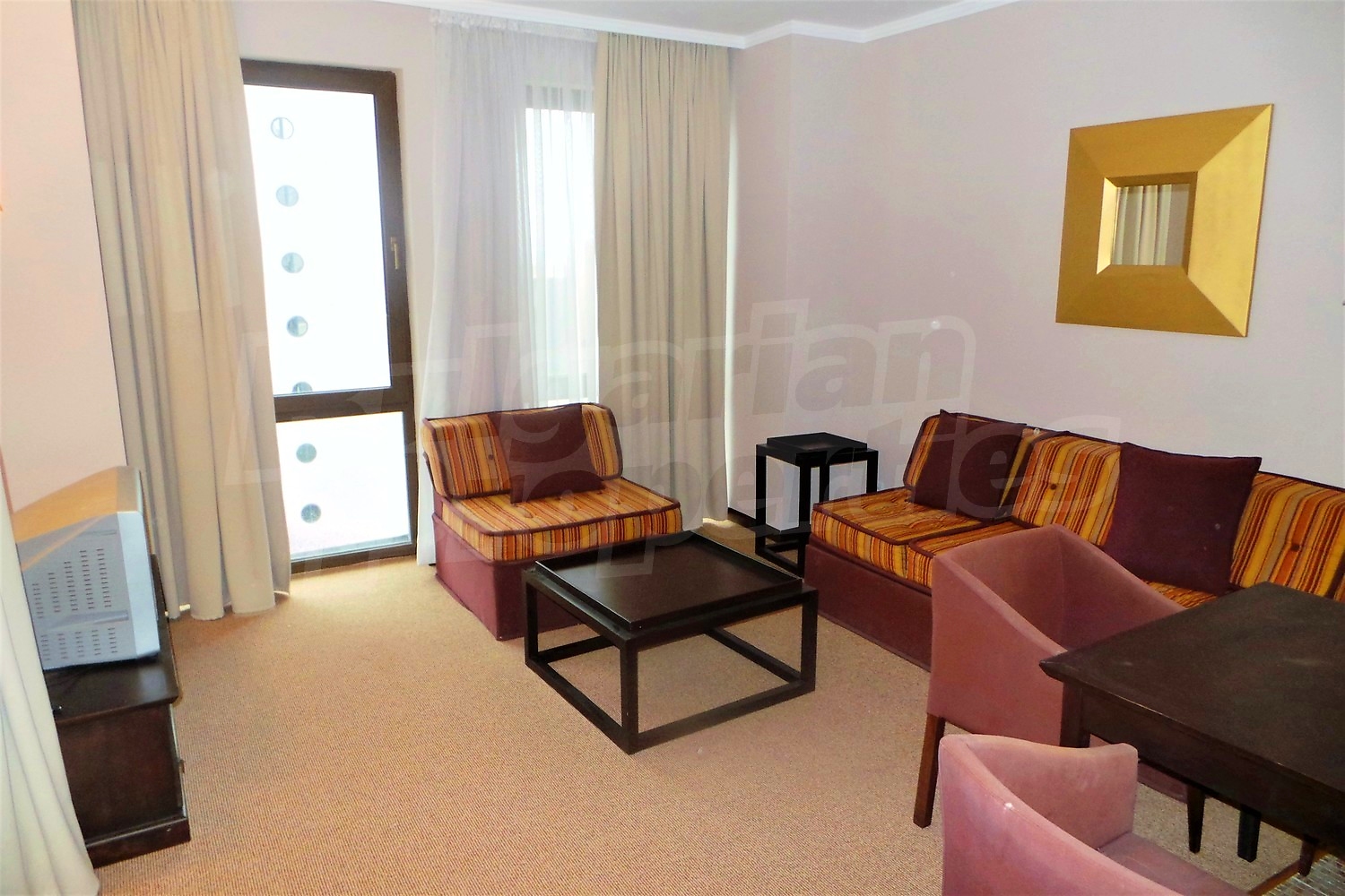Двухкомнатная квартира площадью 71.32 м2. Предлагаемая недвижимость построена в 2005. Отопление кондиционером. Обеспечено кондиционирование следующего типа: центральная система кондиционеров. Межкомнатные двери, окна пвх, покрашенные стены и терракотовый пол имеются в предлагаемой недвижимости. Недвижимость включает следующую мебель и оснащение: ванна, вытяжка, духовка, кондиционер и оборудованная ванная комната. Из основных коммуникаций обеспечены электричество, центральное водоснабжение и центральная канализация. Ванная комната с туалетом, терраса, бассейн, джакузи, комплекс закрытого типа, консьерж, лифт, общие части с отделкой люкс, сауна, тренажерный зал, интернет и кабельное телевидение имеются в наличии среди прочих характеристик предлагаемого объекта, что обеспечит дополнительный комфорт для пользования. Виды на бассейн открываются с недвижимости, раскрывая часть красот живописной Болгарии.