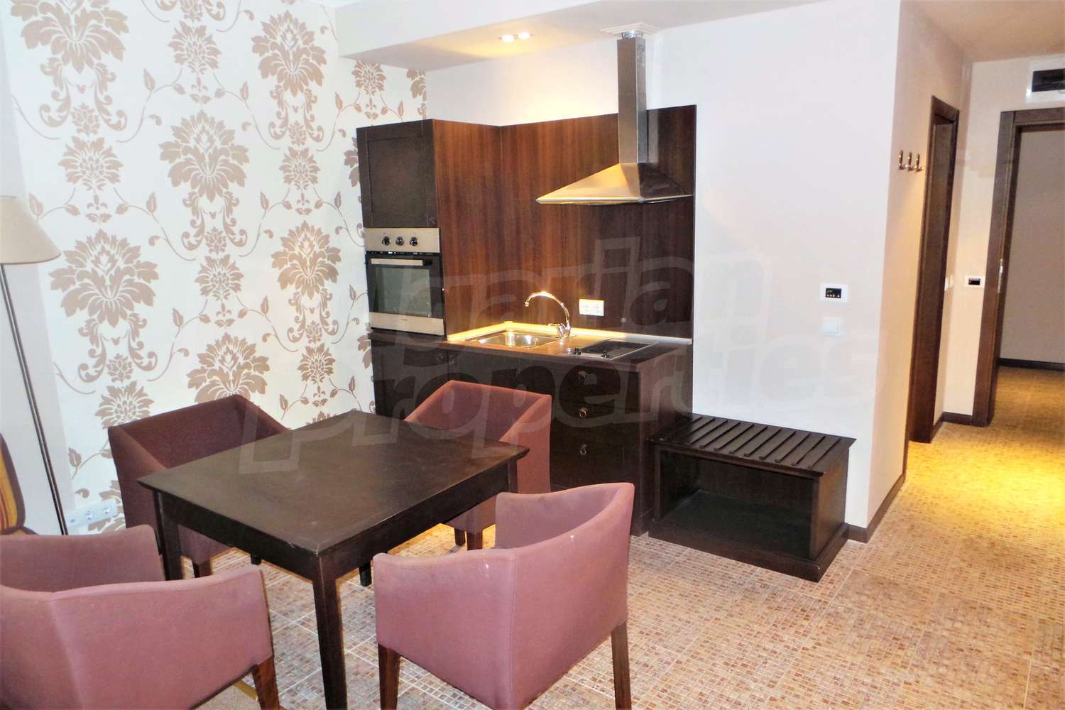 Двухкомнатная квартира площадью 71.32 м2. Предлагаемая недвижимость построена в 2005. Отопление кондиционером. Обеспечено кондиционирование следующего типа: центральная система кондиционеров. Межкомнатные двери, окна пвх, покрашенные стены и терракотовый пол имеются в предлагаемой недвижимости. Недвижимость включает следующую мебель и оснащение: ванна, вытяжка, духовка, кондиционер и оборудованная ванная комната. Из основных коммуникаций обеспечены электричество, центральное водоснабжение и центральная канализация. Ванная комната с туалетом, терраса, бассейн, джакузи, комплекс закрытого типа, консьерж, лифт, общие части с отделкой люкс, сауна, тренажерный зал, интернет и кабельное телевидение имеются в наличии среди прочих характеристик предлагаемого объекта, что обеспечит дополнительный комфорт для пользования. Виды на бассейн открываются с недвижимости, раскрывая часть красот живописной Болгарии.