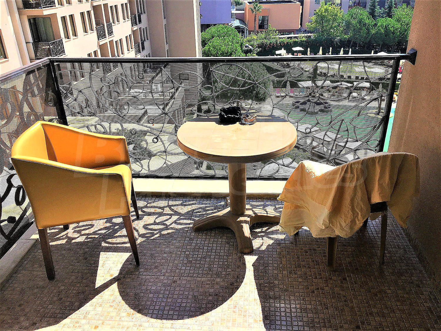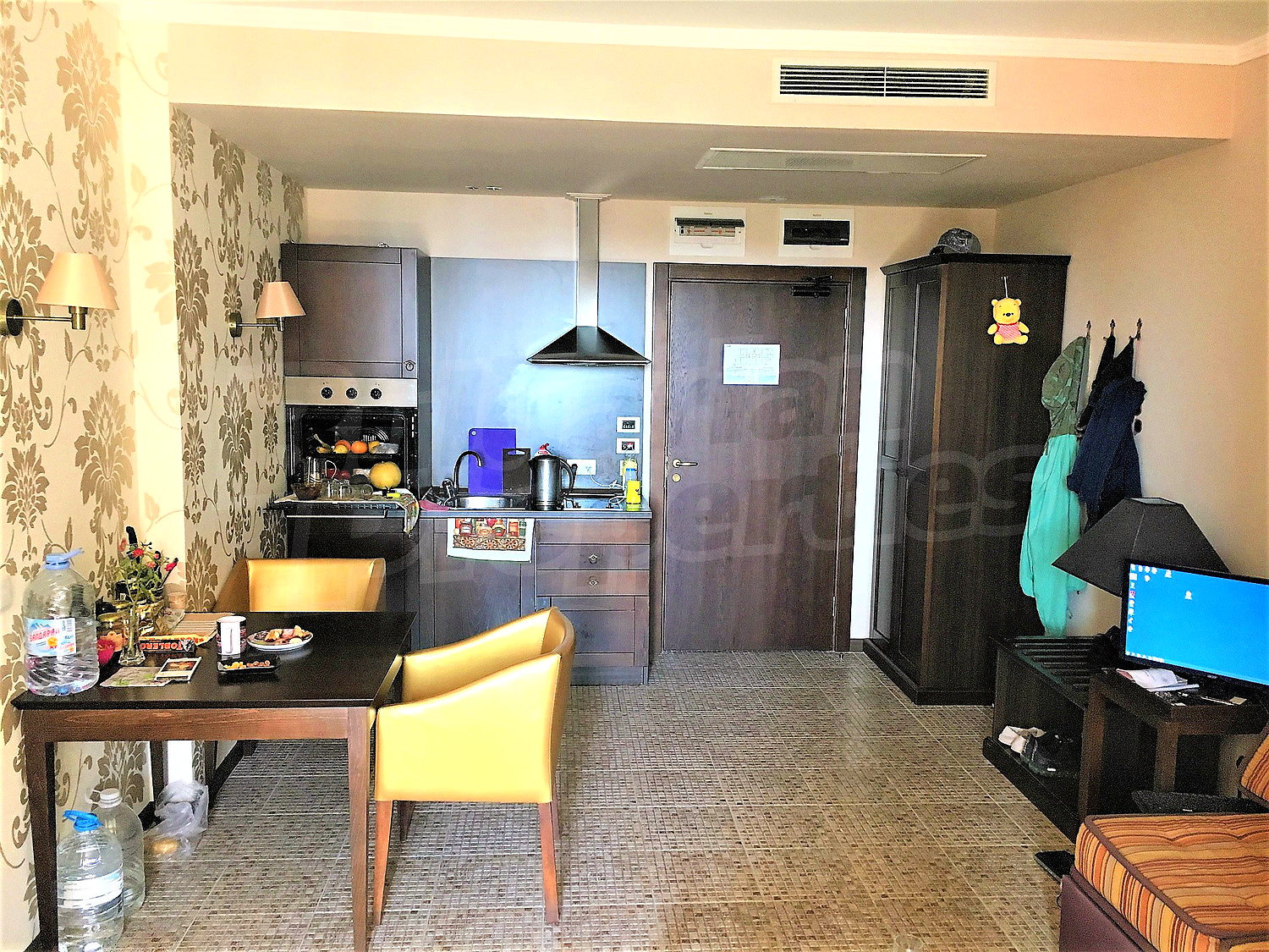 Двухкомнатная квартира площадью 70 м2. Предлагаемая недвижимость построена в 2005. Отопление кондиционером. Обеспечено кондиционирование следующего типа: центральная система кондиционеров. Внешняя изоляция, внутренняя изоляция, двойной стеклопакет, ковровый настил, межкомнатные двери, окна пвх и терракотовый пол имеются в предлагаемой недвижимости. Недвижимость включает следующую мебель и оборудование: ванна, встроенная кухня, вытяжка, духовка, кондиционер, мебель, оборудованная ванная комната, стиральная машина, телевизор и холодильник. Из основных коммуникаций обеспечены электричество, центральное водоснабжение и центральная канализация. Балконы, ванная комната с туалетом, гараж, стоянка, бассейн, джакузи, комплекс закрытого типа, консьерж, лифт, общие части с отделкой люкс, сауна, тренажерный зал, заасфальтированная дорога, интернет, интернет Wi-Fi, кабельное телевидение, система охранной сигнализации и телефон имеются в наличии среди прочих упомянутых характеристик предлагаемого объекта, что обеспечит дополнительные удобства для пользования. Виды на бассейн, виды на внутренний двор и виды на море открываются с недвижимости, раскрывая часть красот живописной Болгарии.
