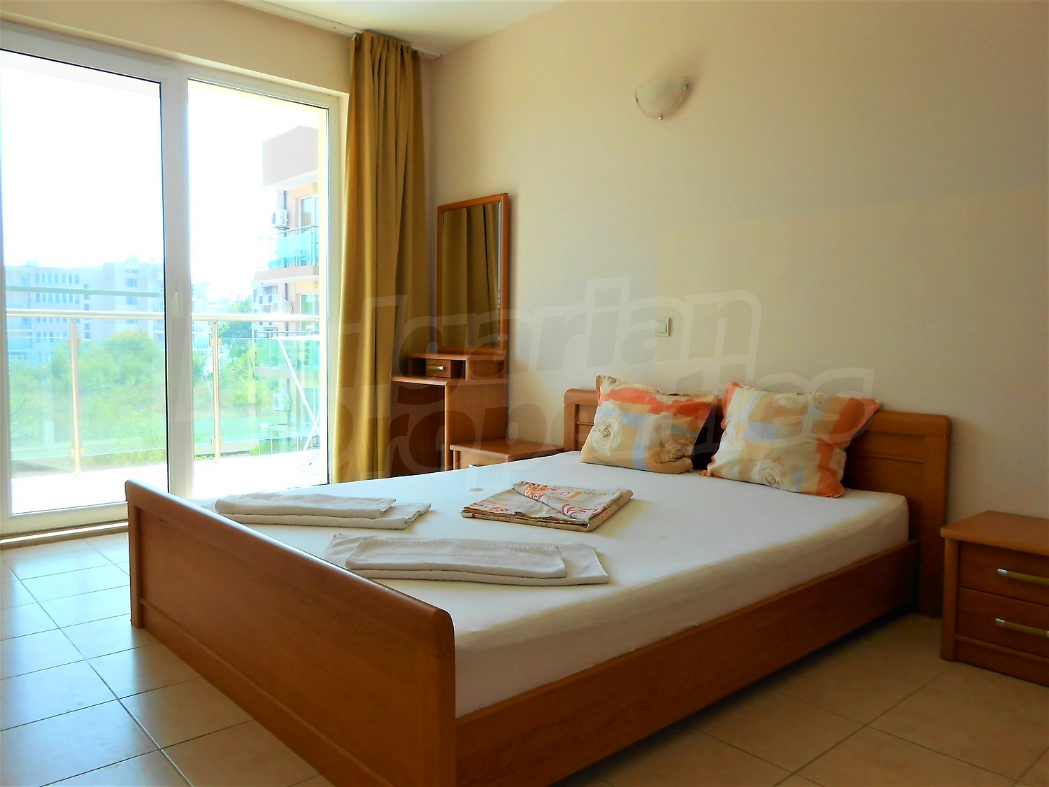 Квартира площадью 95.67 м2. Предлагаемая недвижимость построена в 2007. Отопление кондиционером. Керамогранитный пол, межкомнатные двери, окна пвх, покрашенные стены и терракотовый пол имеются в предлагаемой недвижимости. Недвижимость включает следующую меблировку и оборудование: бойлер электрический, вытяжка, кондиционер, меблировку, оборудованная ванная комната и холодильник. Из основных коммуникаций обеспечены электричество, вода и канализация. Ванная комната с туалетом, терраса, бассейн, лифт, заасфальтированная дорога, интернет, кабельное телевидение и система охранной сигнализации имеются в наличии среди прочих обозначенных характеристик предлагаемого объекта, что обеспечит дополнительные удобства для пользования. Виды на город и виды на море открываются с недвижимости, раскрывая часть красот живописной Болгарии.