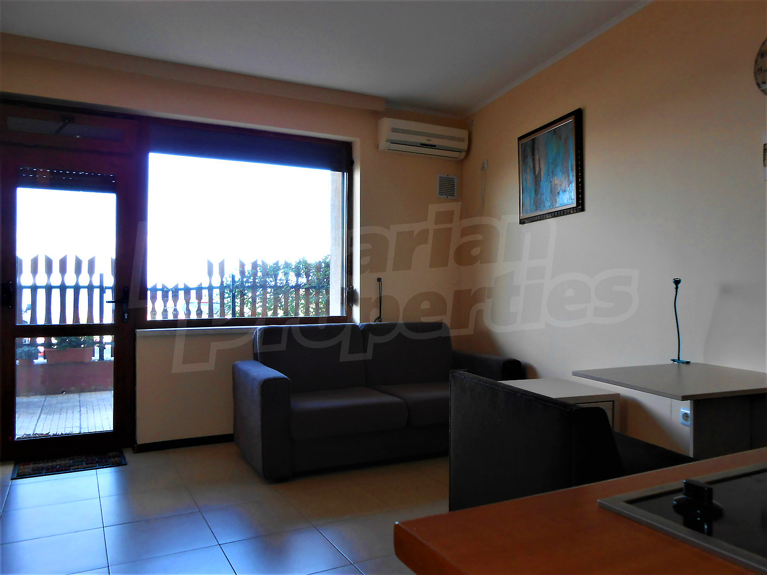 Двухкомнатная квартира площадью 45.78 кв. метров. Предлагаемая недвижимость построена в 2011. Отопление кондиционером. Керамогранитный пол, окна пвх и покрашенные стены имеются в предлагаемой недвижимости. Недвижимость включает следующую меблировку и оборудование: бойлер электрический, вытяжка, духовка, душевая, кондиционер, меблировку, оборудованная ванная комната, стиральная машина и холодильник. Из основных коммуникаций обеспечены электричество, вода и канализация. Ванная комната с туалетом, подвал, терраса, интернет, кабельное телевидение и телефон имеются в наличии среди прочих перечисленных характеристик предлагаемого объекта, что обеспечит дополнительный комфорт для пользования. Виды на горы, виды на море и виды на порт открываются с недвижимости, раскрывая часть красот живописной Болгарии.