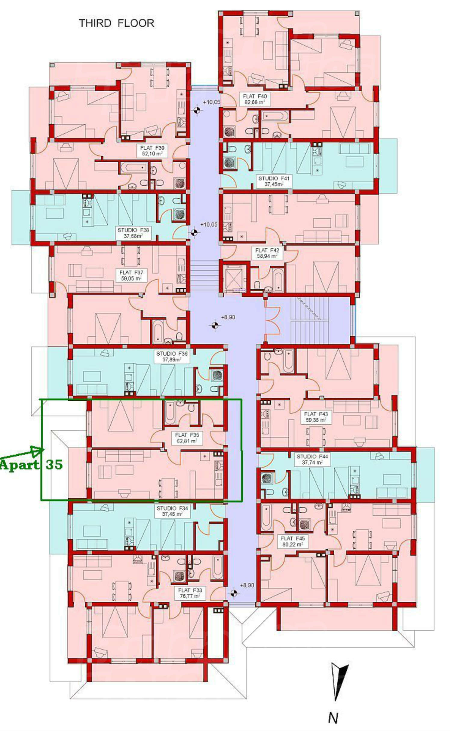 74.01 м2 (жилая площадь: 62.81 м2 плюс общие части: 11.20 м2) еще