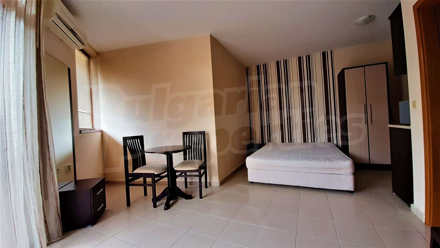 Готовая к переезду студия в закрытом комплексе Laguna Beach, на первой линии от пляжа Золотая Рыбка (50 м), в 3 км от города, на главной дороге Бургас-Созополь, напротив дороги в Созополь.
