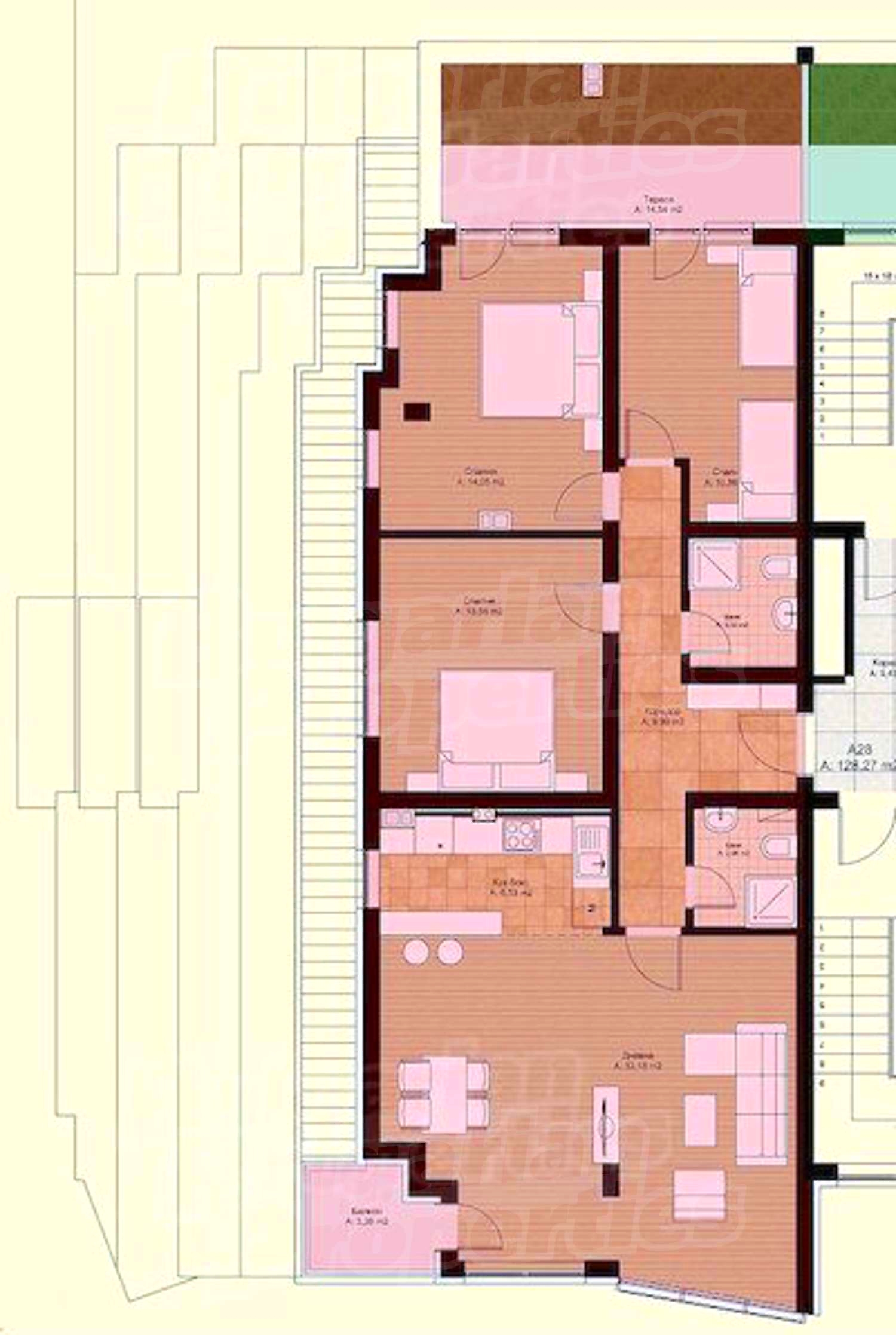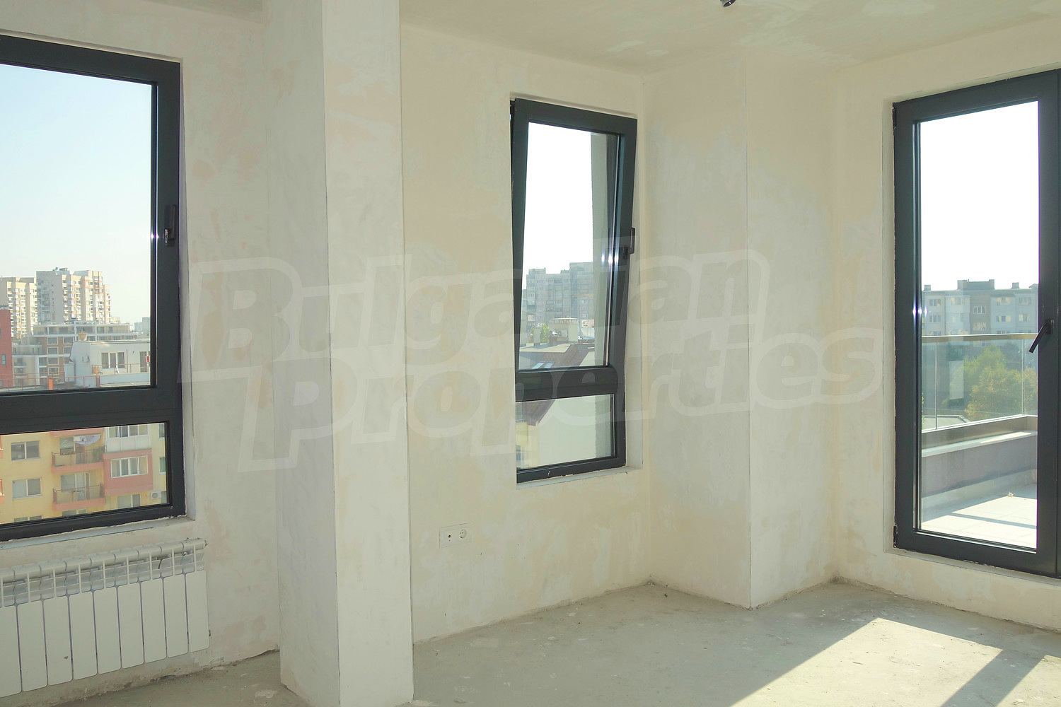 Четырехкомнатная квартира площадью 153.01 м2. Предлагаемая недвижимость построена в 2019. Центральное отопление. Армированная входная дверь, внешняя изоляция и окна пвх имеются в предлагаемой недвижимости. Из основных коммуникаций обеспечены электричество, вода и центральная канализация. Внутренний туалет, внутренняя ванная, гараж, парковка вне дороги, парковочное место, подвал, терраса, лифт, общие части с отделкой люкс, заасфальтированная дорога, интернет, кабельное телевидение и система охранной сигнализации имеются в наличии среди прочих обозначенных характеристик предлагаемого объекта, что обеспечит дополнительные удобства для пользования. Виды на город открываются с недвижимости, раскрывая часть красот живописной Болгарии.