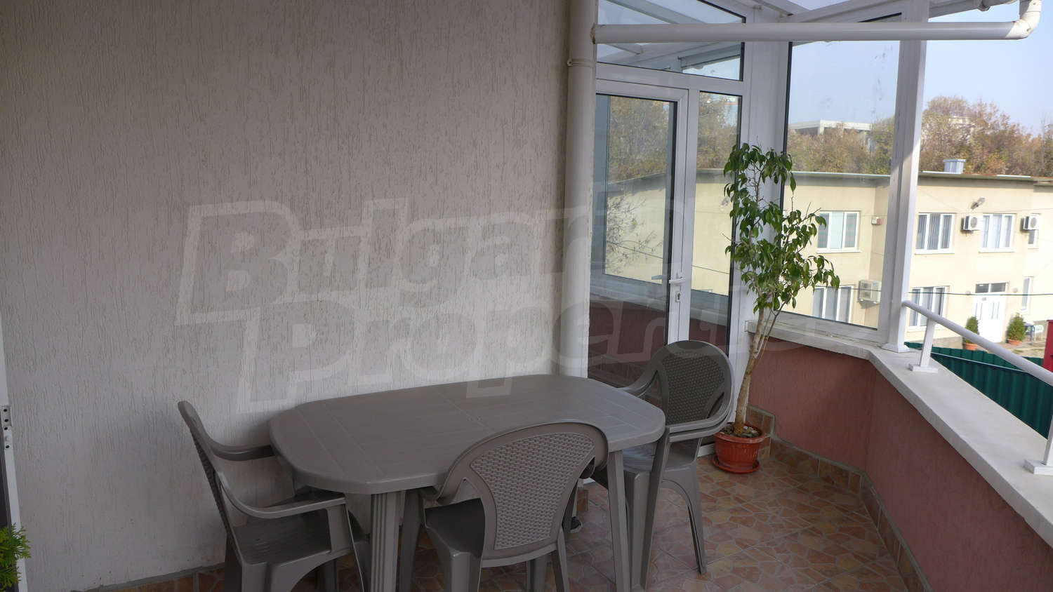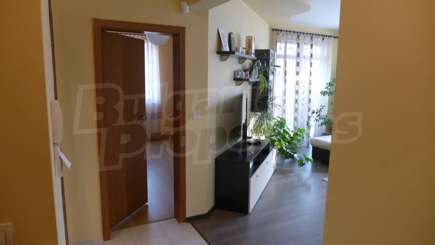 Трехкомнатная квартира площадью 125 кв. метров. Предлагаемая недвижимость построена в 2008. Газовая система отопления. Ламинированный пол, межкомнатные двери, окна пвх, покрашенные стены и терракотовый пол имеются в предлагаемой недвижимости. Недвижимость включает следующую мебель и оборудование: встроенная кухня, духовка, мебель, оборудованная ванная комната и холодильник. Из основных коммуникаций обеспечены отопление на газу, электричество, вода и канализация. Ванная комната с туалетом, парковка вне дороги, подвал, терраса и туалет имеются в наличии среди прочих указанных характеристик предлагаемого объекта, что обеспечит дополнительные удобства для пользования. Виды на населенный пункт и виды на горы открываются с недвижимости, раскрывая часть красот живописной Болгарии.