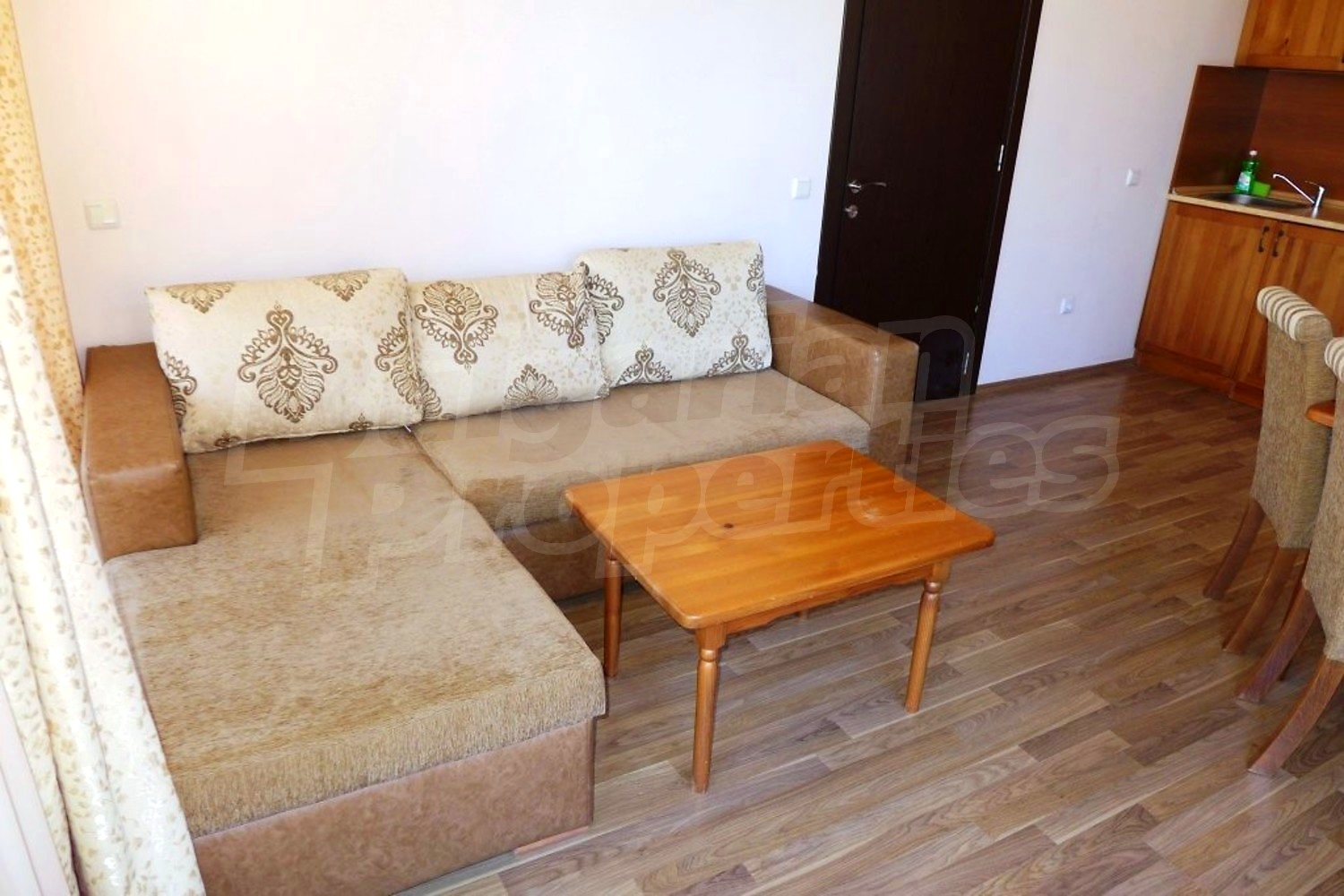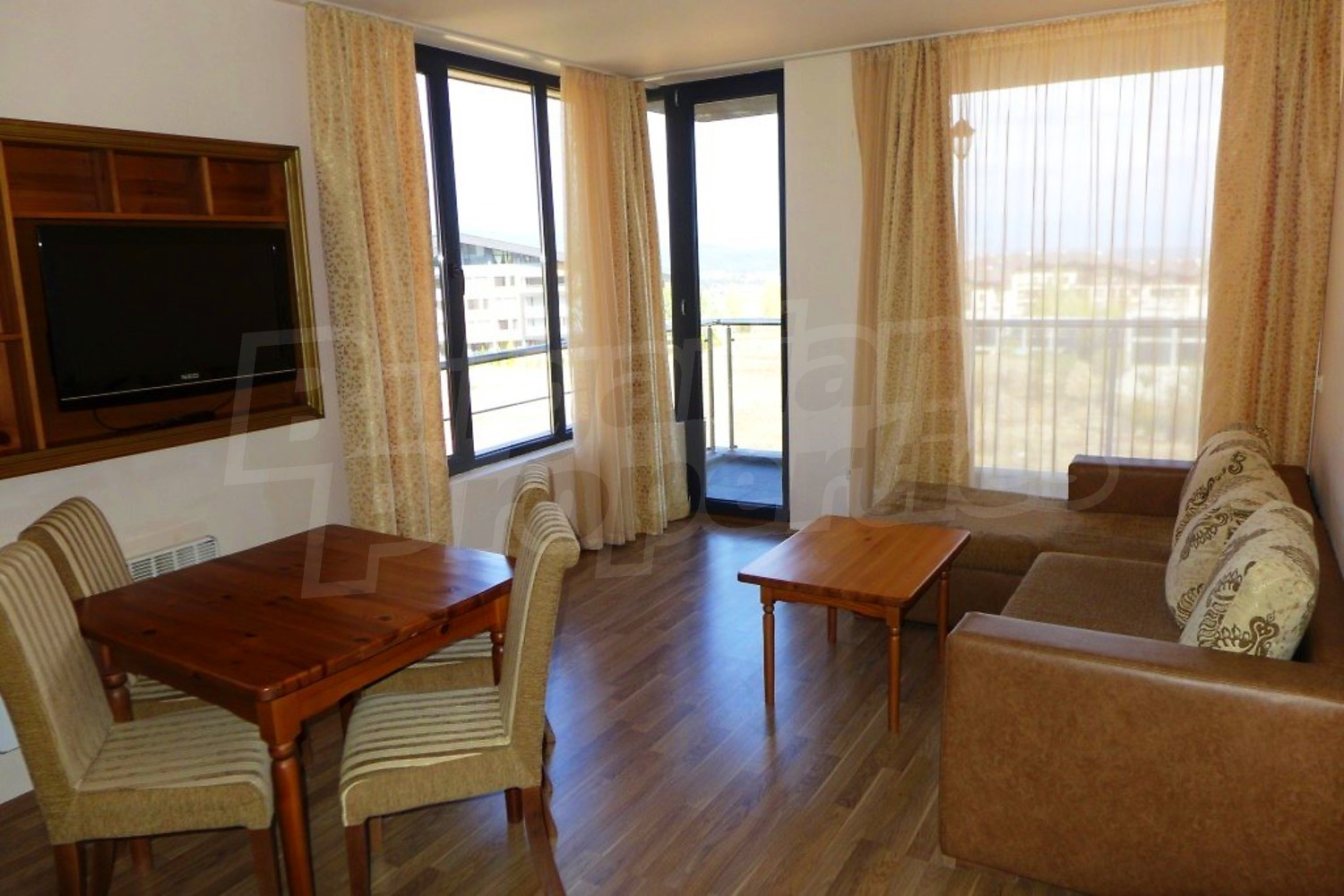 Двухкомнатная квартира площадью 58.36 м2. Предлагаемая недвижимость построена в 2013. Отопление на электрических радиаторах, отопление на электричестве и отопление на электроконвекторах. Внешняя изоляция, ламинированный пол, межкомнатные двери, окна пвх, стены покрашенные латексной краской и терракотовый пол имеются в предлагаемой недвижимости. Недвижимость включает следующую меблировку и оборудование: бойлер электрический, встроенная кухня, вытяжка, душевая, меблировку, оборудованная ванная комната, телевизор и холодильник. Из основных коммуникаций обеспечены электричество, центральное водоснабжение и центральная канализация. Балконы, ванная комната с туалетом, парковка вне дороги, стоянка, терраса, бассейн, комплекс закрытого типа, консьерж, лифт, общие части с отделкой люкс, сауна, заасфальтированная дорога, интернет, интернет Wi-Fi и кабельное телевидение имеются в наличии среди прочих отличительных характеристик предлагаемого объекта, что обеспечит дополнительные удобства для пользования. Виды на гольф поле, виды на горы и виды на лес открываются с недвижимости, раскрывая часть красот живописной Болгарии.