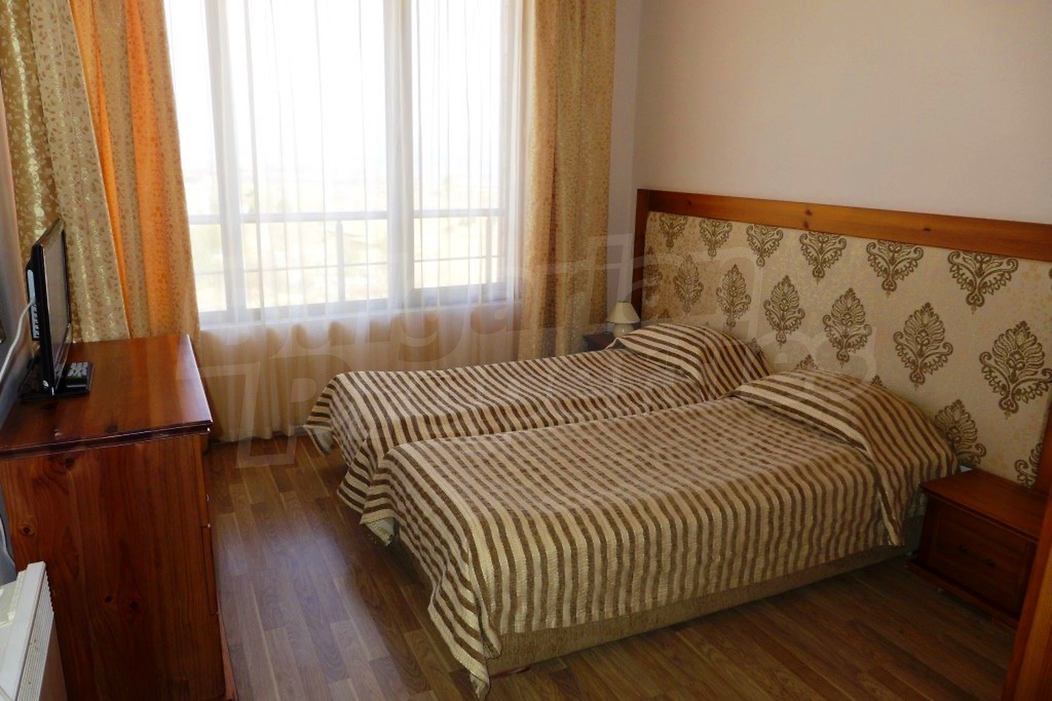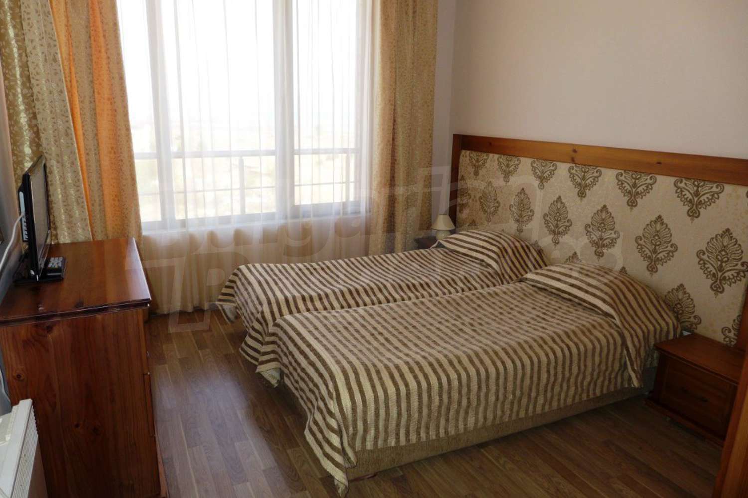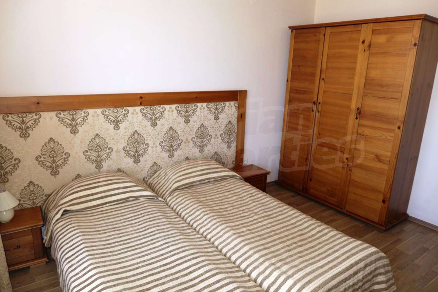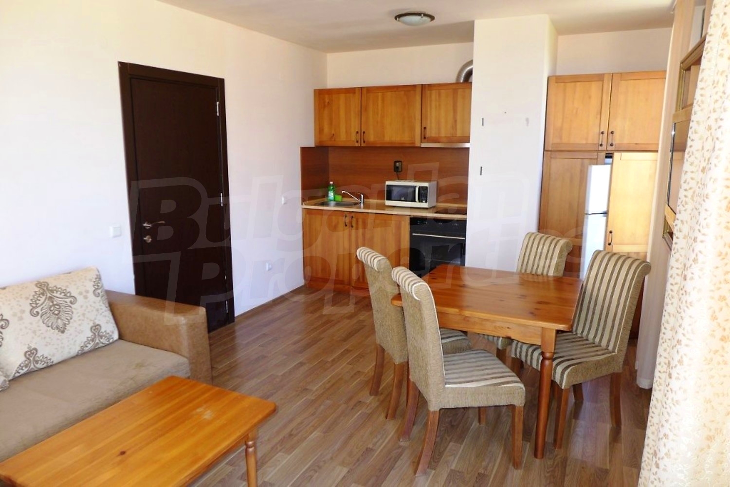 Двухкомнатная квартира площадью 58.36 м2. Предлагаемая недвижимость построена в 2013. Отопление на электрических радиаторах, отопление на электричестве и отопление на электроконвекторах. Внешняя изоляция, ламинированный пол, межкомнатные двери, окна пвх, стены покрашенные латексной краской и терракотовый пол имеются в предлагаемой недвижимости. Недвижимость включает следующую меблировку и оборудование: бойлер электрический, встроенная кухня, вытяжка, душевая, меблировку, оборудованная ванная комната, телевизор и холодильник. Из основных коммуникаций обеспечены электричество, центральное водоснабжение и центральная канализация. Балконы, ванная комната с туалетом, парковка вне дороги, стоянка, терраса, бассейн, комплекс закрытого типа, консьерж, лифт, общие части с отделкой люкс, сауна, заасфальтированная дорога, интернет, интернет Wi-Fi и кабельное телевидение имеются в наличии среди прочих отличительных характеристик предлагаемого объекта, что обеспечит дополнительные удобства для пользования. Виды на гольф поле, виды на горы и виды на лес открываются с недвижимости, раскрывая часть красот живописной Болгарии.