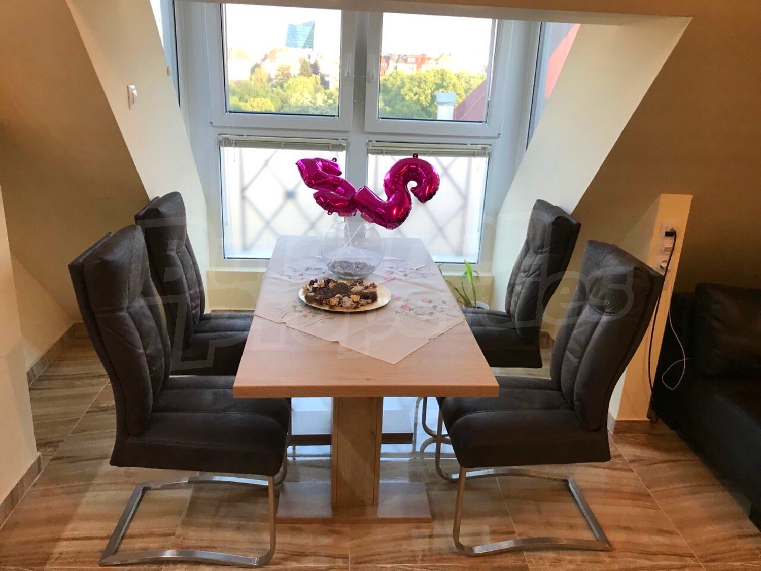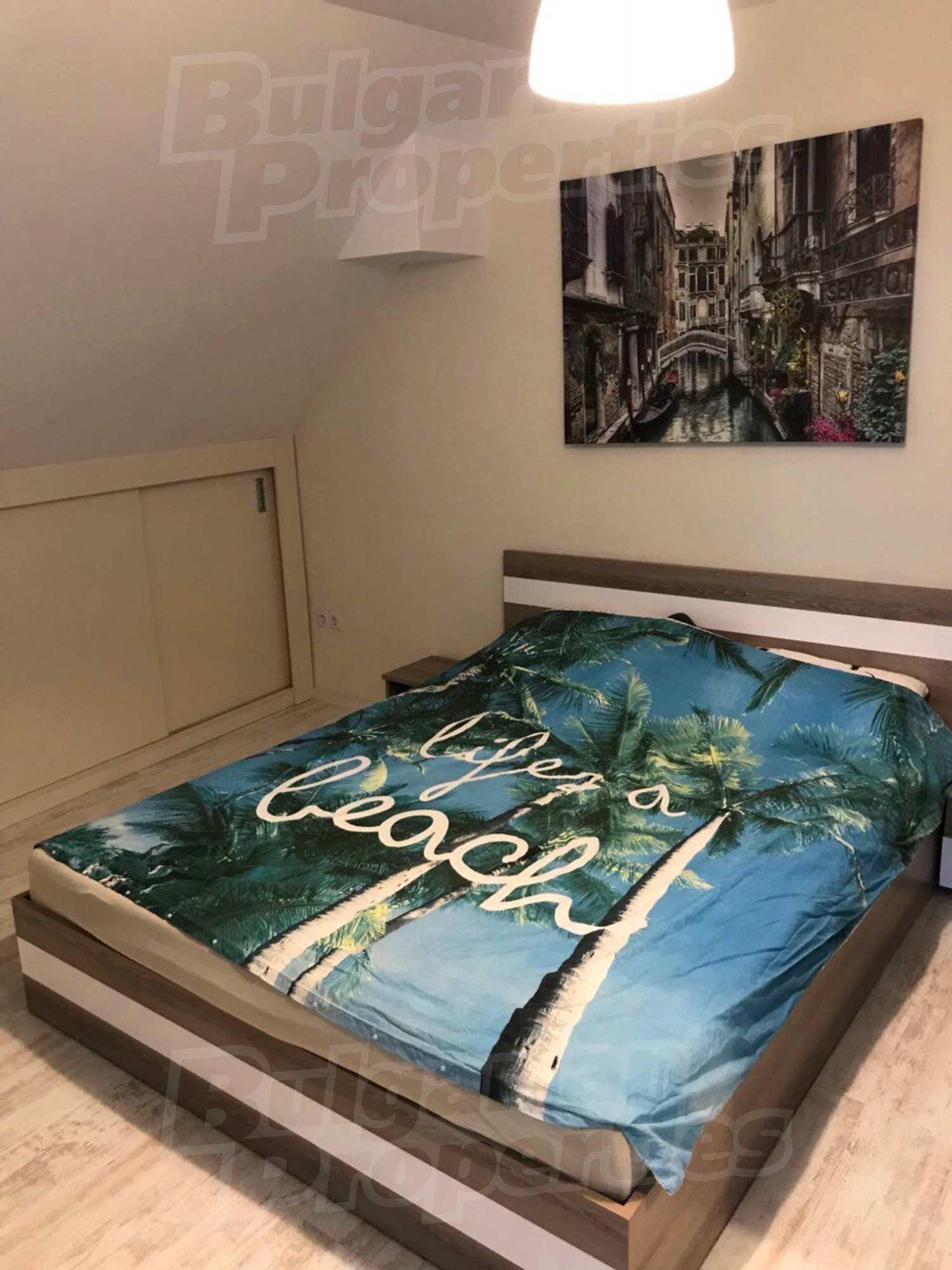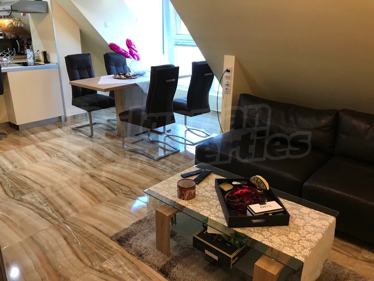 Трехкомнатная квартира площадью 112 м2. Предлагаемая недвижимость построена в 2007. Отопление кондиционером. Ламинированный пол, межкомнатные двери, окна пвх, покрашенные стены и терракотовый пол имеются в предлагаемой недвижимости. Недвижимость включает следующую меблировку и оборудование: бойлер электрический, встроенная кухня, вытяжка, духовка, кондиционер, меблировку, оборудованная ванная комната, телевизор и холодильник. Из основных коммуникаций обеспечены электричество, вода и канализация. Балконы, ванная комната с туалетом, парковка вне дороги, парковочное место, лифт, интернет, кабельное телевидение и система охранной сигнализации имеются в наличии среди прочих перечисленных характеристик предлагаемого объекта, что обеспечит дополнительные удобства для пользования. Виды на населенный пункт открываются с недвижимости, раскрывая часть красот живописной Болгарии.