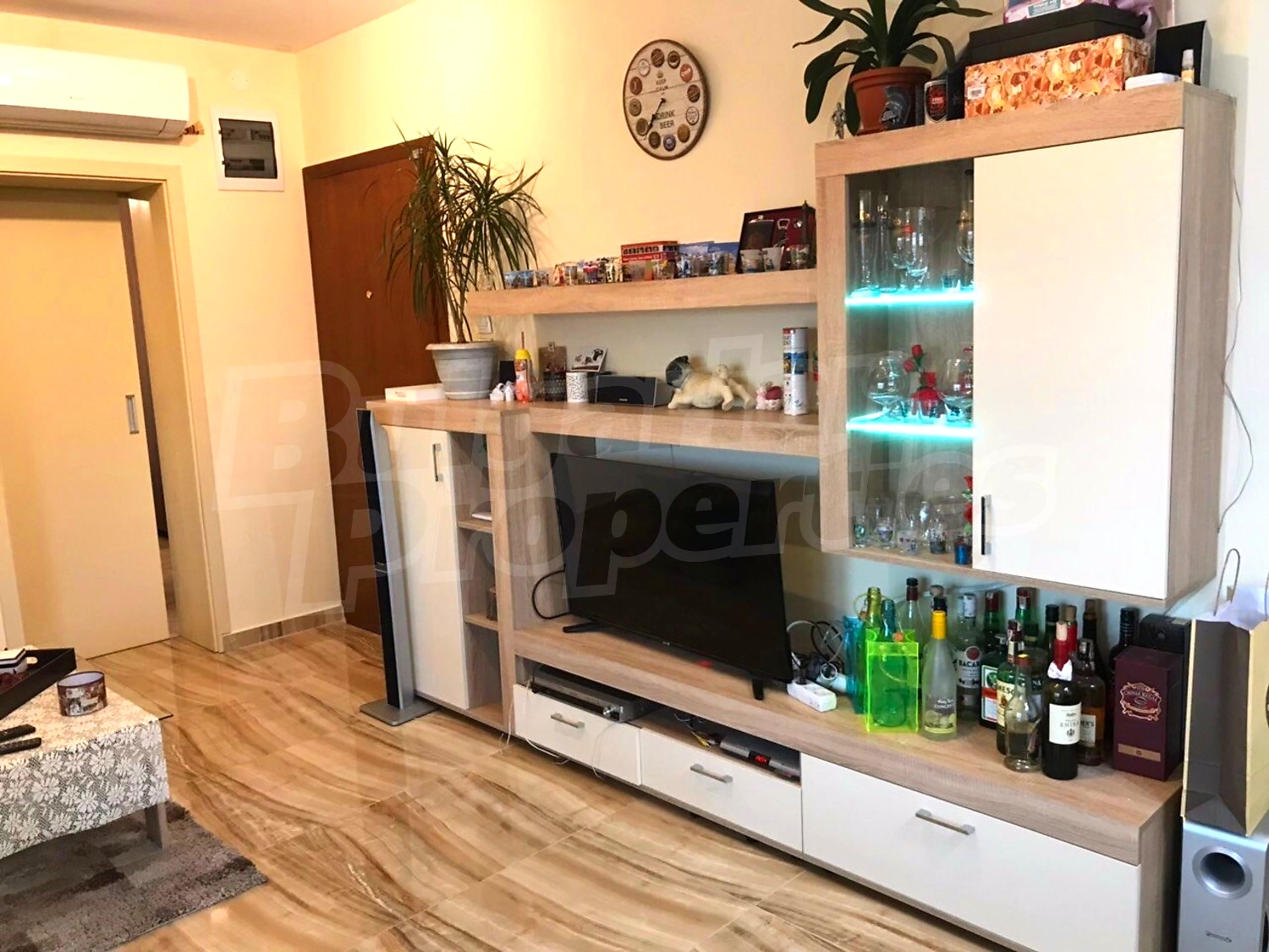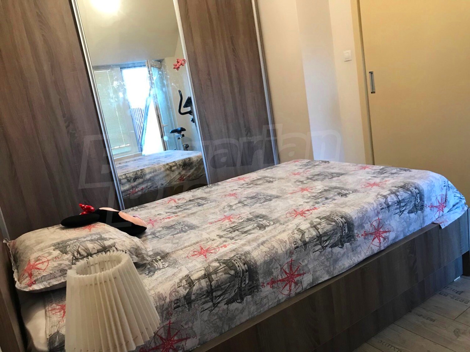 Трехкомнатная квартира площадью 112 м2. Предлагаемая недвижимость построена в 2007. Отопление кондиционером. Ламинированный пол, межкомнатные двери, окна пвх, покрашенные стены и терракотовый пол имеются в предлагаемой недвижимости. Недвижимость включает следующую меблировку и оборудование: бойлер электрический, встроенная кухня, вытяжка, духовка, кондиционер, меблировку, оборудованная ванная комната, телевизор и холодильник. Из основных коммуникаций обеспечены электричество, вода и канализация. Балконы, ванная комната с туалетом, парковка вне дороги, парковочное место, лифт, интернет, кабельное телевидение и система охранной сигнализации имеются в наличии среди прочих перечисленных характеристик предлагаемого объекта, что обеспечит дополнительные удобства для пользования. Виды на населенный пункт открываются с недвижимости, раскрывая часть красот живописной Болгарии.
