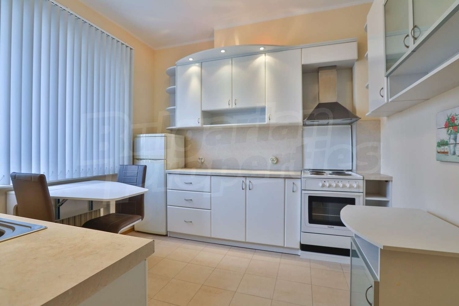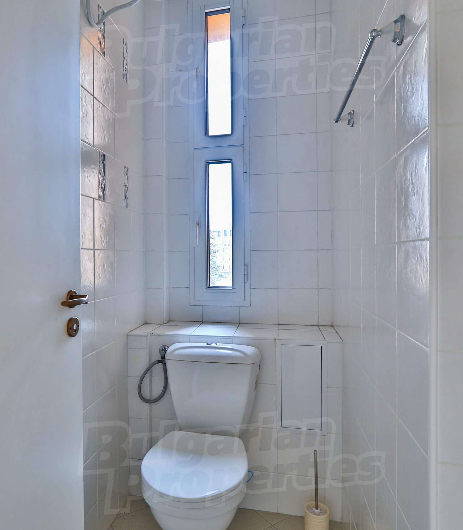Четырехкомнатная квартира площадью 126 м2. Отопление кондиционером и центральное отопление. Обеспечено кондиционирование следующего типа: стандартные кондиционеры. Армированная входная дверь, керамогранитный пол, крепкие стены, межкомнатные двери, окна пвх, паркетный пол и стены покрашенные латексной краской имеются в предлагаемой недвижимости. Недвижимость включает следующую мебель и оснащение: встроенная кухня, вытяжка, духовка, душевая, кондиционер, мебель, оборудованная ванная комната, посудомоечная машина, стиральная машина, телевизор и холодильник. Из основных коммуникаций обеспечены электричество, вода и центральная канализация. Внутренний туалет, внутренняя ванная, парковка вне дороги, терраса, заасфальтированная дорога, интернет, кабельное телевидение и система охранной сигнализации имеются в наличии среди прочих упомянутых характеристик предлагаемого объекта, что обеспечит дополнительный комфорт для пользования. Виды на город открываются с недвижимости, раскрывая часть красот живописной Болгарии.