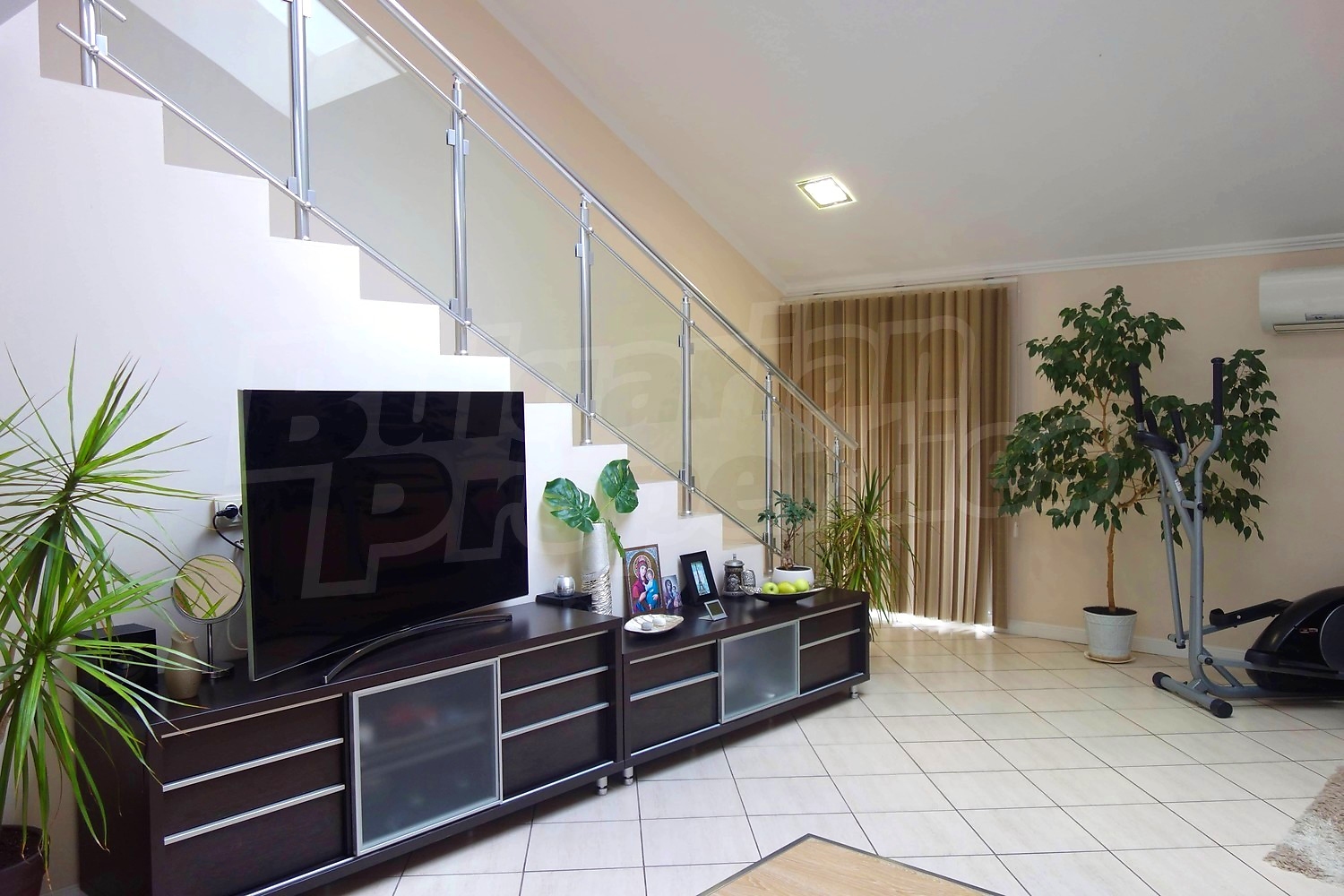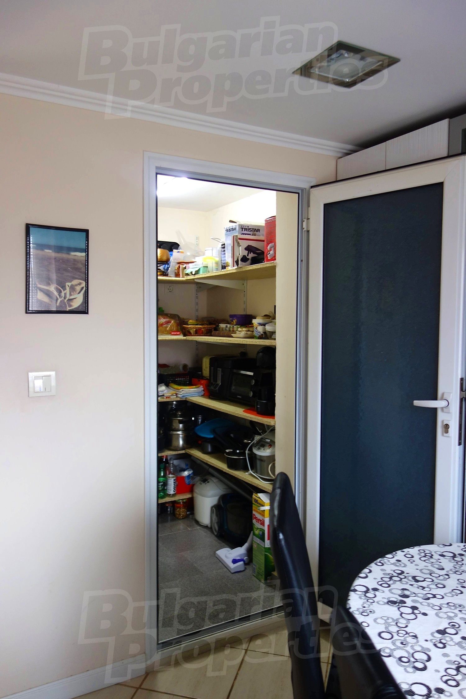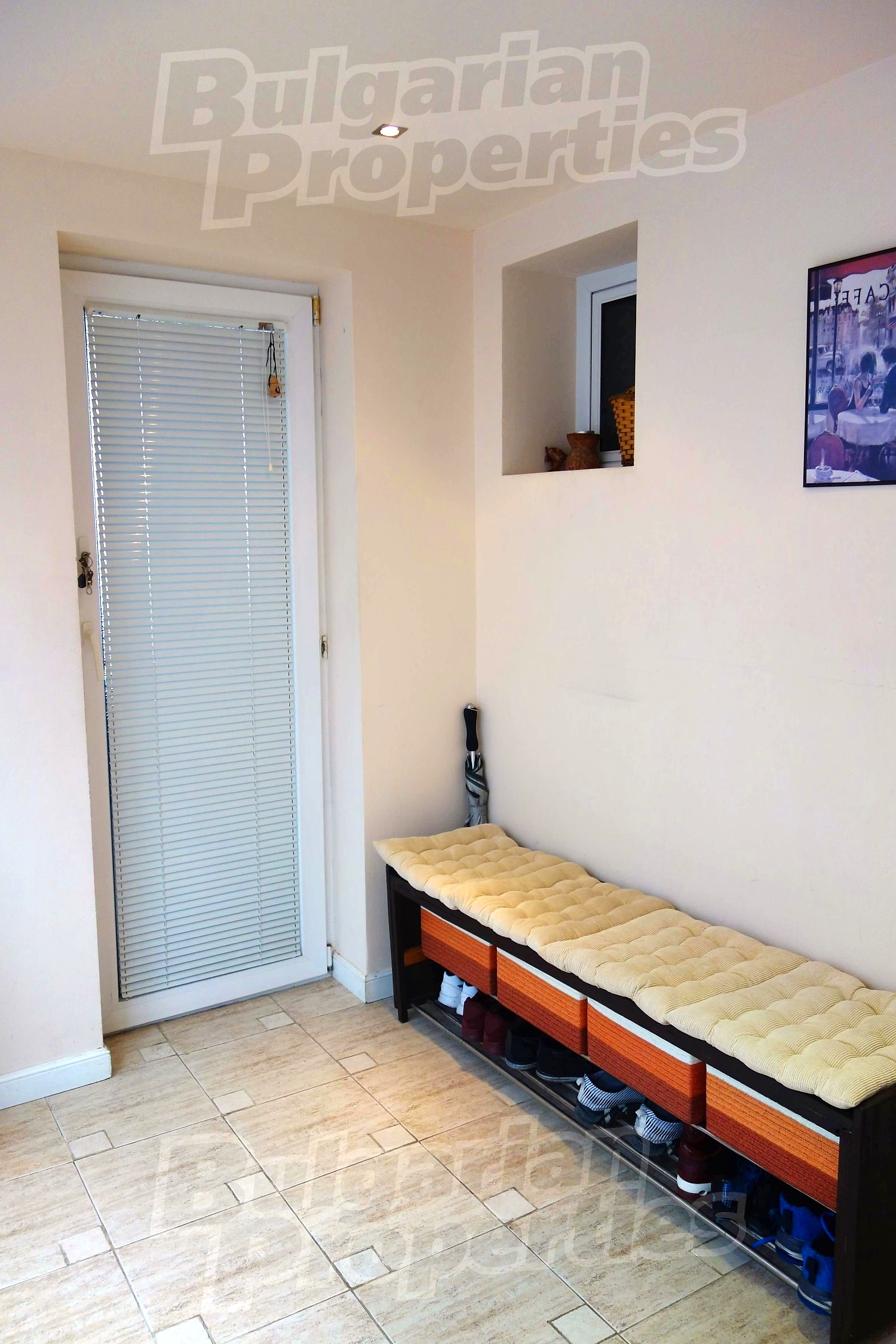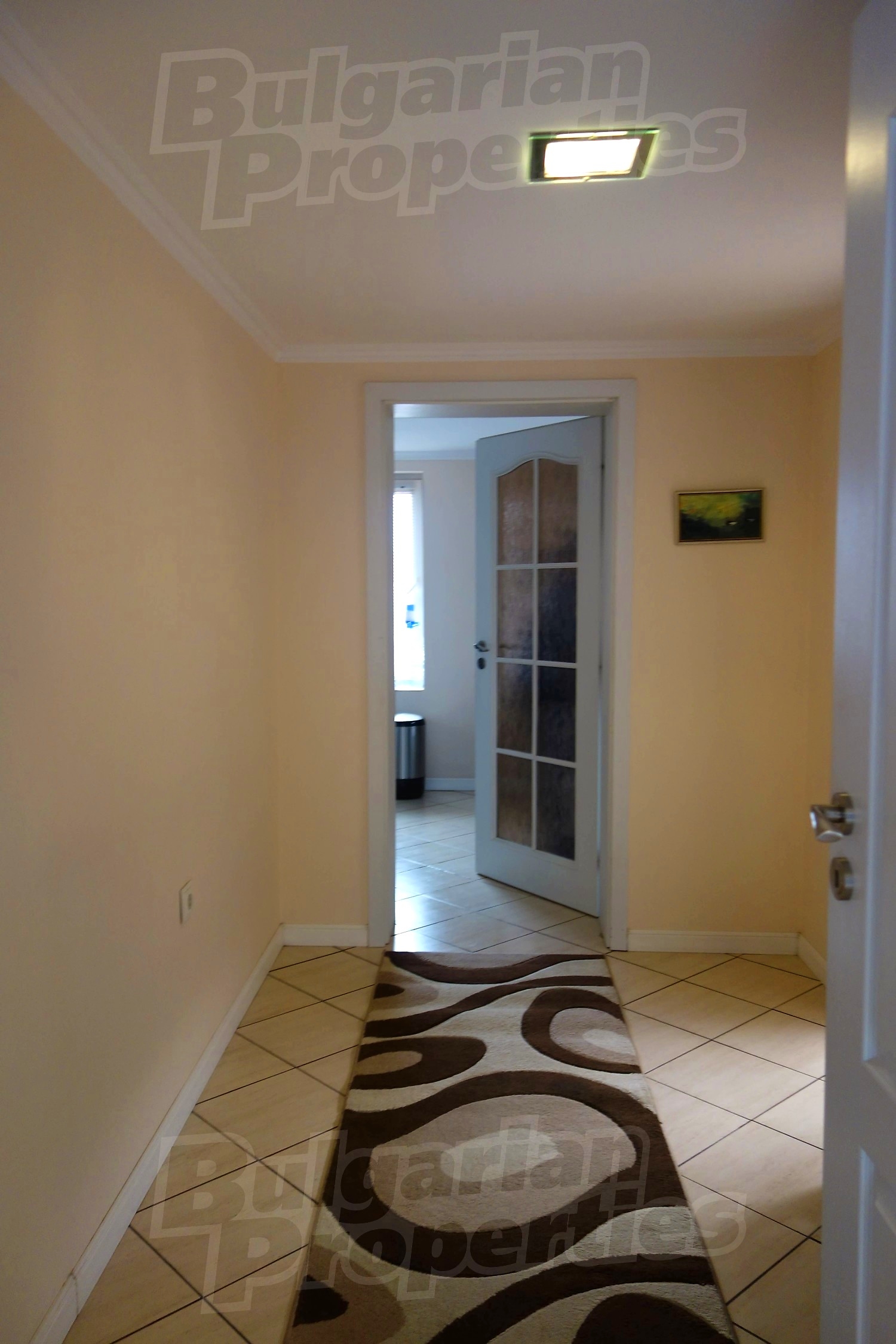 Дом площадью 152 м2. Предлагаемая недвижимость построена в 1997. Отопление кондиционером. Ламинированный пол, межкомнатные двери, окна пвх, стены покрашенные латексной краской и терракотовый пол имеются в предлагаемой недвижимости. Недвижимость включает следующую мебель и оборудование: бойлер электрический, ванна, вытяжка, духовка, кондиционер, мебель, оборудованная ванная комната, телевизор и холодильник. Из основных коммуникаций обеспечены электричество и вода. Ванная комната с туалетом, гараж, парковочное место, терраса, интернет и кабельное телевидение имеются в наличии среди прочих указанных характеристик предлагаемого объекта, что обеспечит дополнительные удобства для пользования. Виды на внутренний двор открываются с недвижимости, раскрывая часть красот живописной Болгарии.