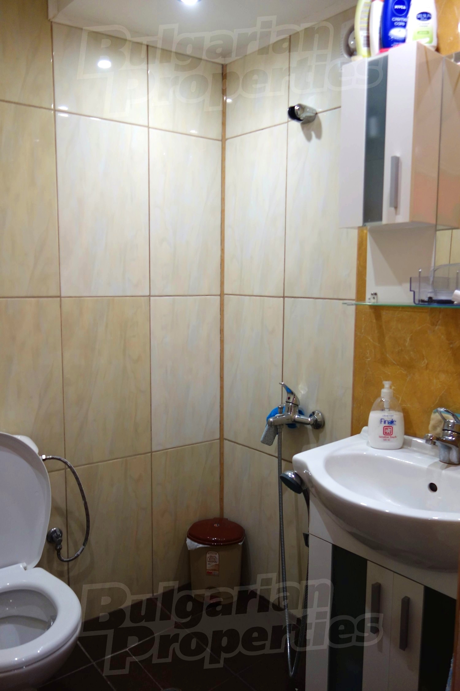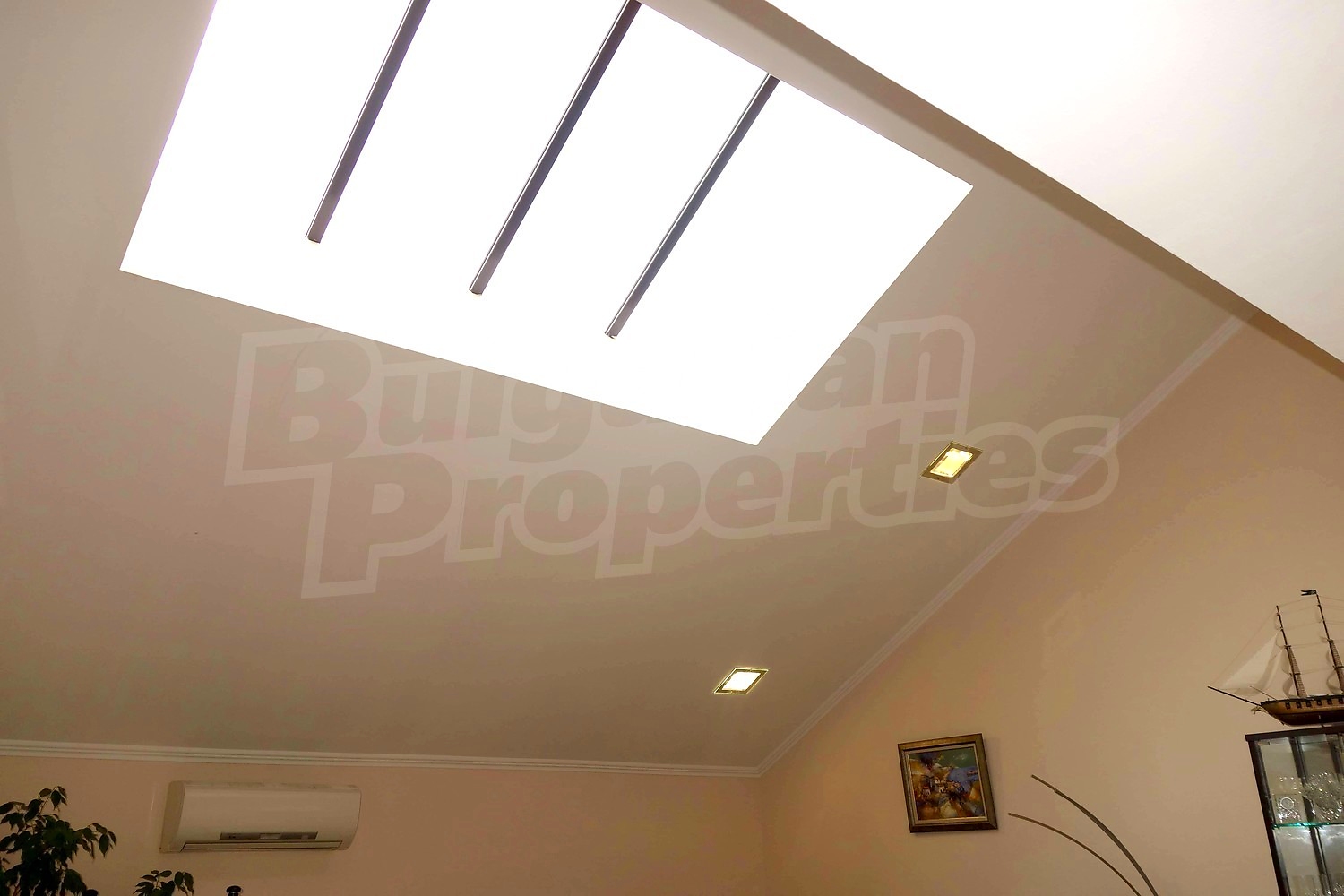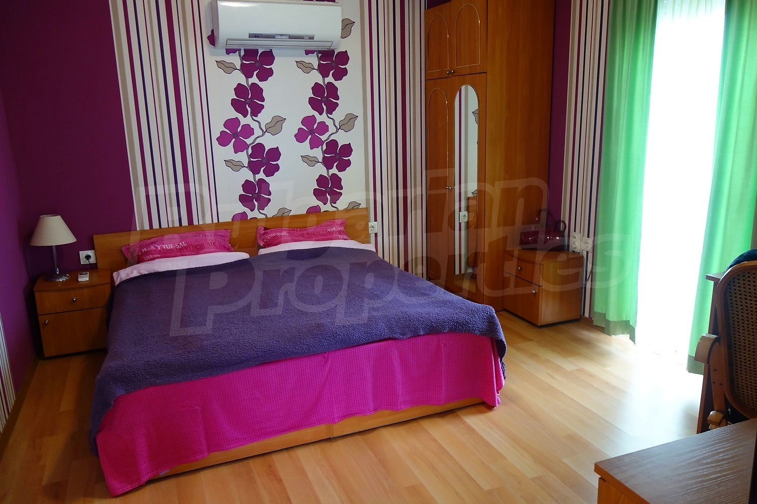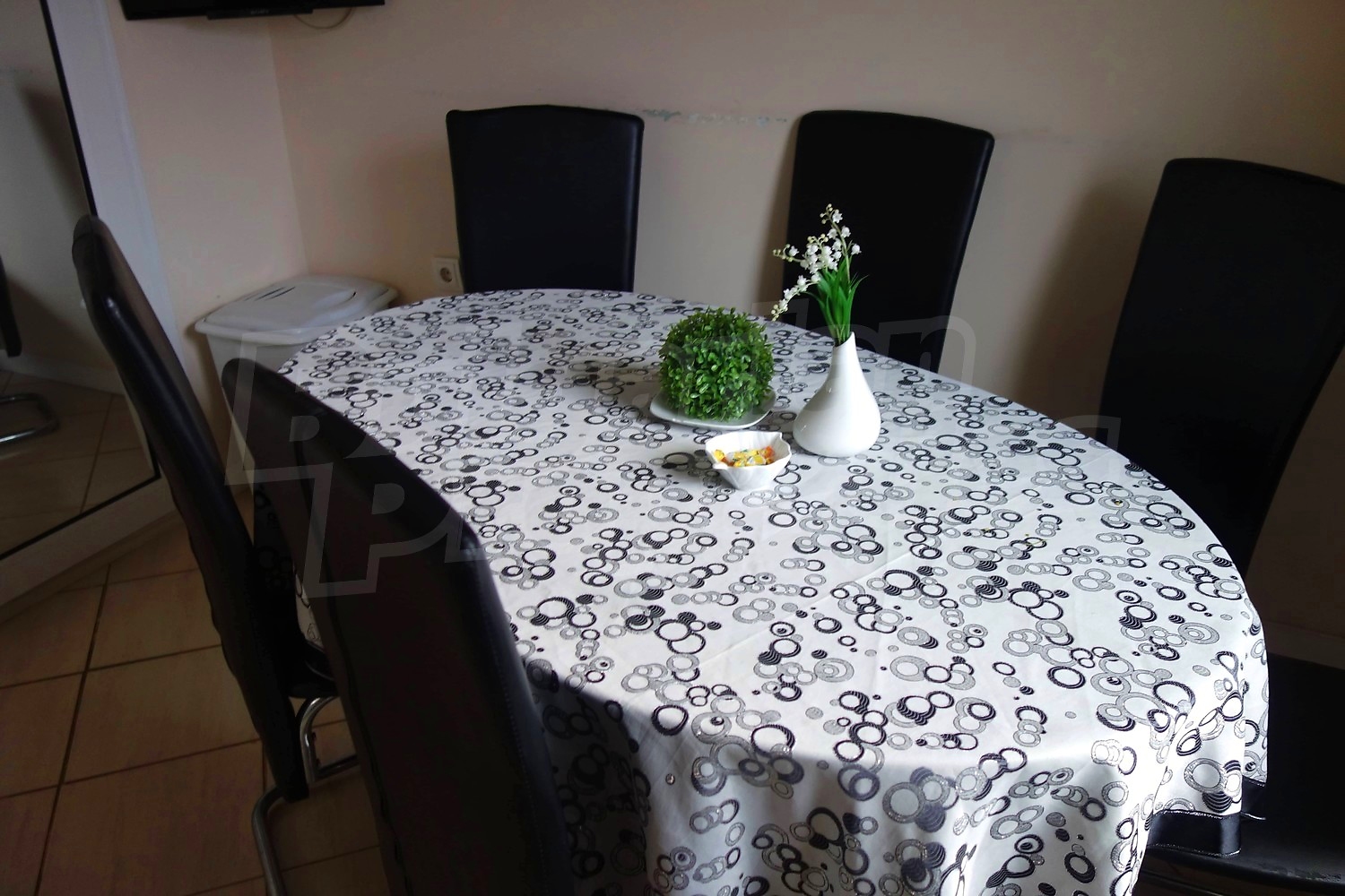 Дом площадью 152 м2. Предлагаемая недвижимость построена в 1997. Отопление кондиционером. Ламинированный пол, межкомнатные двери, окна пвх, стены покрашенные латексной краской и терракотовый пол имеются в предлагаемой недвижимости. Недвижимость включает следующую мебель и оборудование: бойлер электрический, ванна, вытяжка, духовка, кондиционер, мебель, оборудованная ванная комната, телевизор и холодильник. Из основных коммуникаций обеспечены электричество и вода. Ванная комната с туалетом, гараж, парковочное место, терраса, интернет и кабельное телевидение имеются в наличии среди прочих указанных характеристик предлагаемого объекта, что обеспечит дополнительные удобства для пользования. Виды на внутренний двор открываются с недвижимости, раскрывая часть красот живописной Болгарии.
