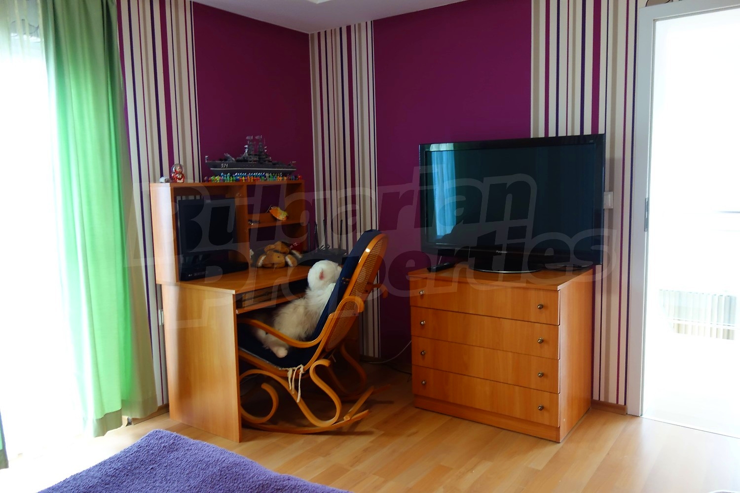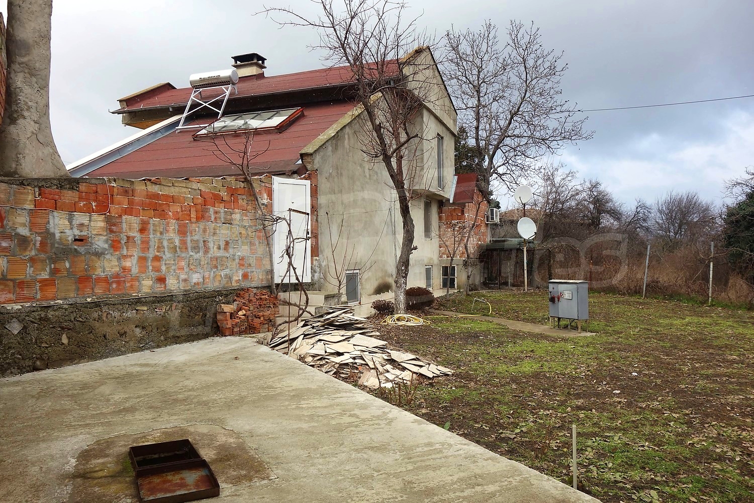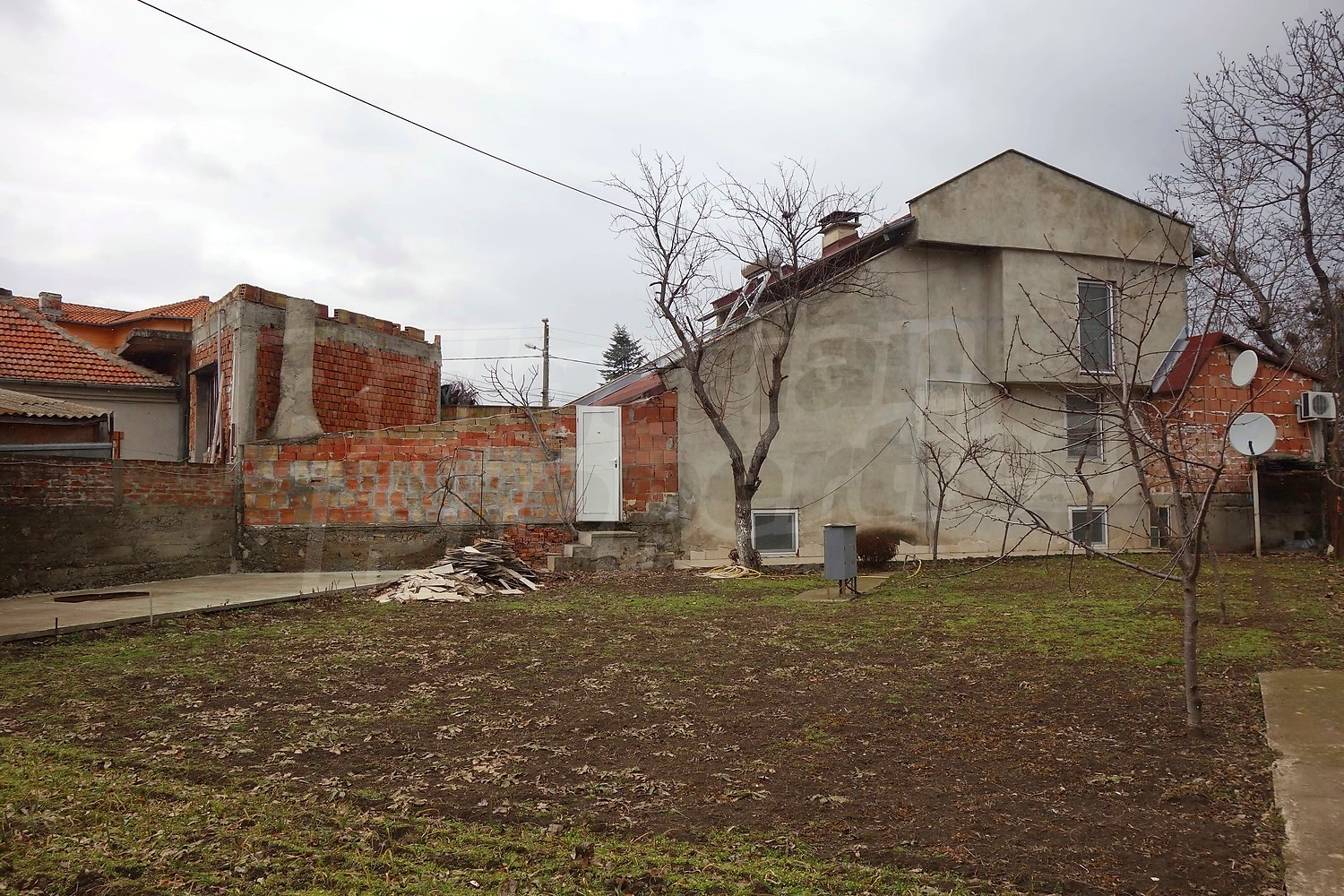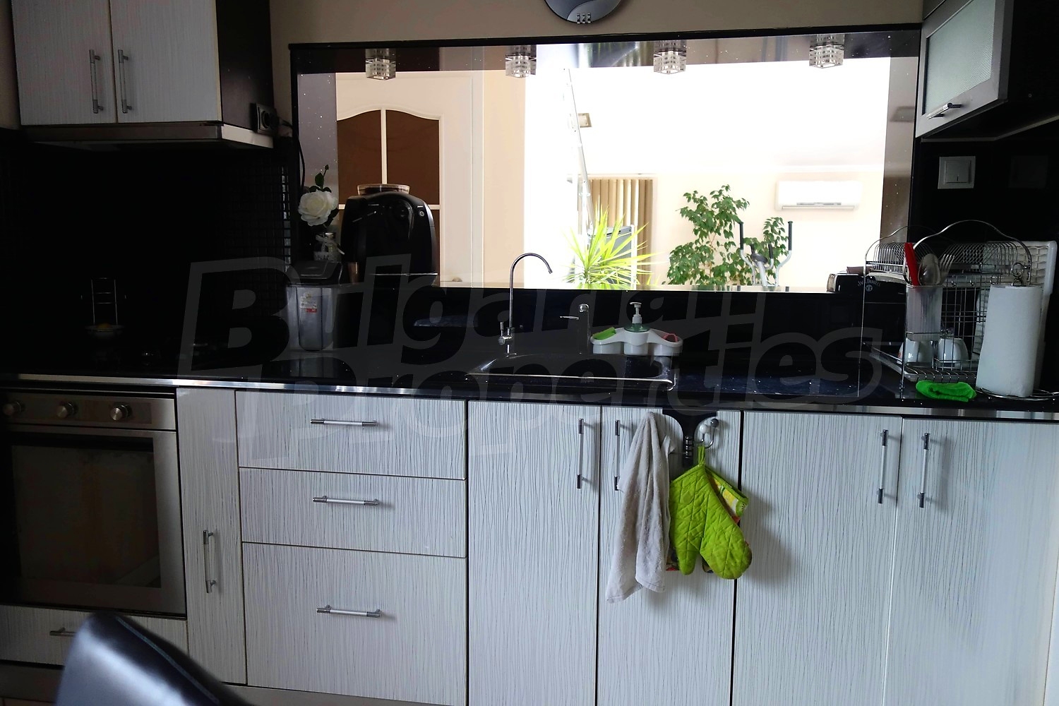 Дом площадью 152 м2. Предлагаемая недвижимость построена в 1997. Отопление кондиционером. Ламинированный пол, межкомнатные двери, окна пвх, стены покрашенные латексной краской и терракотовый пол имеются в предлагаемой недвижимости. Недвижимость включает следующую мебель и оборудование: бойлер электрический, ванна, вытяжка, духовка, кондиционер, мебель, оборудованная ванная комната, телевизор и холодильник. Из основных коммуникаций обеспечены электричество и вода. Ванная комната с туалетом, гараж, парковочное место, терраса, интернет и кабельное телевидение имеются в наличии среди прочих указанных характеристик предлагаемого объекта, что обеспечит дополнительные удобства для пользования. Виды на внутренний двор открываются с недвижимости, раскрывая часть красот живописной Болгарии.