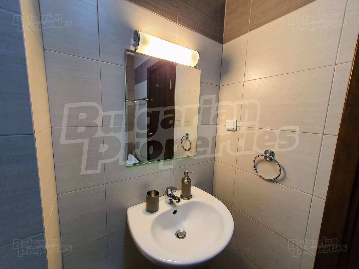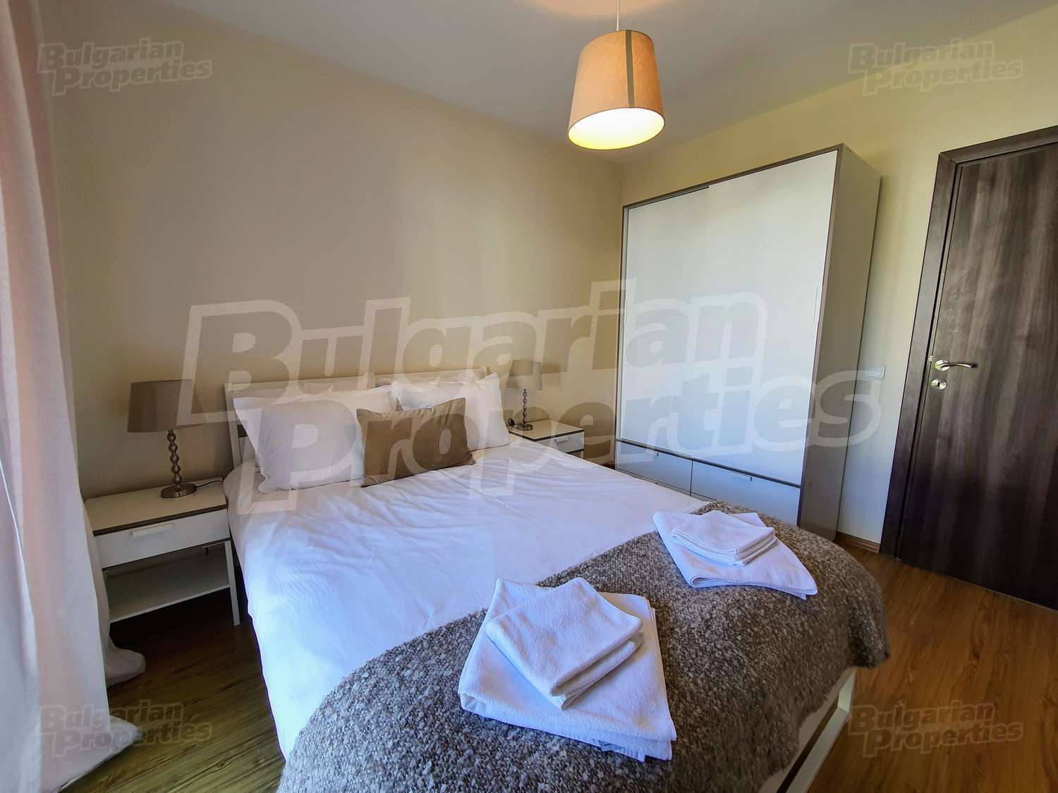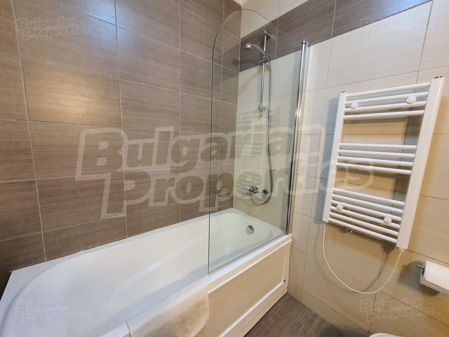 Двухкомнатная квартира площадью 65.37 кв.м. Отопление на электрических радиаторах, отопление на электричестве и отопление на электроконвекторах. Ламинированный пол, окна пвх, покрашенные стены и терракотовый пол имеются в предлагаемой недвижимости. Недвижимость включает следующую мебель и оснащение: бойлер электрический, ванна, вытяжка, духовка, мебель, оборудованная ванная комната, телевизор и холодильник. Из основных коммуникаций обеспечены электричество, вода и центральная канализация. Ванная комната с туалетом, парковка вне дороги, терраса, бассейн, комплекс закрытого типа, консьерж, лифт, общие части с отделкой люкс, заасфальтированная дорога, интернет, интернет Wi-Fi и кабельное телевидение имеются в наличии среди прочих перечисленных характеристик предлагаемого объекта, что обеспечит дополнительные удобства для пользования. Виды на горы и виды на лес открываются с недвижимости, раскрывая часть красот живописной Болгарии.