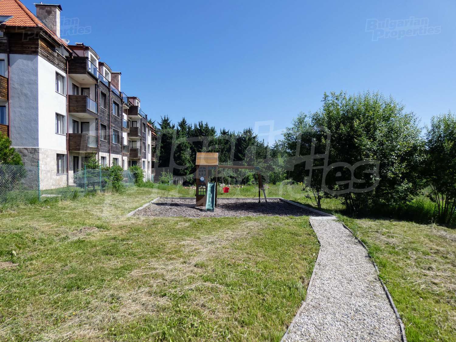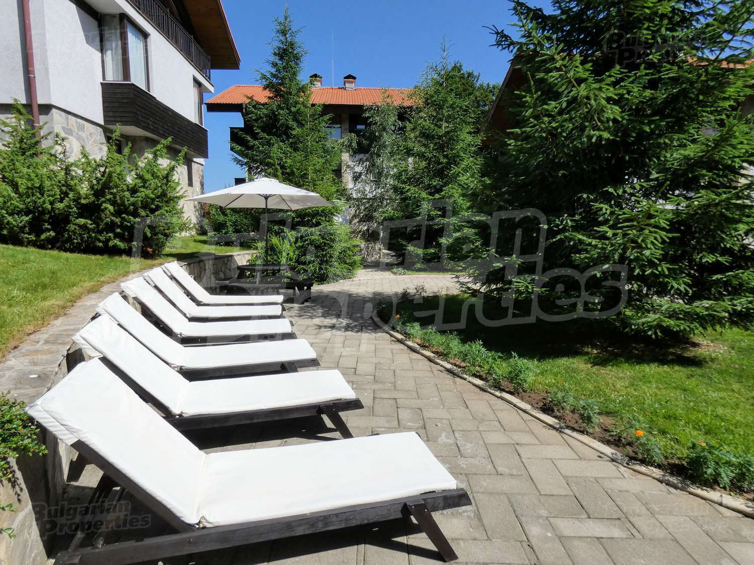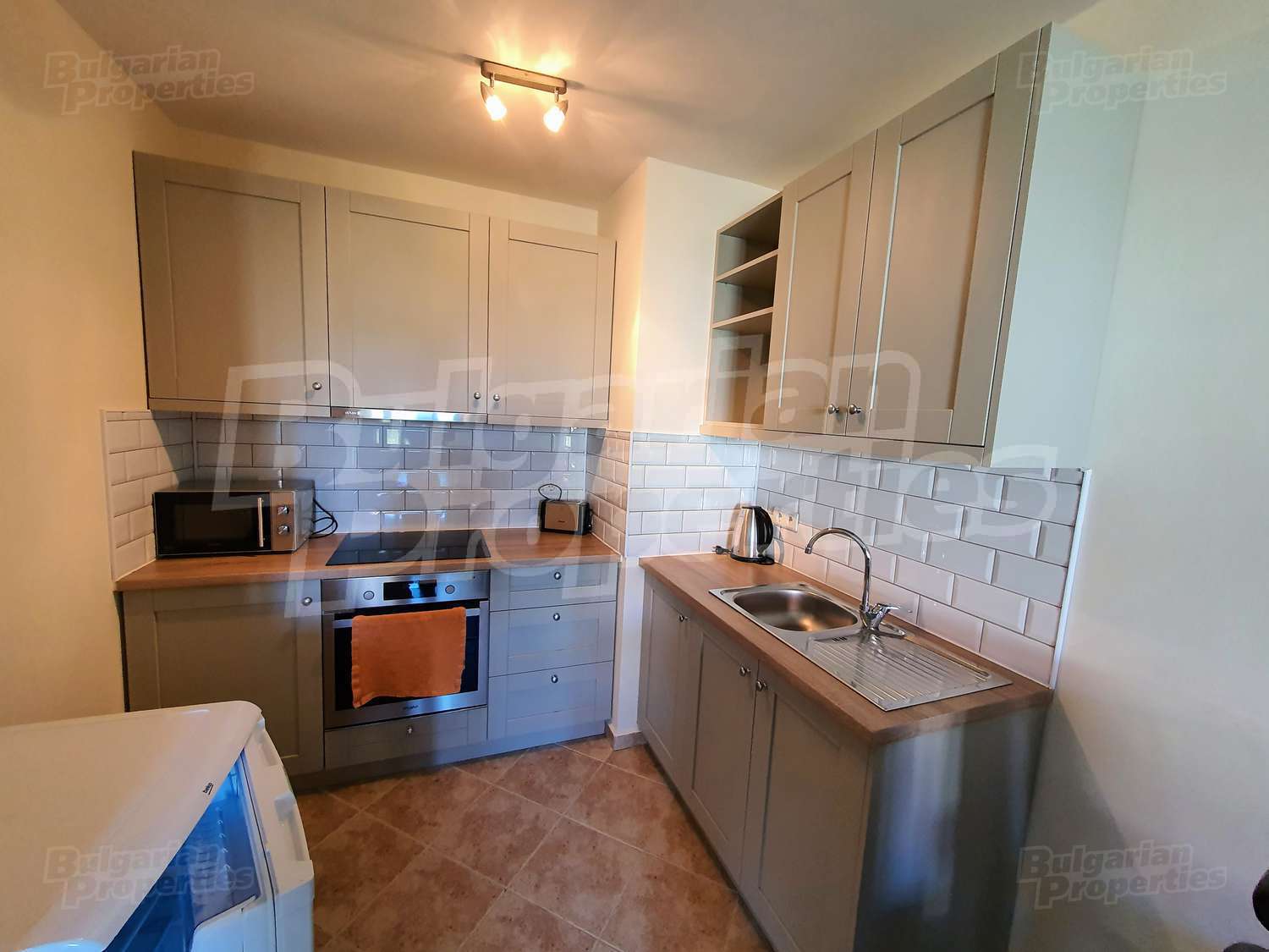 Двухкомнатная квартира площадью 65.37 кв.м. Отопление на электрических радиаторах, отопление на электричестве и отопление на электроконвекторах. Ламинированный пол, окна пвх, покрашенные стены и терракотовый пол имеются в предлагаемой недвижимости. Недвижимость включает следующую мебель и оснащение: бойлер электрический, ванна, вытяжка, духовка, мебель, оборудованная ванная комната, телевизор и холодильник. Из основных коммуникаций обеспечены электричество, вода и центральная канализация. Ванная комната с туалетом, парковка вне дороги, терраса, бассейн, комплекс закрытого типа, консьерж, лифт, общие части с отделкой люкс, заасфальтированная дорога, интернет, интернет Wi-Fi и кабельное телевидение имеются в наличии среди прочих перечисленных характеристик предлагаемого объекта, что обеспечит дополнительные удобства для пользования. Виды на горы и виды на лес открываются с недвижимости, раскрывая часть красот живописной Болгарии.