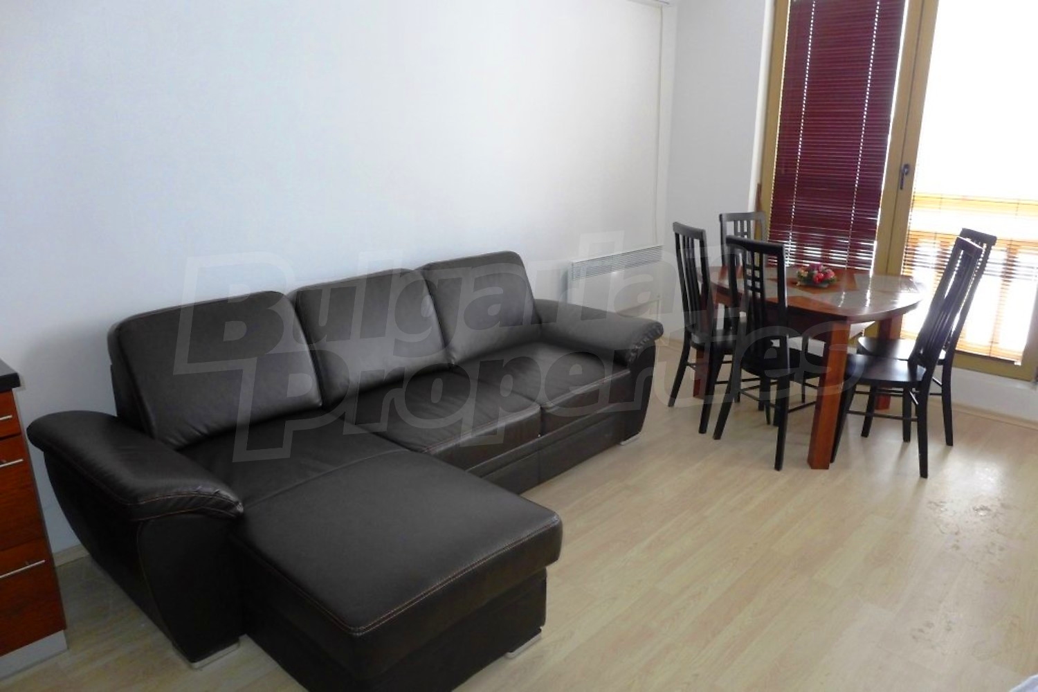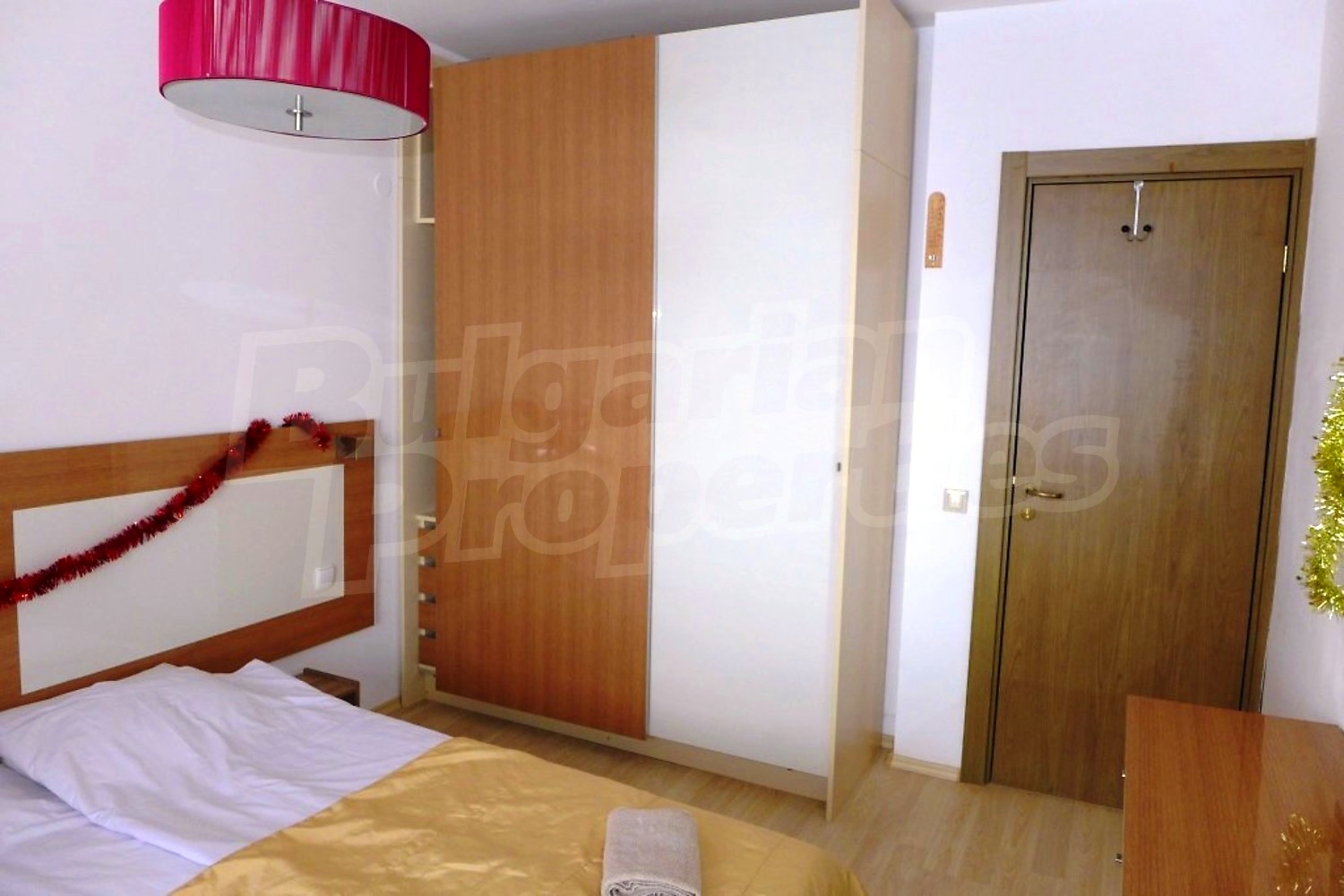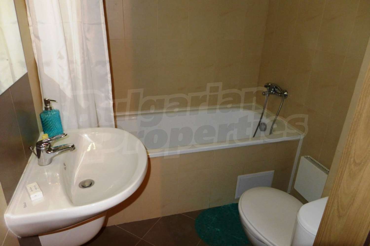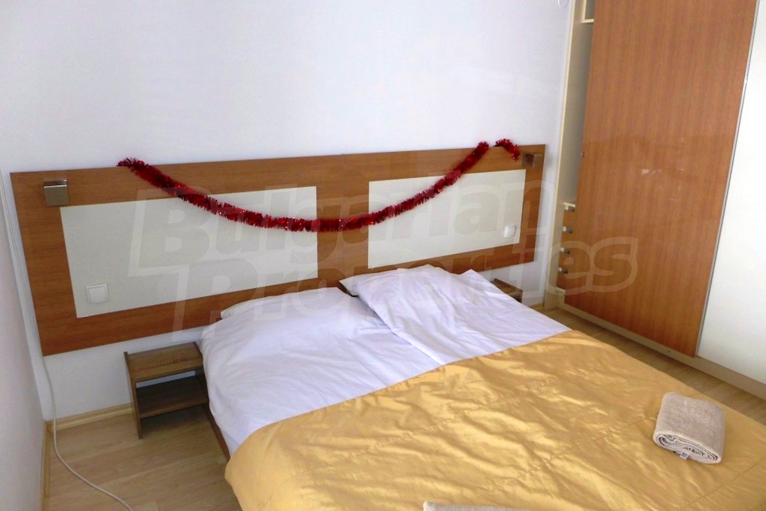 Двухкомнатная квартира площадью 62.36 м2. Предлагаемая недвижимость построена в 2006. Камин, отопление кондиционером и отопление на электрических радиаторах. Обеспечено кондиционирование следующего типа: стандартные кондиционеры. Внешняя изоляция, ламинированный пол, межкомнатные двери, окна пвх, стены покрашенные латексной краской и терракотовый пол имеются в предлагаемой недвижимости. Недвижимость включает следующую мебель и оборудование: ванна, вытяжка, духовка, кондиционер, мебель, оборудованная ванная комната, телевизор и холодильник. Из основных коммуникаций обеспечены электричество, вода и канализация. Ванная комната с туалетом, парковка вне дороги, стоянка, терраса, комплекс закрытого типа, лифт, заасфальтированная дорога, интернет, кабельное телевидение и телефон имеются в наличии среди прочих обозначенных характеристик предлагаемого объекта, что обеспечит дополнительный комфорт для пользования. Виды на внутренний двор и виды на горы открываются с недвижимости, раскрывая часть красот живописной Болгарии.