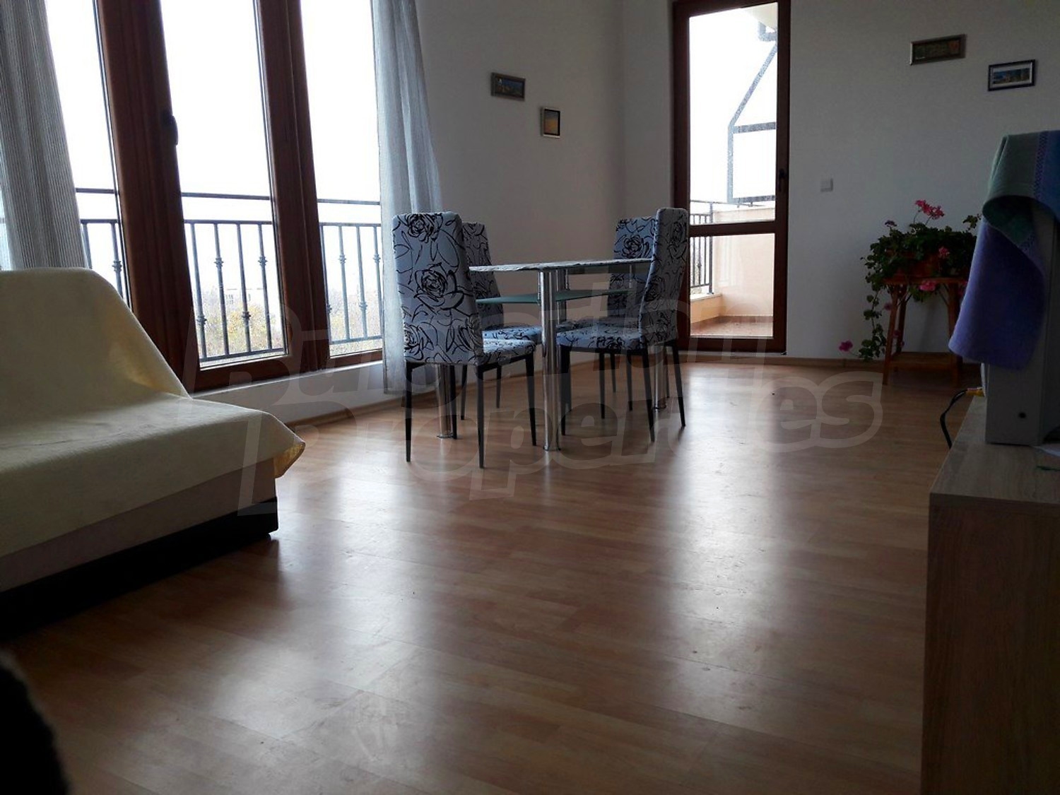 Недвижимость продается полностью меблированная. Кухня с кухонными шкафами, керамическая плита, вытяжка, стиральная машина, холодильник, обеденный стол со стульями, мягкая мебель. Спальня с большой кроватью и гардеробом. Полностью оборудованная ванная комната.