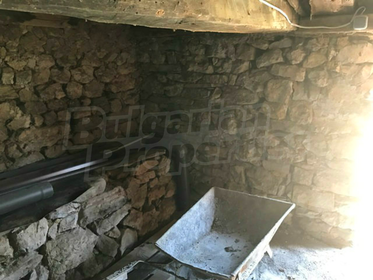 Пространство вокруг дома окружено высокой каменной стеной, а большие деревянные ворота ведут во внутреннюю часть участка, где есть парковочное место для нескольких автомобилей. Двор ухожен с цветами и фруктовыми деревьями, а из окон открывается невероятно красивая панорама на вершины Балканских гор.