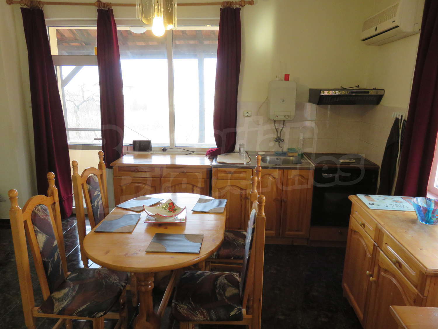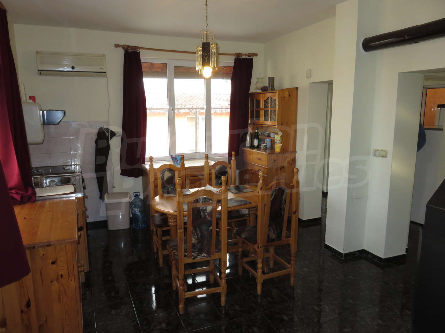 Дом площадью 60 кв.м. Предлагаемая недвижимость построена в 1980. Камин и отопление кондиционером. Обеспечено кондиционирование следующего типа: стандартные кондиционеры. Окна пвх, стены покрашенные латексной краской и терракотовый пол имеются в предлагаемой недвижимости. Недвижимость включает следующую меблировку и оснащение: бойлер электрический, вытяжка, духовка, кондиционер, меблировку, оборудованная ванная комната, стиральная машина и холодильник. Из основных коммуникаций обеспечены электричество, вода и септическая яма. Веранда, внутренний туалет, внутренняя ванная, парковка вне дороги, терраса и заасфальтированная дорога имеются в наличии среди прочих упомянутых характеристик предлагаемого объекта, что обеспечит дополнительные удобства для пользования. Виды на внутренний двор открываются с недвижимости, раскрывая часть красот живописной Болгарии.