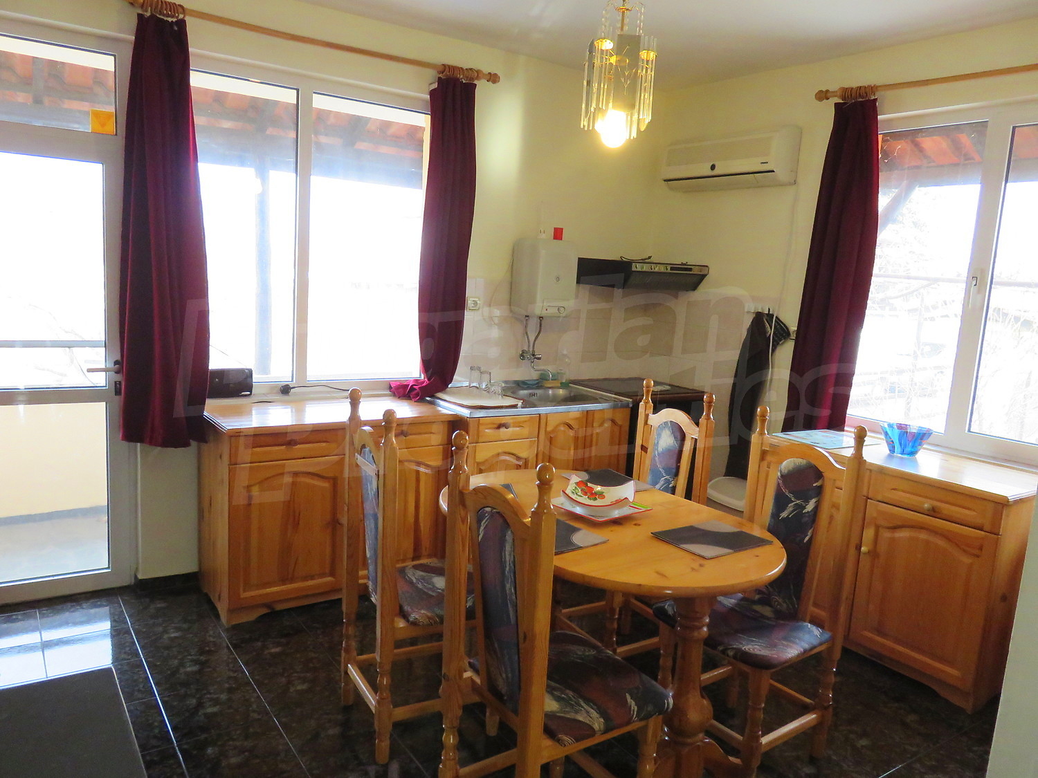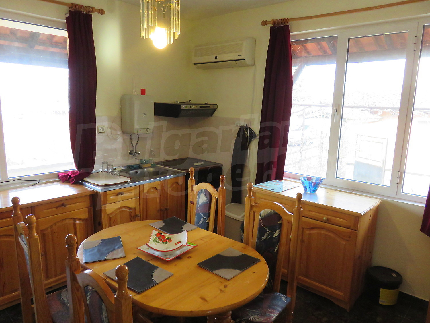 Дом площадью 60 кв.м. Предлагаемая недвижимость построена в 1980. Камин и отопление кондиционером. Обеспечено кондиционирование следующего типа: стандартные кондиционеры. Окна пвх, стены покрашенные латексной краской и терракотовый пол имеются в предлагаемой недвижимости. Недвижимость включает следующую меблировку и оснащение: бойлер электрический, вытяжка, духовка, кондиционер, меблировку, оборудованная ванная комната, стиральная машина и холодильник. Из основных коммуникаций обеспечены электричество, вода и септическая яма. Веранда, внутренний туалет, внутренняя ванная, парковка вне дороги, терраса и заасфальтированная дорога имеются в наличии среди прочих упомянутых характеристик предлагаемого объекта, что обеспечит дополнительные удобства для пользования. Виды на внутренний двор открываются с недвижимости, раскрывая часть красот живописной Болгарии.