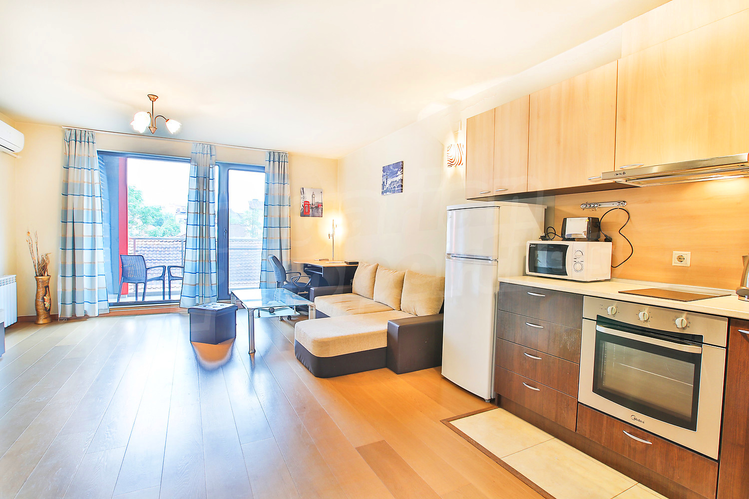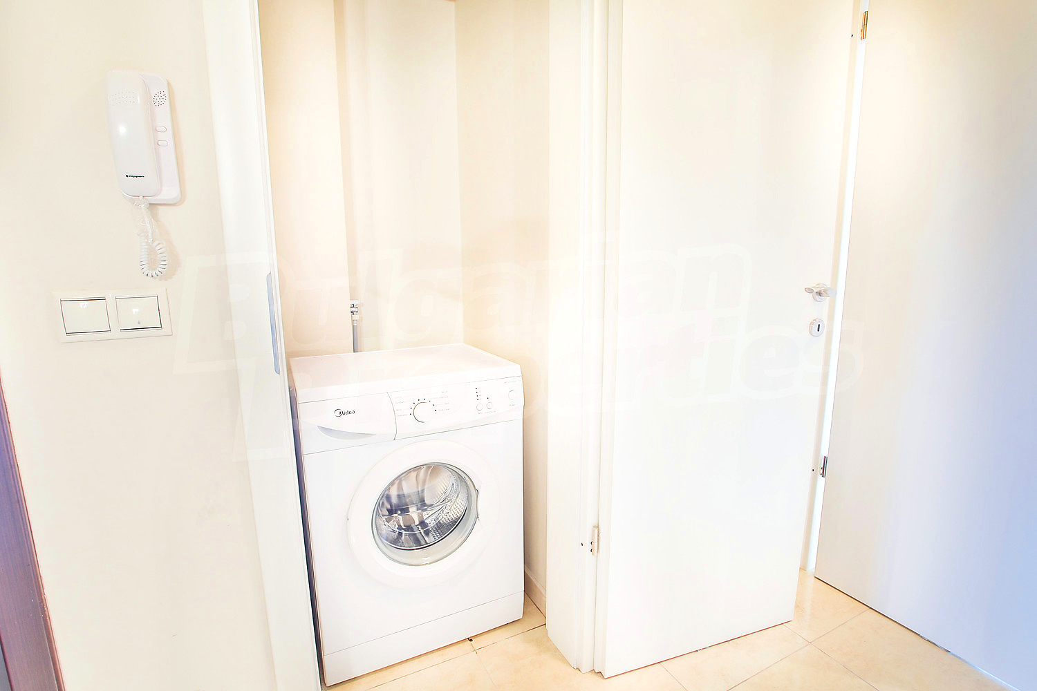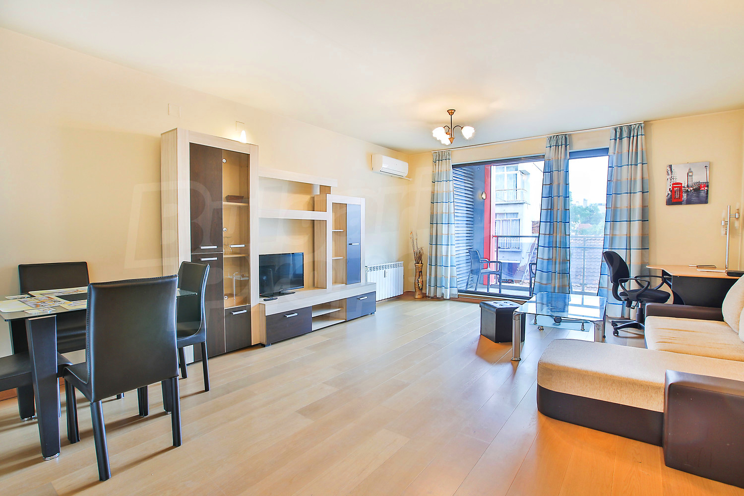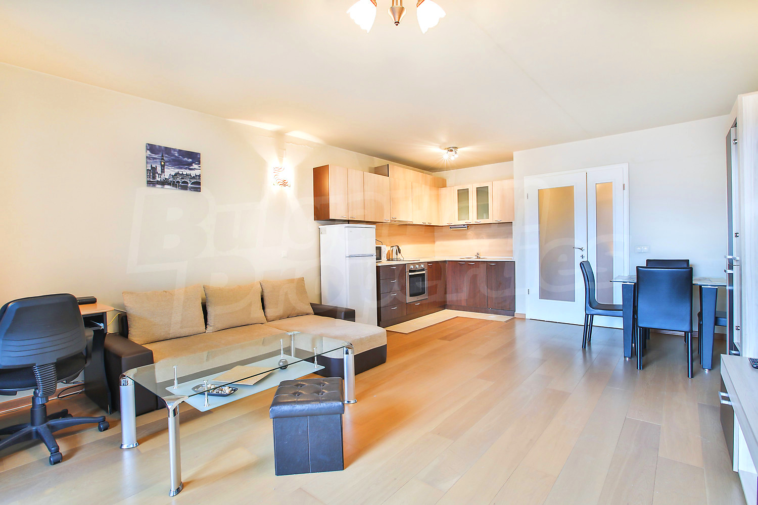 Двухкомнатная квартира площадью 100 м2. Предлагаемая недвижимость построена в 2011. Отопление кондиционером и центральное отопление. Ламинированный пол, межкомнатные двери, окна пвх, стены покрашенные латексной краской и терракотовый пол имеются в предлагаемой недвижимости. Недвижимость включает следующую мебель и оборудование: ванна, вытяжка, духовка, кондиционер, мебель, оборудованная ванная комната, стиральная машина, телевизор и холодильник. Из основных коммуникаций обеспечены электричество и центральное водоснабжение. Балконы, ванная комната с туалетом, лифт, общие части с отделкой люкс, заасфальтированная дорога, интернет, интернет Wi-Fi и кабельное телевидение имеются в наличии среди прочих обозначенных характеристик предлагаемого объекта, что обеспечит дополнительный комфорт для пользования. Виды на город открываются с недвижимости, раскрывая часть красот живописной Болгарии.
