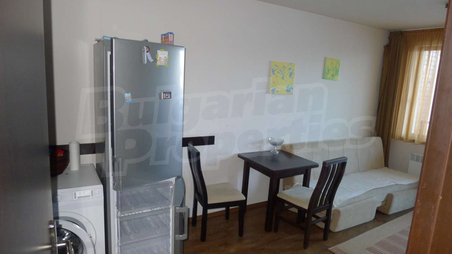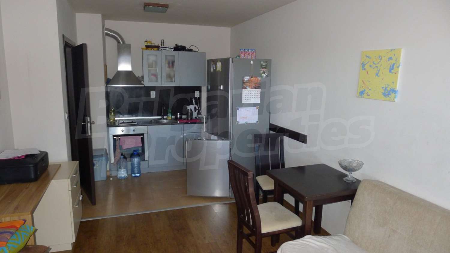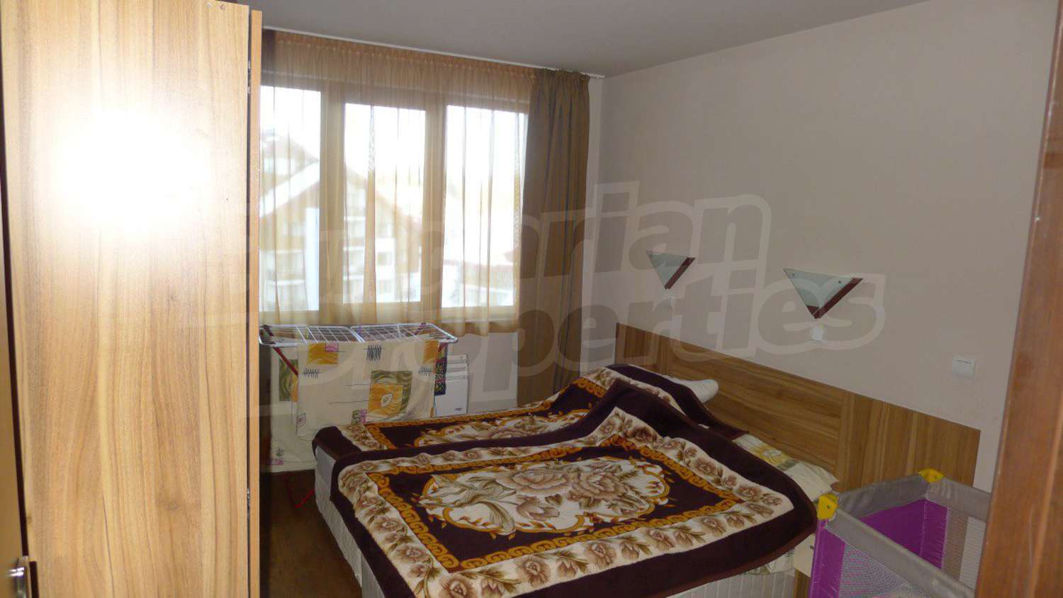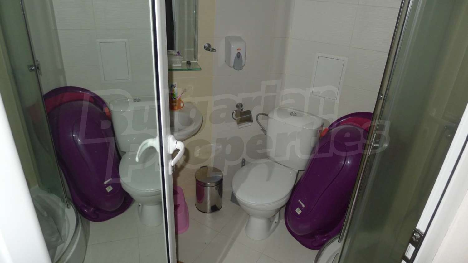 Двухкомнатная квартира площадью 60.14 кв. метров. Отопление на электрических радиаторах и отопление на электроконвекторах. Внешняя изоляция, ламинированный пол, межкомнатные двери, окна пвх, стены покрашенные латексной краской и терракотовый пол имеются в предлагаемой недвижимости. Недвижимость включает следующую мебель и оснащение: бойлер электрический, вытяжка, духовка, душевая, мебель, оборудованная ванная комната, стиральная машина, телевизор и холодильник. Из основных коммуникаций обеспечены электричество, центральное водоснабжение и центральная канализация. Ванная комната с туалетом, парковка вне дороги, стоянка, терраса, бассейн, джакузи, комплекс закрытого типа, консьерж, лифт, общие части с отделкой люкс, сауна, тренажерный зал, заасфальтированная дорога, интернет, интернет Wi-Fi и кабельное телевидение имеются в наличии среди прочих перечисленных характеристик предлагаемого объекта, что обеспечит дополнительные удобства для пользования. Виды на внутренний двор и виды на лес открываются с недвижимости, раскрывая часть красот живописной Болгарии.