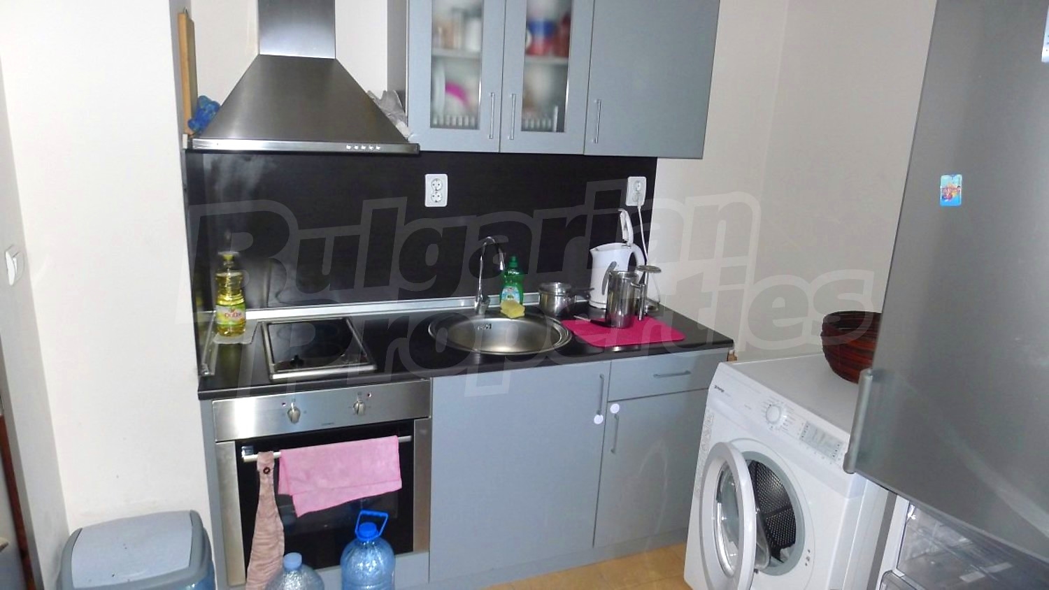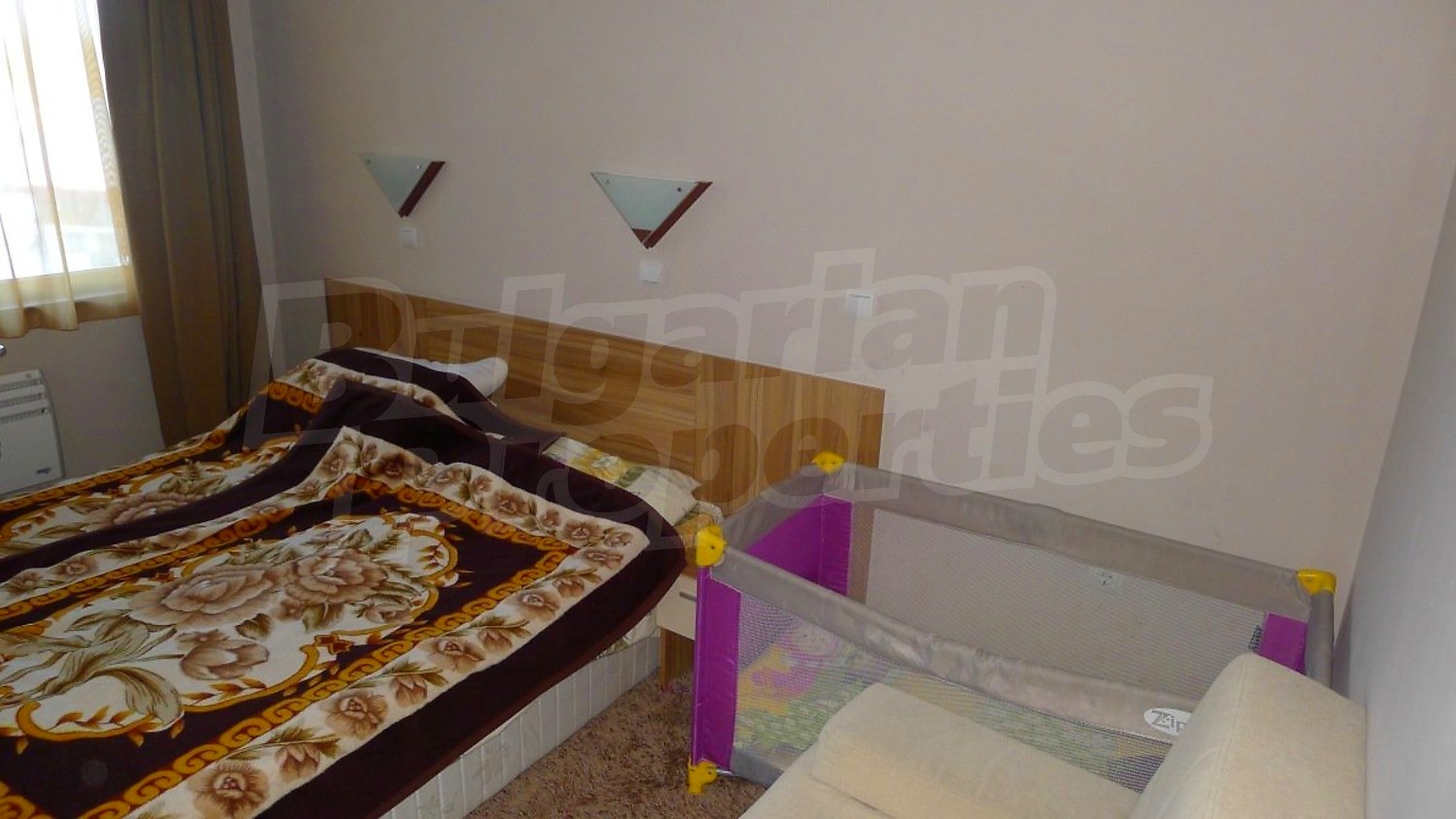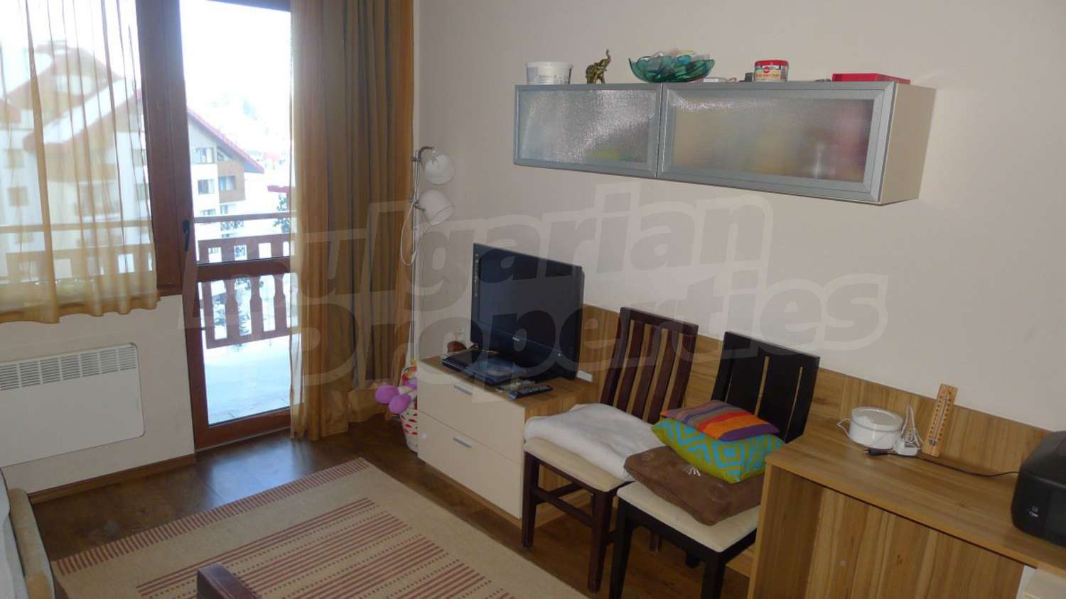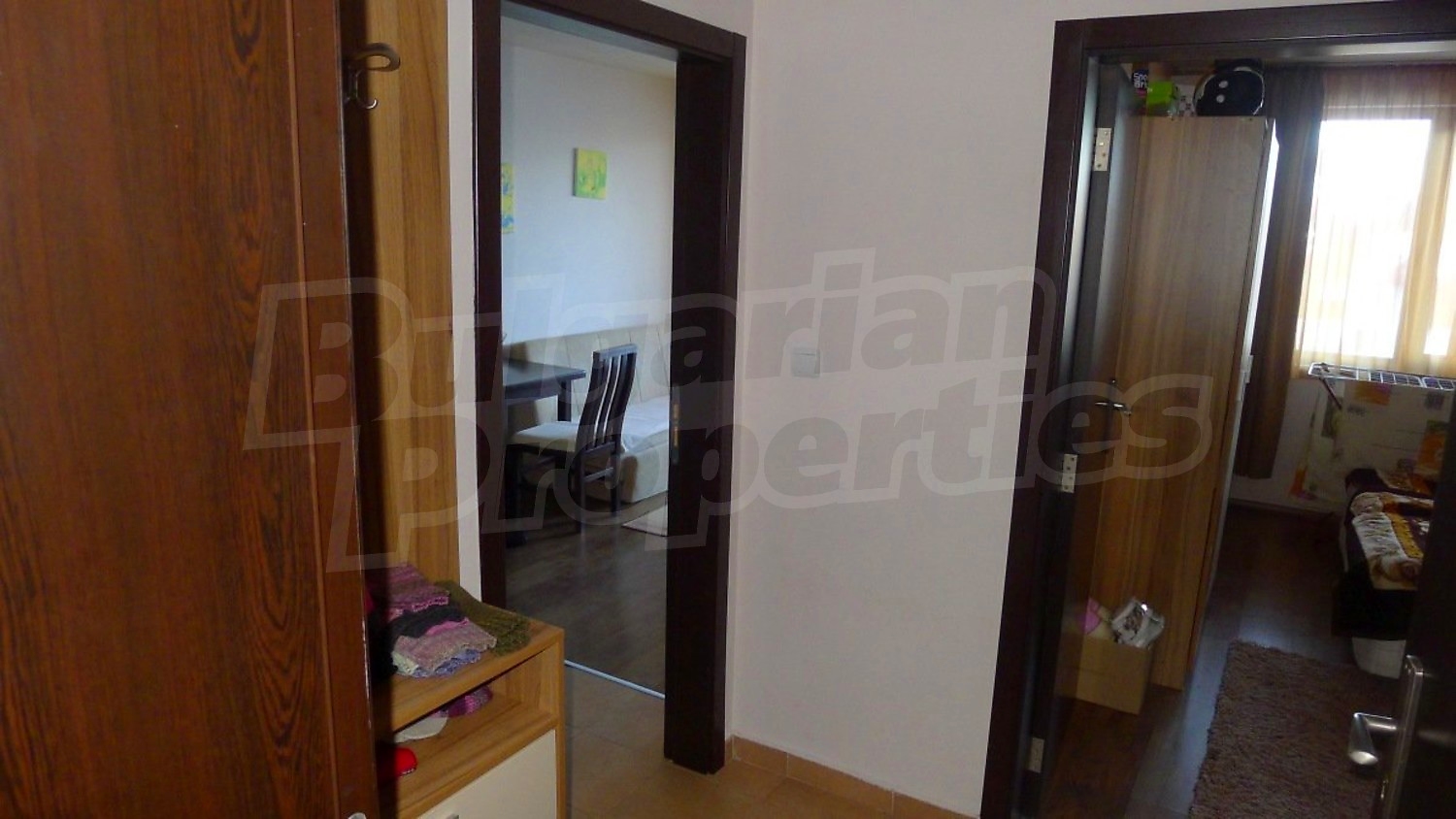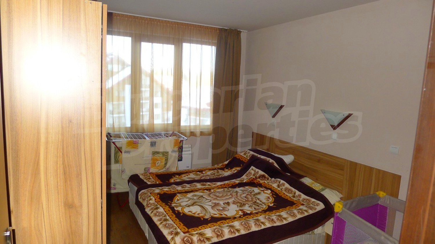 Двухкомнатная квартира площадью 60.14 кв. метров. Отопление на электрических радиаторах и отопление на электроконвекторах. Внешняя изоляция, ламинированный пол, межкомнатные двери, окна пвх, стены покрашенные латексной краской и терракотовый пол имеются в предлагаемой недвижимости. Недвижимость включает следующую мебель и оснащение: бойлер электрический, вытяжка, духовка, душевая, мебель, оборудованная ванная комната, стиральная машина, телевизор и холодильник. Из основных коммуникаций обеспечены электричество, центральное водоснабжение и центральная канализация. Ванная комната с туалетом, парковка вне дороги, стоянка, терраса, бассейн, джакузи, комплекс закрытого типа, консьерж, лифт, общие части с отделкой люкс, сауна, тренажерный зал, заасфальтированная дорога, интернет, интернет Wi-Fi и кабельное телевидение имеются в наличии среди прочих перечисленных характеристик предлагаемого объекта, что обеспечит дополнительные удобства для пользования. Виды на внутренний двор и виды на лес открываются с недвижимости, раскрывая часть красот живописной Болгарии.