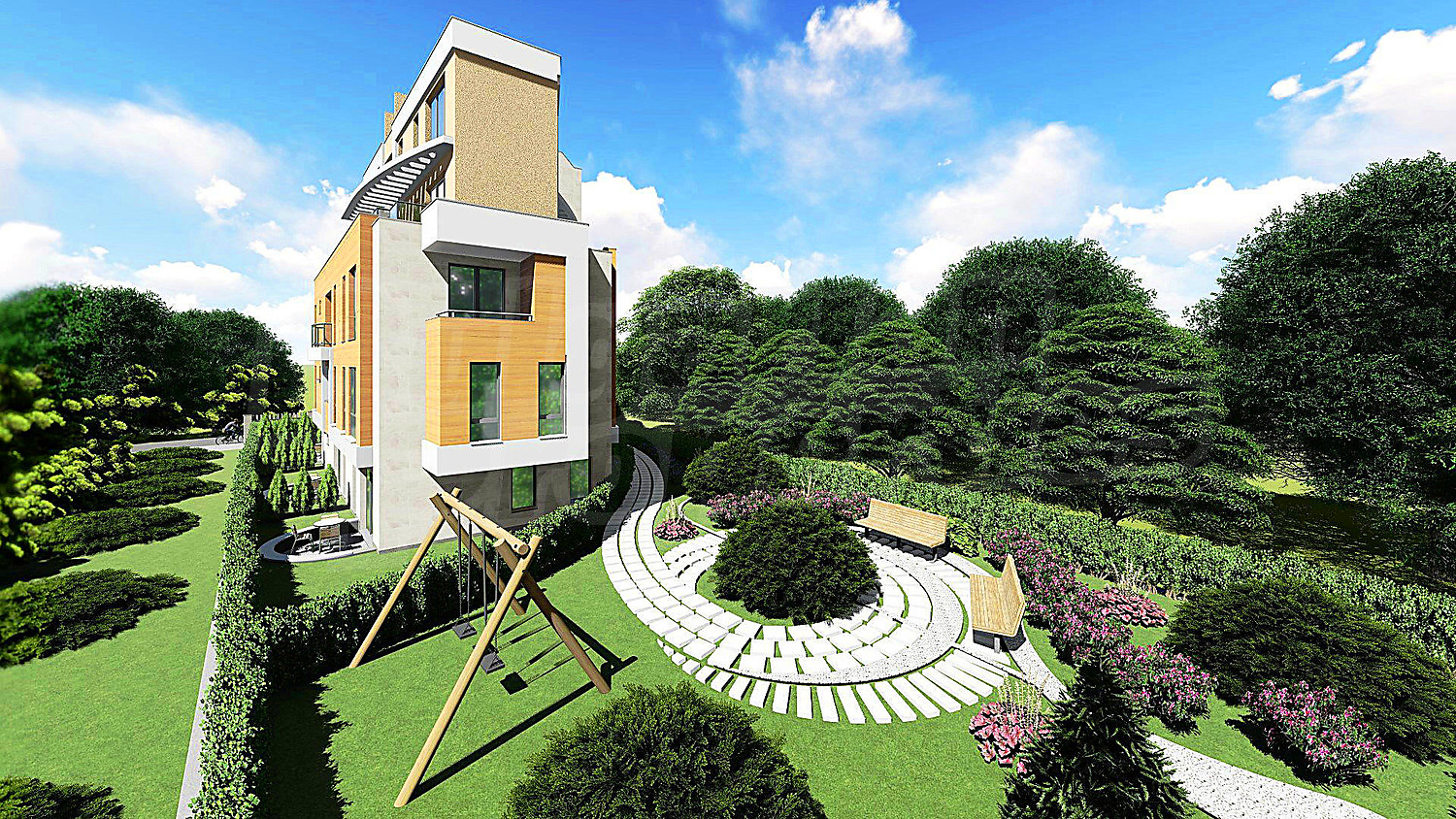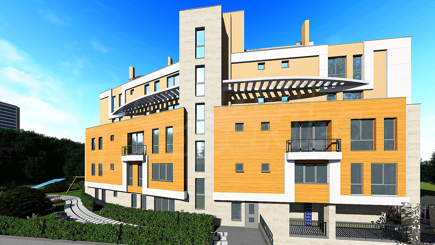 Здание должно быть закрытого типа и, следовательно, будет иметь контроль доступа, ограждение и видеонаблюдение со всех сторон, чтобы предотвратить доступ посторонних лиц и обеспечить необходимый комфорт. Предусмотрен ландшафтный дизайн по проекту с детскими аттракционами, перголами, скамейками и местами для отдыха.