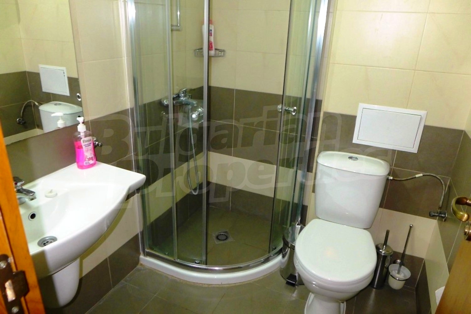 Двухкомнатная квартира площадью 66 кв.м. Предлагаемая недвижимость построена в 2008. Отопление на электрических радиаторах. Ламинированный пол, межкомнатные двери, окна пвх, стены покрашенные латексной краской и терракотовый пол имеются в предлагаемой недвижимости. Недвижимость включает следующую меблировку и оснащение: ванна, встроенная кухня, вытяжка, духовка, душевая, меблировку, оборудованная ванная комната, телевизор и холодильник. Из основных коммуникаций обеспечены электричество, вода и центральная канализация. Внутренний туалет, внутренняя ванная, парковка вне дороги, терраса, бассейн, консьерж, лифт, общие части с отделкой люкс, сауна, тренажерный зал, заасфальтированная дорога, интернет, интернет Wi-Fi и кабельное телевидение имеются в наличии среди прочих обозначенных характеристик предлагаемого объекта, что обеспечит дополнительные удобства для пользования. Виды на внутренний двор открываются с недвижимости, раскрывая часть красот живописной Болгарии.
