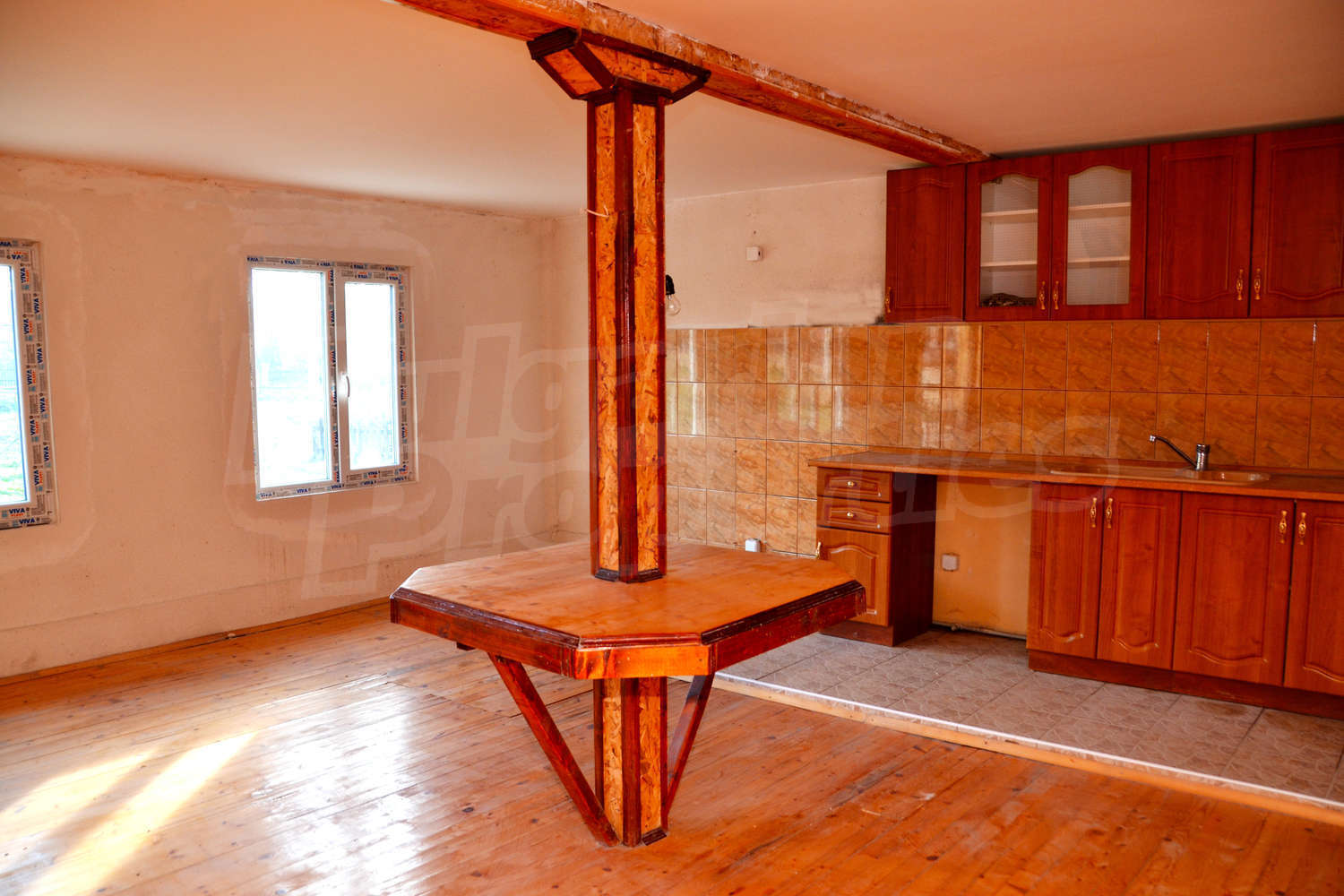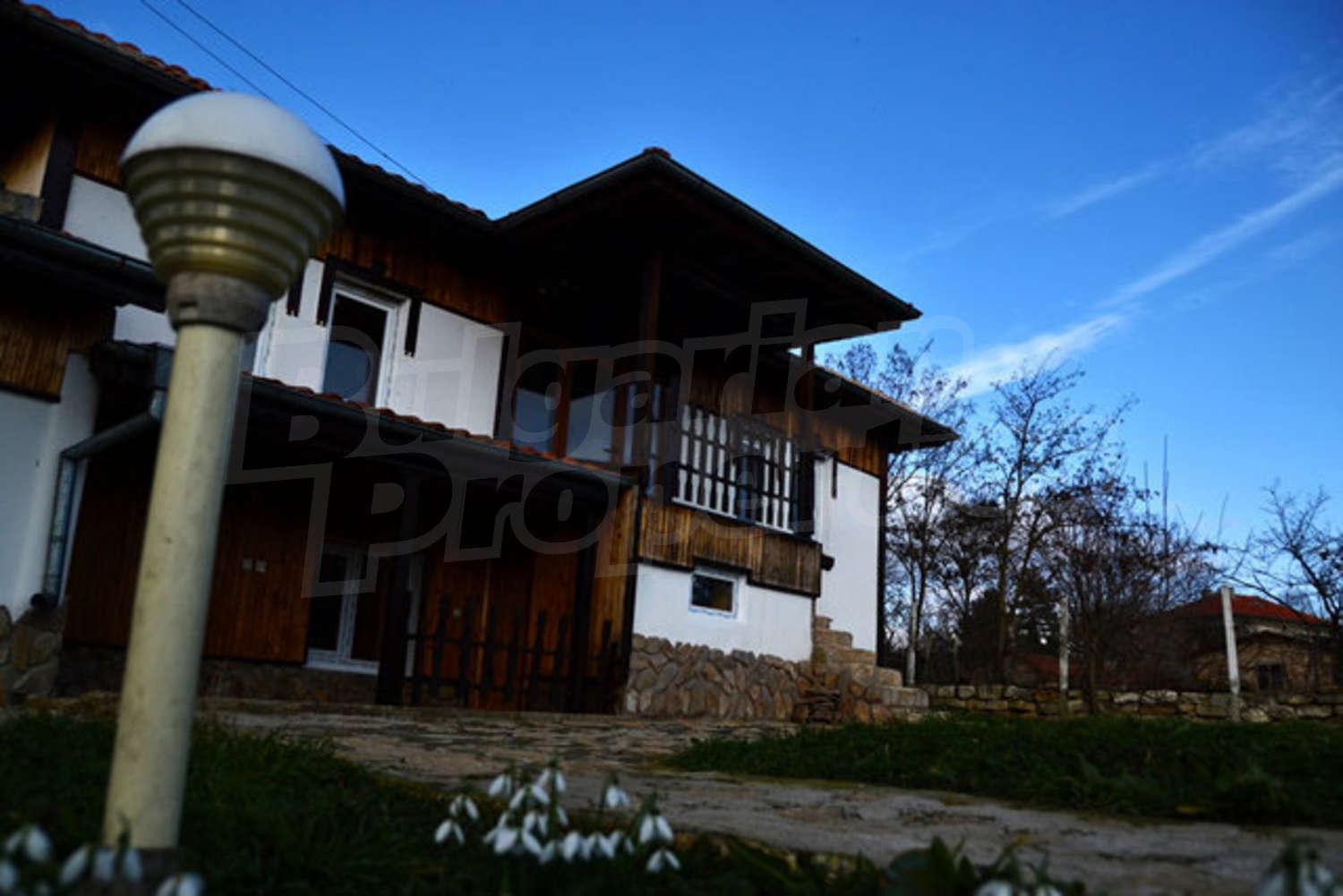 Дом площадью 250 кв.м. Внешняя изоляция, межкомнатные двери, окна пвх и паркетный пол имеются в предлагаемой недвижимости. Недвижимость включает следующую мебель и оборудование: оборудованная ванная комната. Из основных коммуникаций обеспечены электричество, вода и септическая яма. Балконы, веранда, внутренний туалет, внутренняя ванная, чердачное помещение и комплекс закрытого типа имеются в наличии среди прочих указанных характеристик предлагаемого объекта, что обеспечит дополнительный комфорт для пользования. Виды на поле, виды на село и виды на холмы открываются с недвижимости, раскрывая часть красот живописной Болгарии.