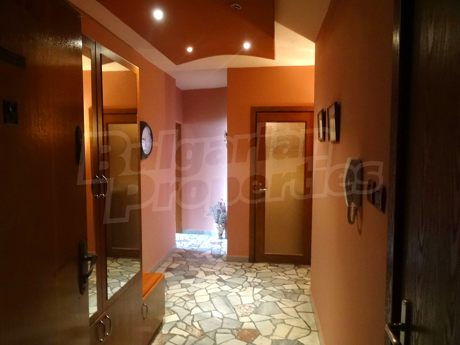 Трехкомнатная квартира площадью 85 м2. Отопление кондиционером. Ламинированный пол, окна пвх, паркетный пол, покрашенные стены и терракотовый пол имеются в предлагаемой недвижимости. Недвижимость включает следующую мебель и оснащение: бойлер электрический, вытяжка, духовка, душевая, кондиционер, мебель, оборудованная ванная комната и холодильник. Из основных коммуникаций обеспечены электричество, вода и канализация. Ванная комната, подвал, терраса, туалет, интернет, кабельное телевидение и телефон имеются в наличии среди прочих упомянутых характеристик предлагаемого объекта, что обеспечит дополнительные удобства для пользования. Виды на населенный пункт открываются с недвижимости, раскрывая часть красот живописной Болгарии.
