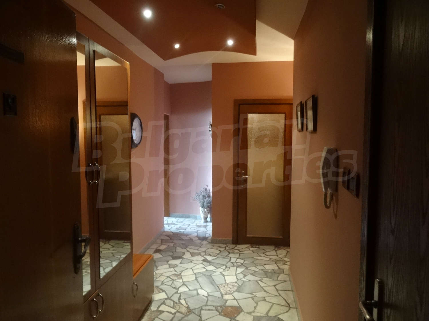 Трехкомнатная квартира площадью 85 м2. Отопление кондиционером. Ламинированный пол, окна пвх, паркетный пол, покрашенные стены и терракотовый пол имеются в предлагаемой недвижимости. Недвижимость включает следующую мебель и оснащение: бойлер электрический, вытяжка, духовка, душевая, кондиционер, мебель, оборудованная ванная комната и холодильник. Из основных коммуникаций обеспечены электричество, вода и канализация. Ванная комната, подвал, терраса, туалет, интернет, кабельное телевидение и телефон имеются в наличии среди прочих упомянутых характеристик предлагаемого объекта, что обеспечит дополнительные удобства для пользования. Виды на населенный пункт открываются с недвижимости, раскрывая часть красот живописной Болгарии.