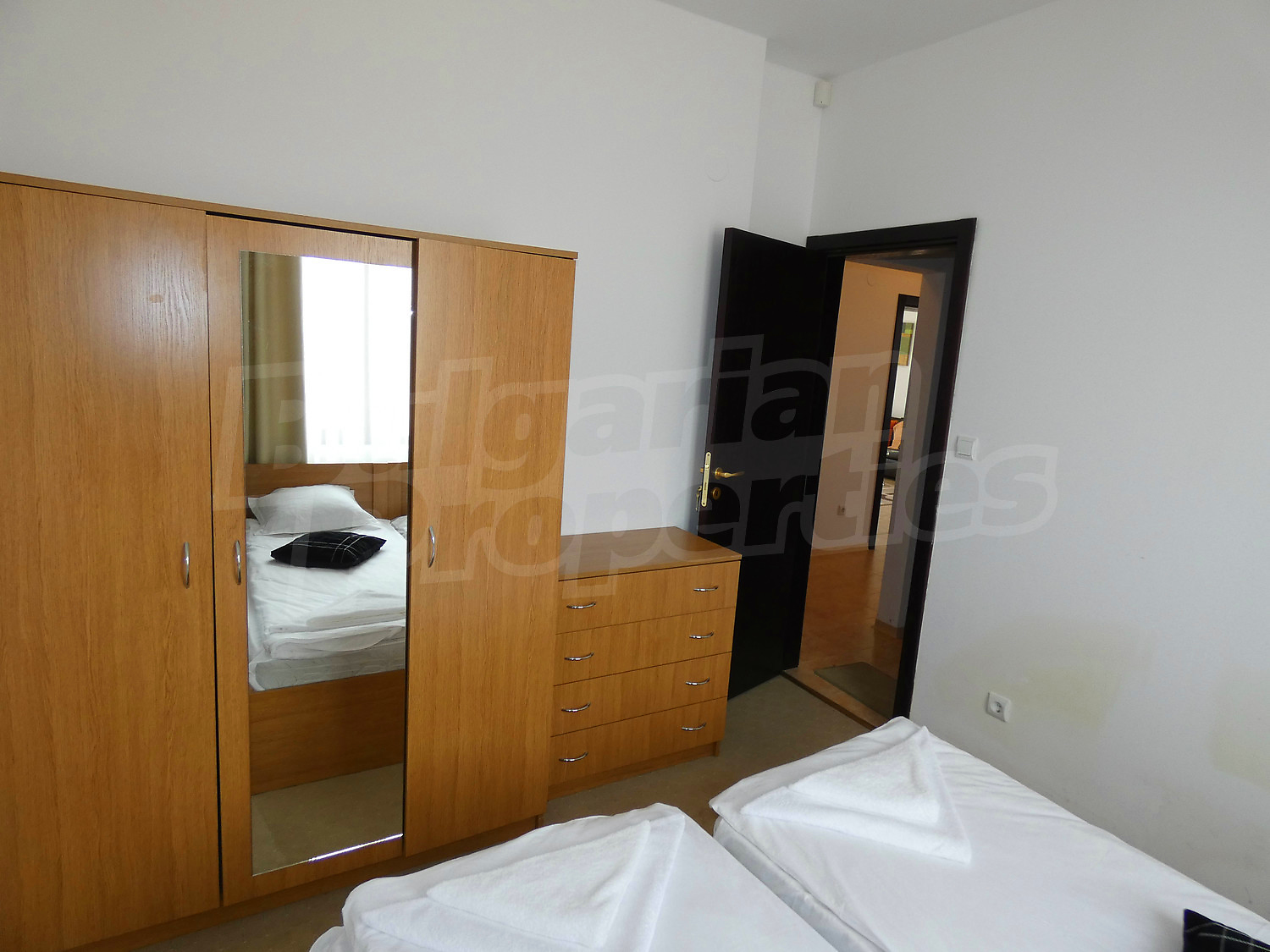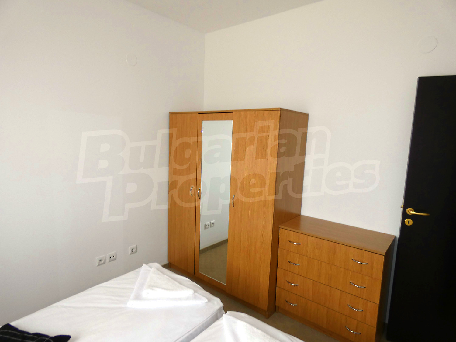 • Спальня 2: двуспальная кровать, 2 прикроватные тумбочки с ночниками, шкаф с зеркалом, комод