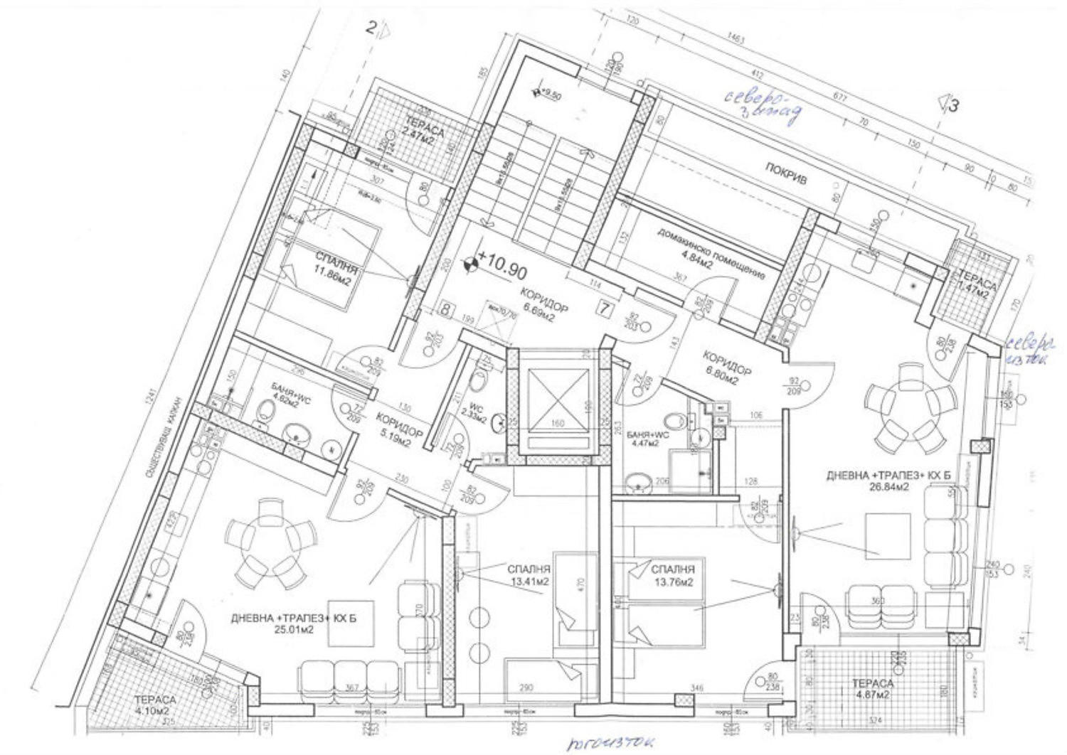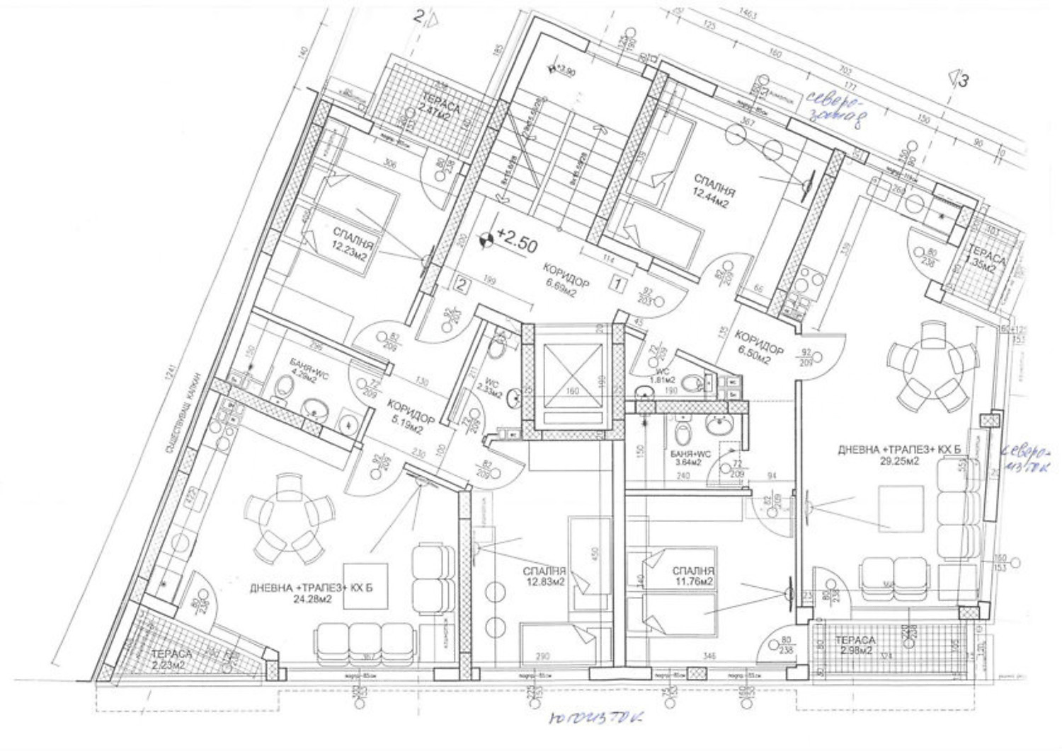 98.34 м2 (жилая площадь: 79.05 м2 плюс общие части: 19.29 м2) еще