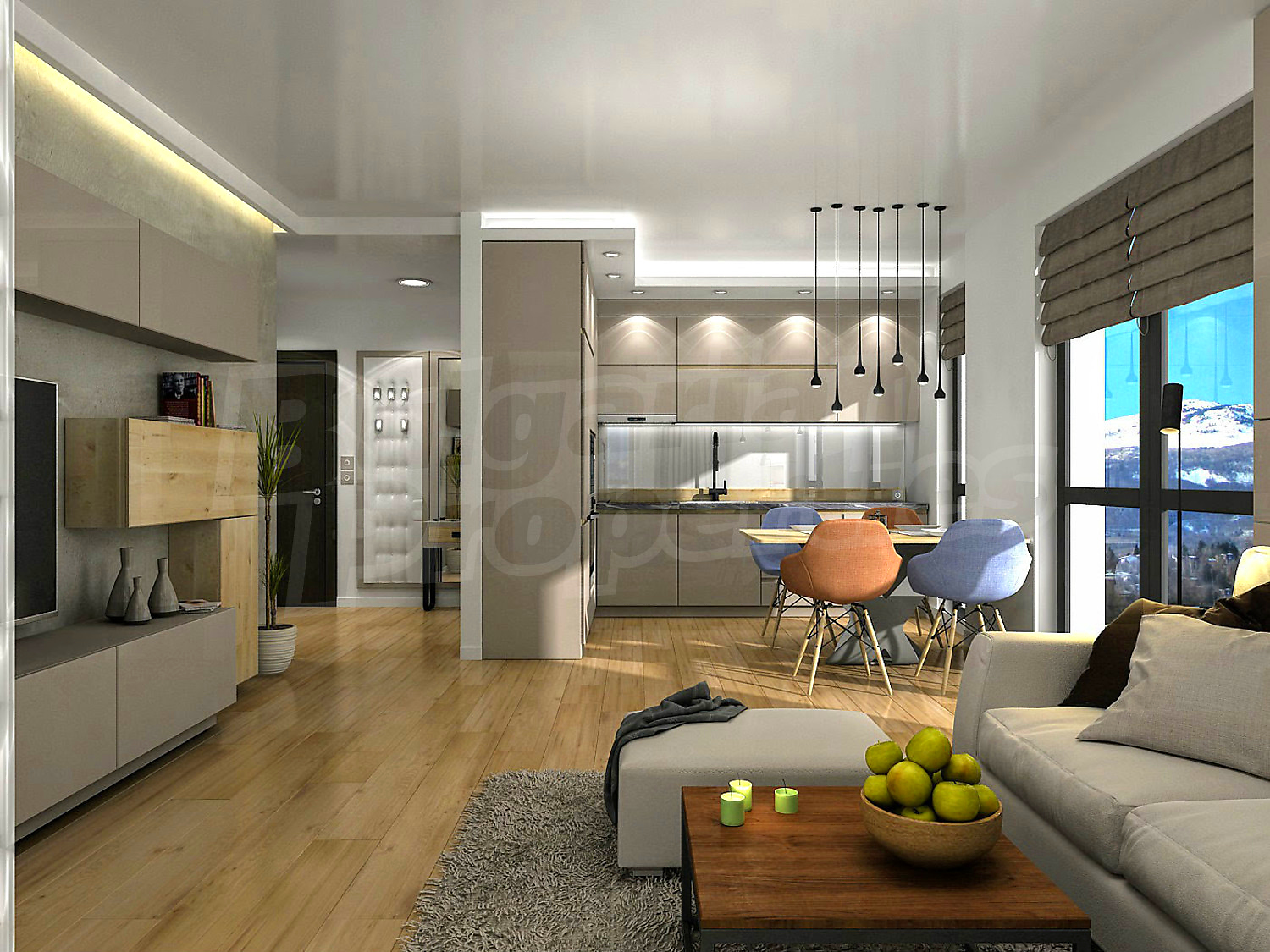 Квартира площадью 74.03 кв.м. Предлагаемая недвижимость построена в 2020. Газовая система отопления. Окна пвх имеются в предлагаемой недвижимости. Из основных коммуникаций обеспечены отопление на газу, электричество, центральное водоснабжение и центральная канализация. Гараж, парковка вне дороги, парковочное место, подвал, стоянка, терраса, лифт, заасфальтированная дорога, интернет, кабельное телевидение и телефон имеются в наличии среди прочих указанных характеристик предлагаемого объекта, что обеспечит дополнительные удобства для пользования. Виды на город и виды на горы открываются с недвижимости, раскрывая часть красот живописной Болгарии.
