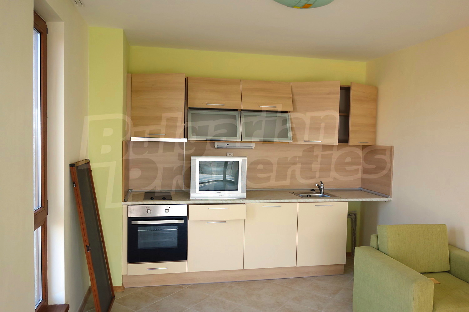 • Кухонные шкафы, вытяжка, плита