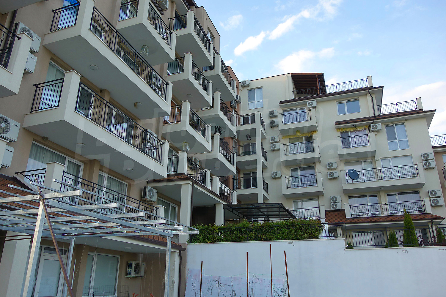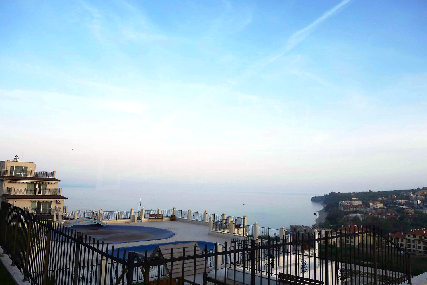 С террасы открывается панорама на море, спокойная парковая обстановка. В здании круглогодично живут семьи.