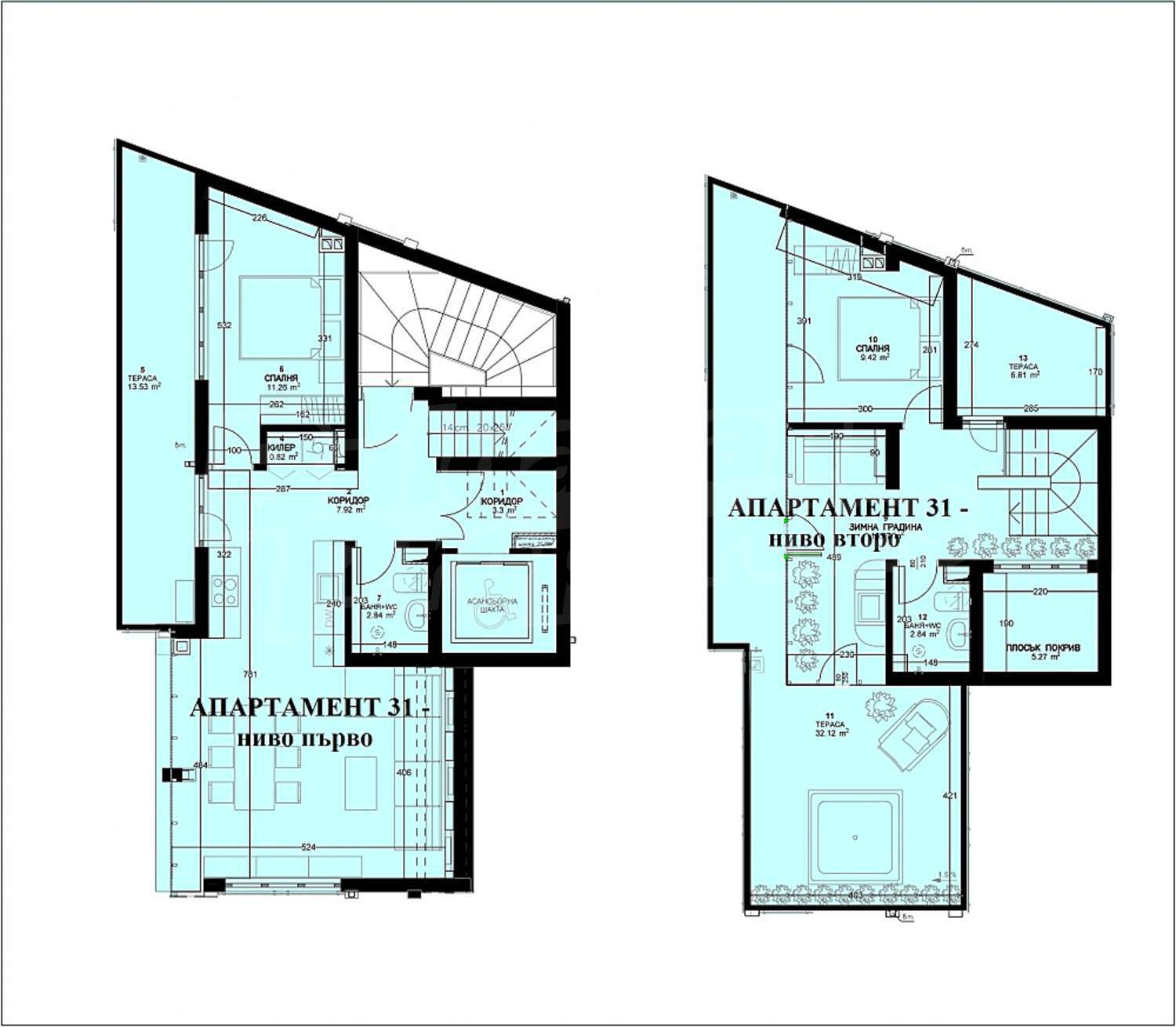 Апартаменты (различные типы), Трёхкомнатные квартиры, Пентхаусы в двух уровнях, Пентхаусы
