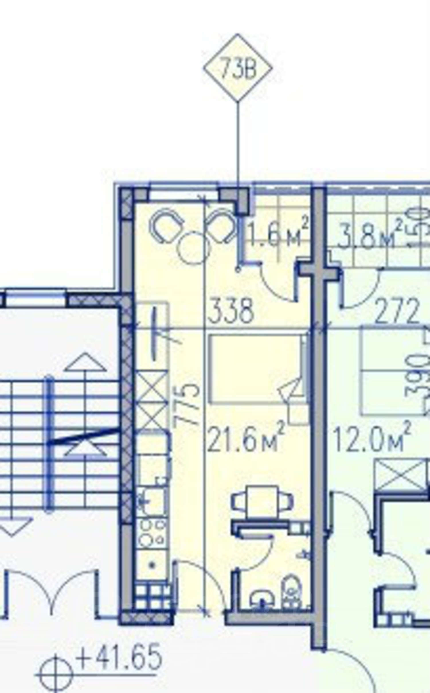 39.48 м2 (жилая площадь: 33.76 м2 плюс общие части: 5.72 м2) еще