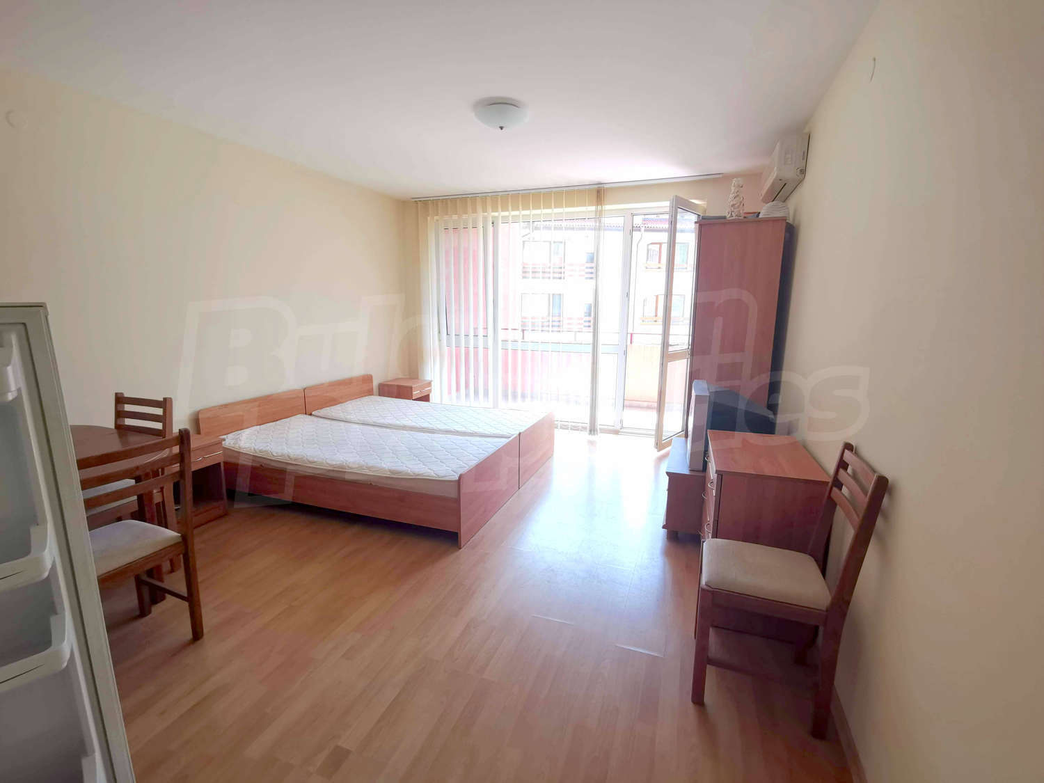 Полностью меблированная и оборудованная студия на первой линии (50 м от пляжа), в закрытом комплексе Privilege Fort Beach. Непосредственная близость к морю, аквапарку, супермаркету и автобусной остановке делает комплекс идеальным местом для отдыха в любое время года. Годовая плата за обслуживание - 12 евро за м2.